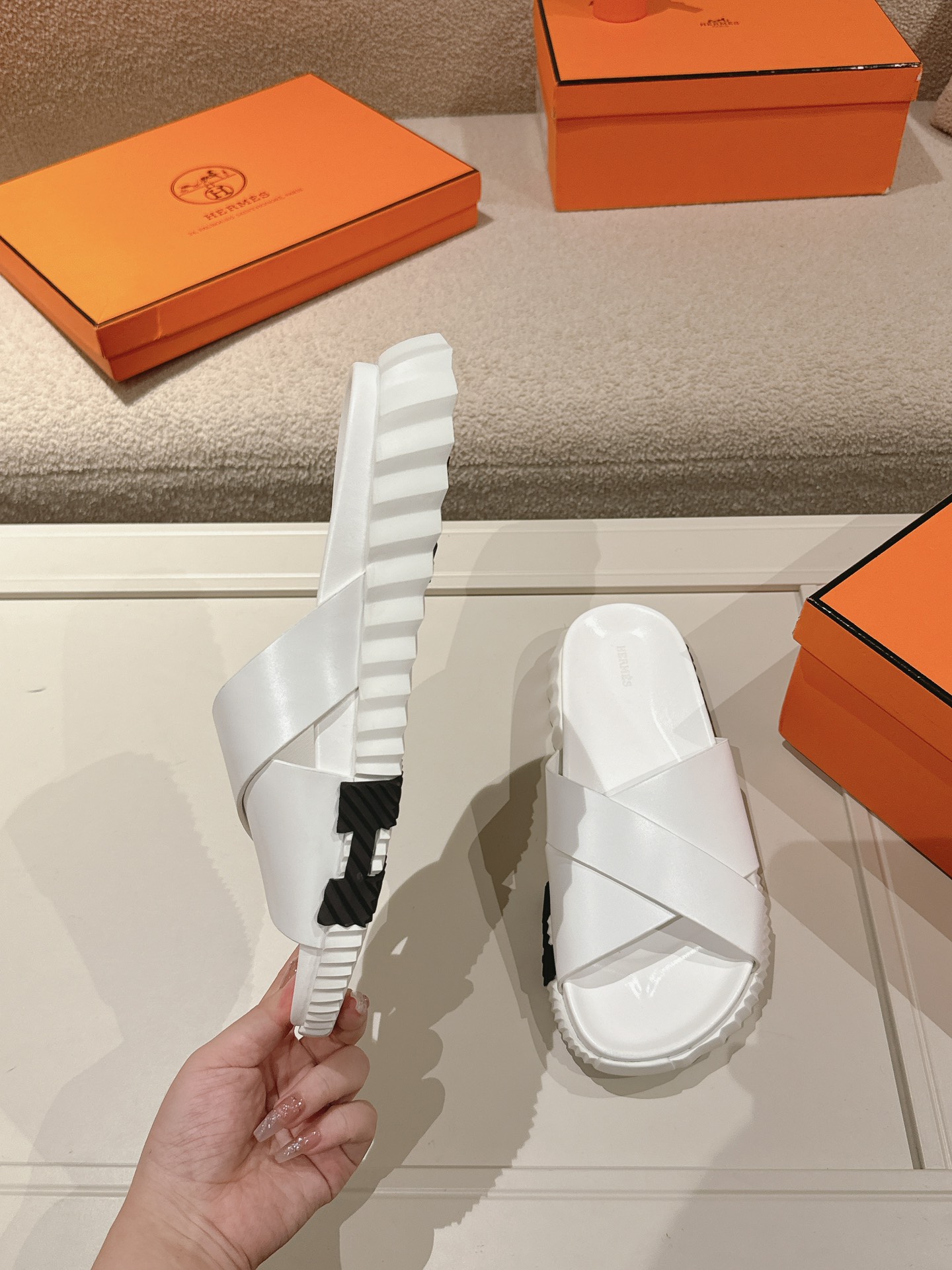This shoes is AAAAA 1:1 quality (superb). Materials used are identical to the original ones. Hermes trademark marks are indistinguishable to the authentic. Photos take by actual shoes, what you receive will be 100% same with our photos.