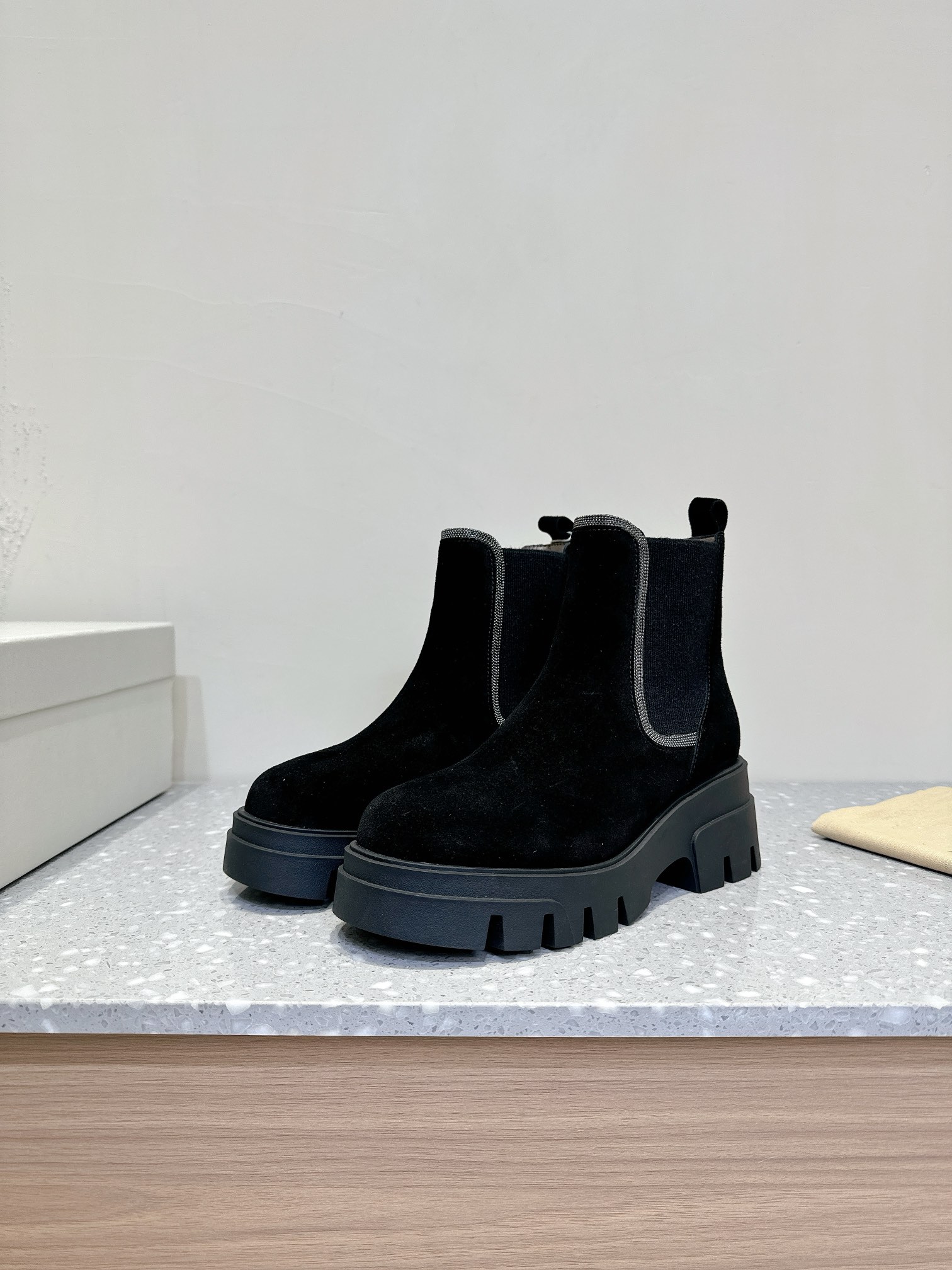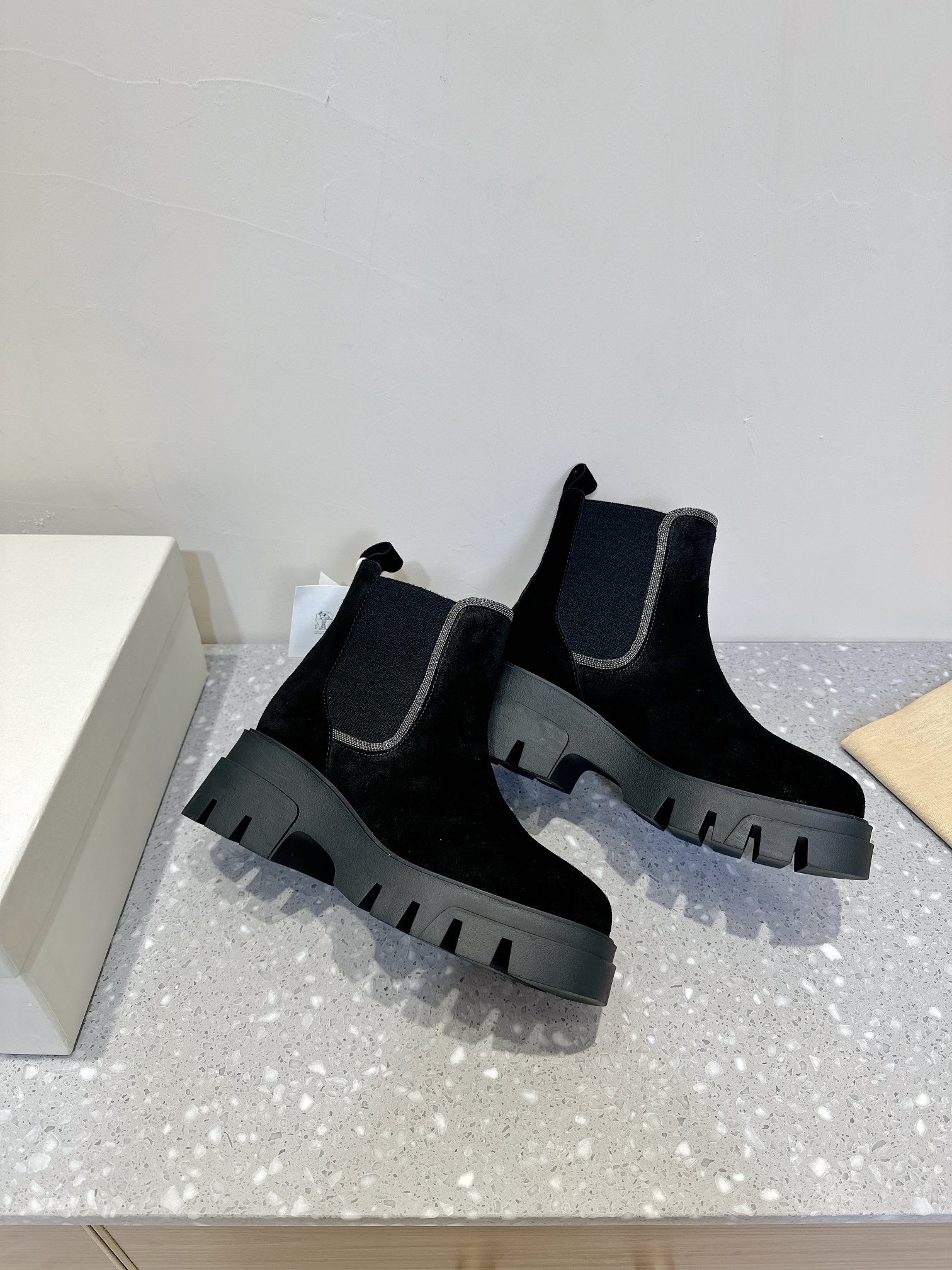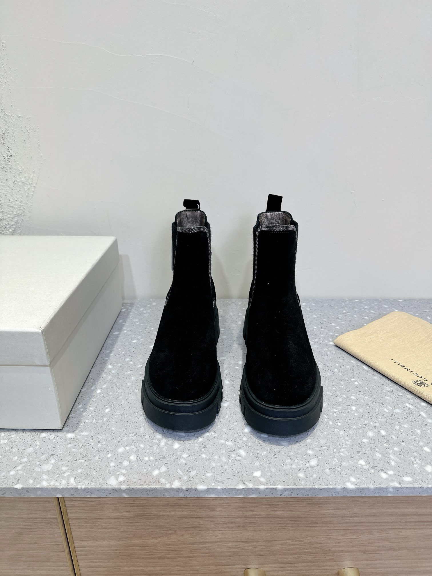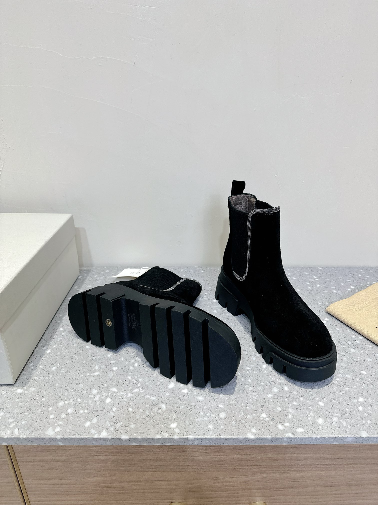 This shoes is AAAAA 1:1 quality (superb). Materials used are identical to the original ones. Brunello Cucinelli trademark marks are indistinguishable to the authentic. Photos take by actual shoes, what you receive will be 100% same with our photos.