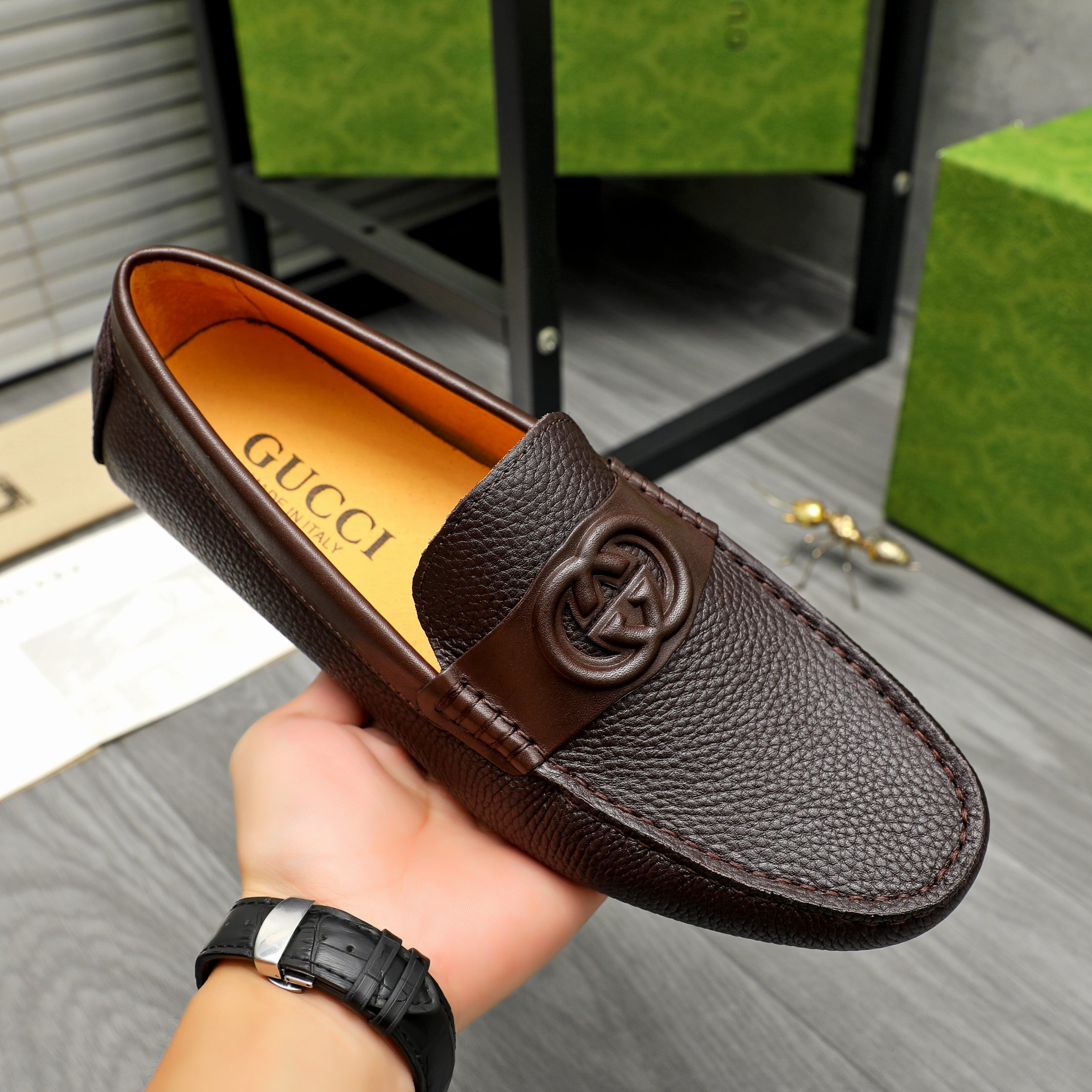 This shoes is AAAAA 1:1 quality (superb). Materials used are identical to the original ones. Gucci trademark marks are indistinguishable to the authentic. Photos take by actual shoes, what you receive will be 100% same with our photos.