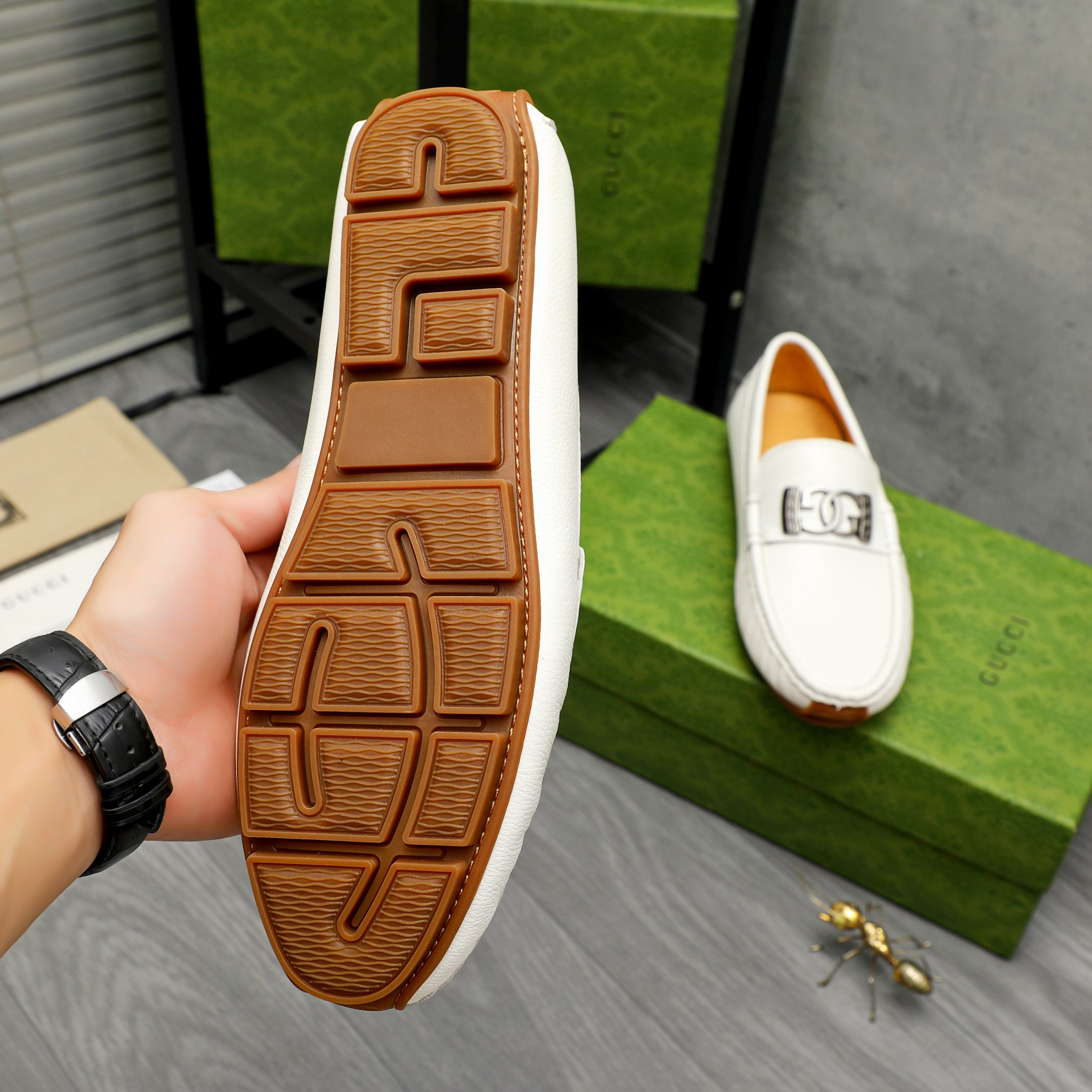 This shoes is AAAAA 1:1 quality (superb). Materials used are identical to the original ones. Gucci trademark marks are indistinguishable to the authentic. Photos take by actual shoes, what you receive will be 100% same with our photos.