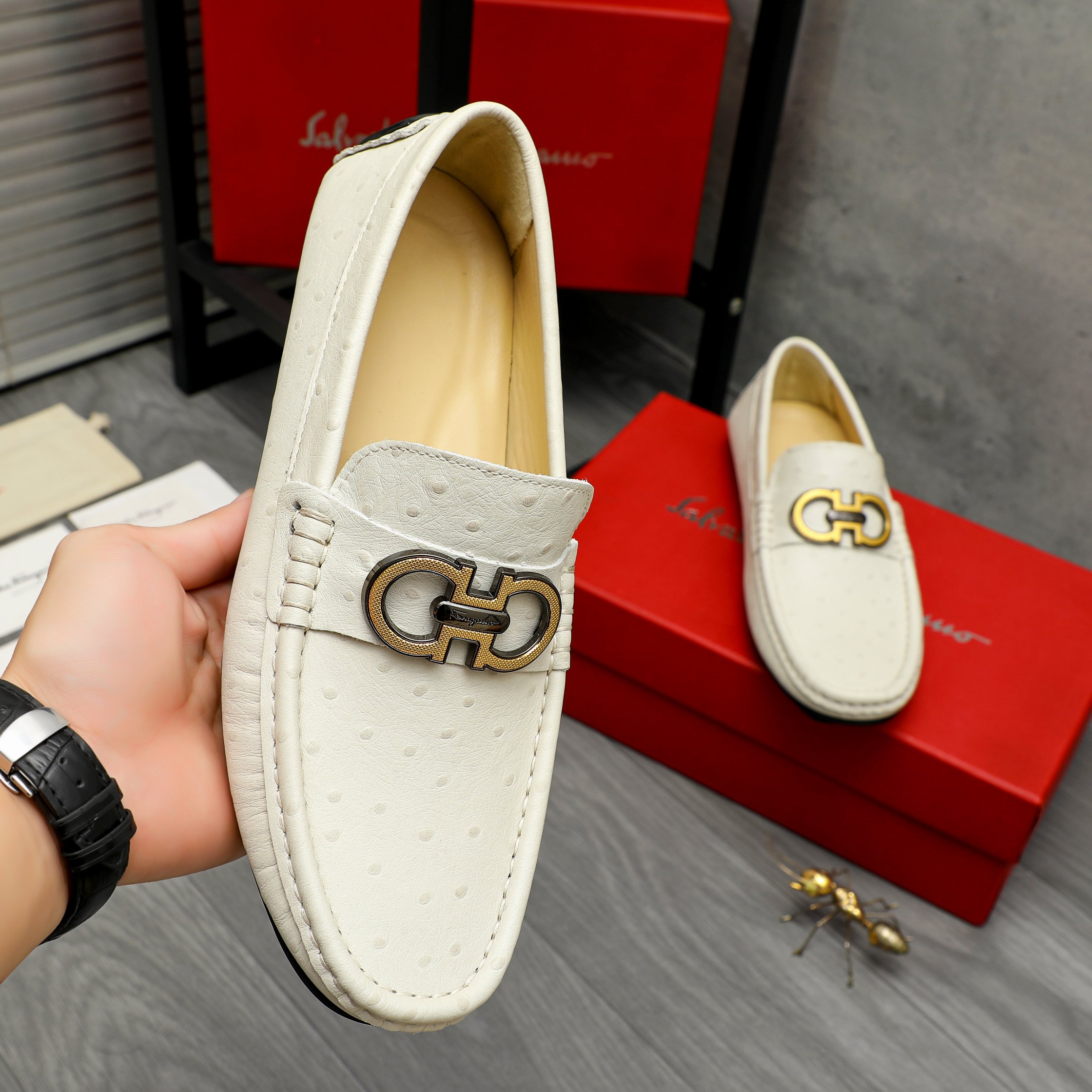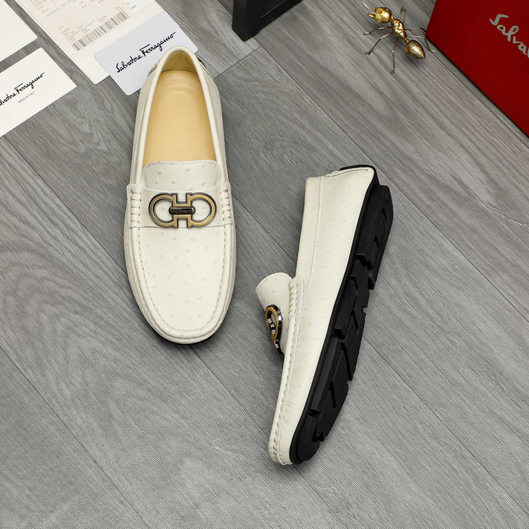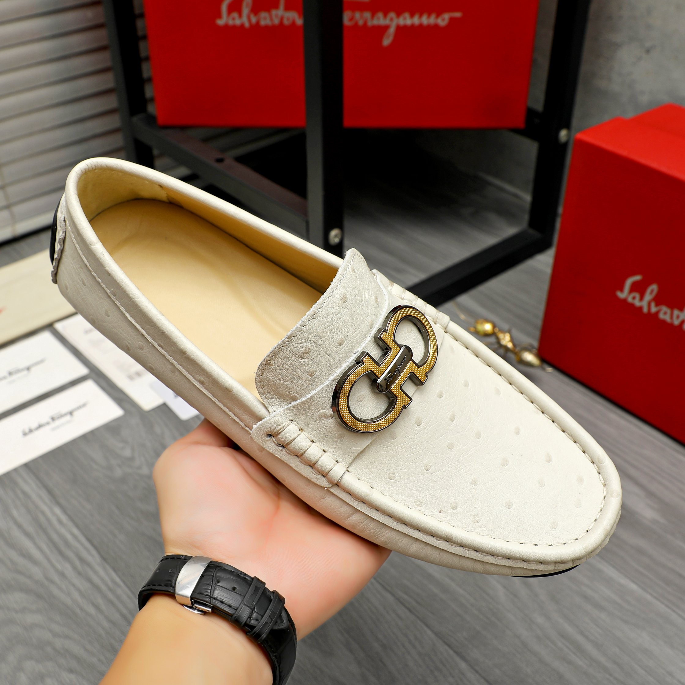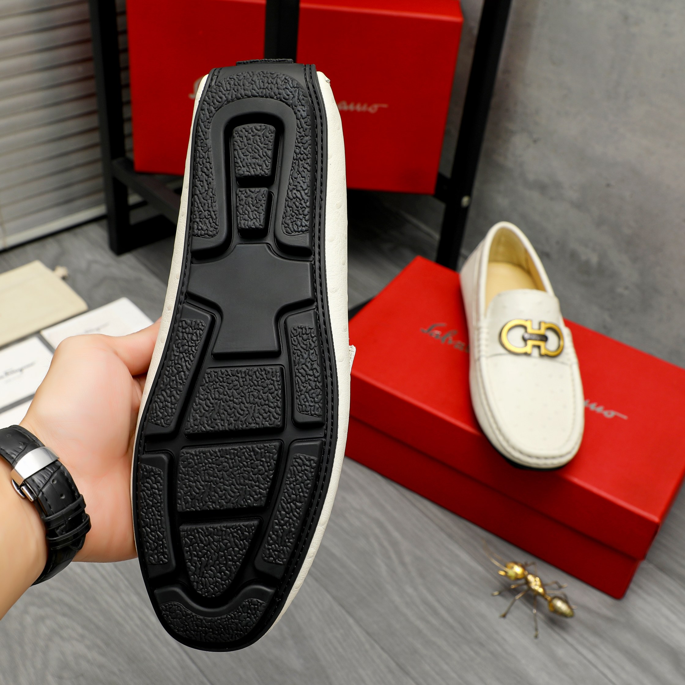 This shoes is AAAAA 1:1 quality (superb). Materials used are identical to the original ones. Salvatore Ferragamo trademark marks are indistinguishable to the authentic. Photos take by actual shoes, what you receive will be 100% same with our photos.