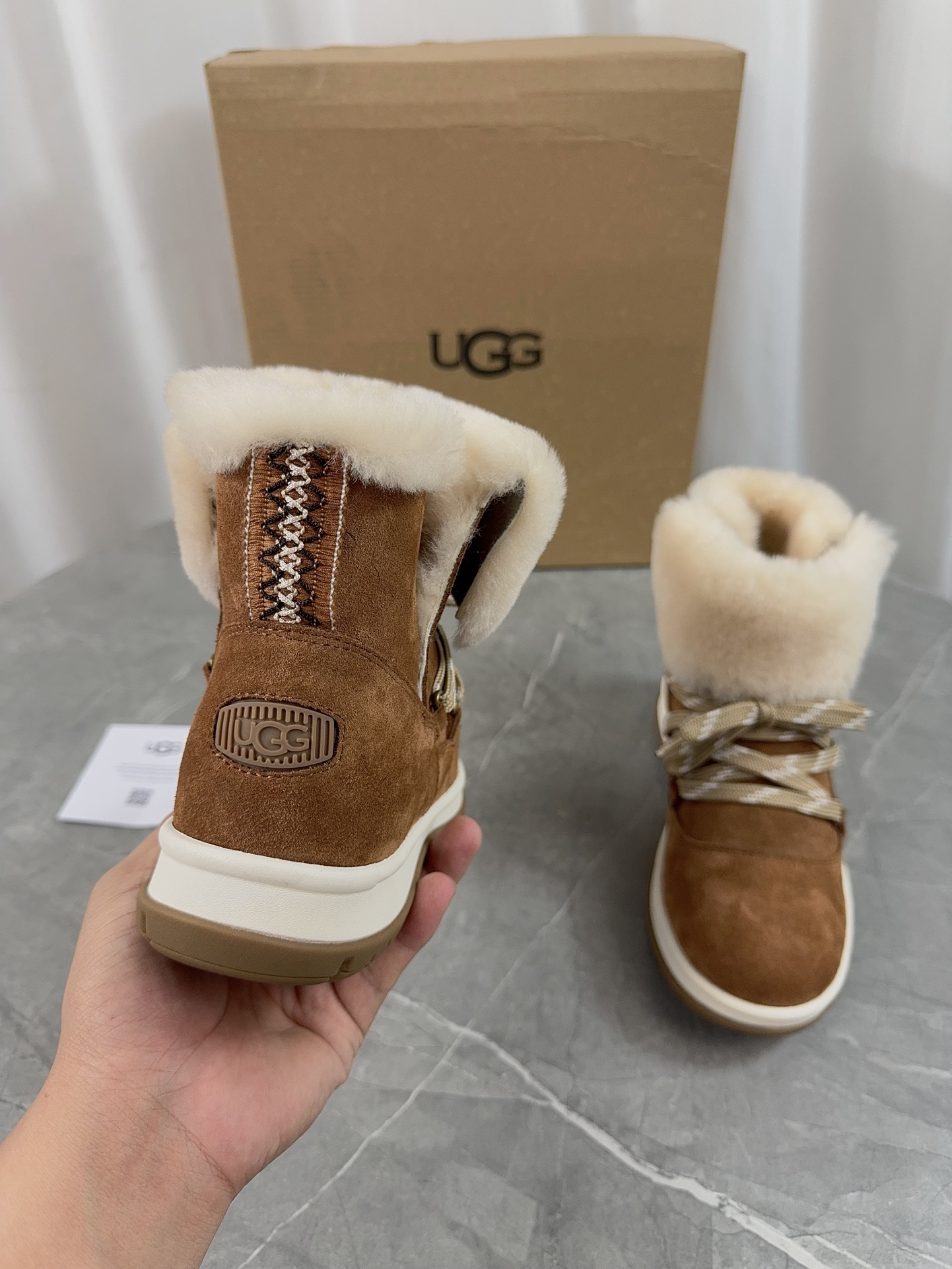 This shoes is AAAAA 1:1 quality (superb). Materials used are identical to the original ones. UGG trademark marks are indistinguishable to the authentic. Photos take by actual shoes, what you receive will be 100% same with our photos.