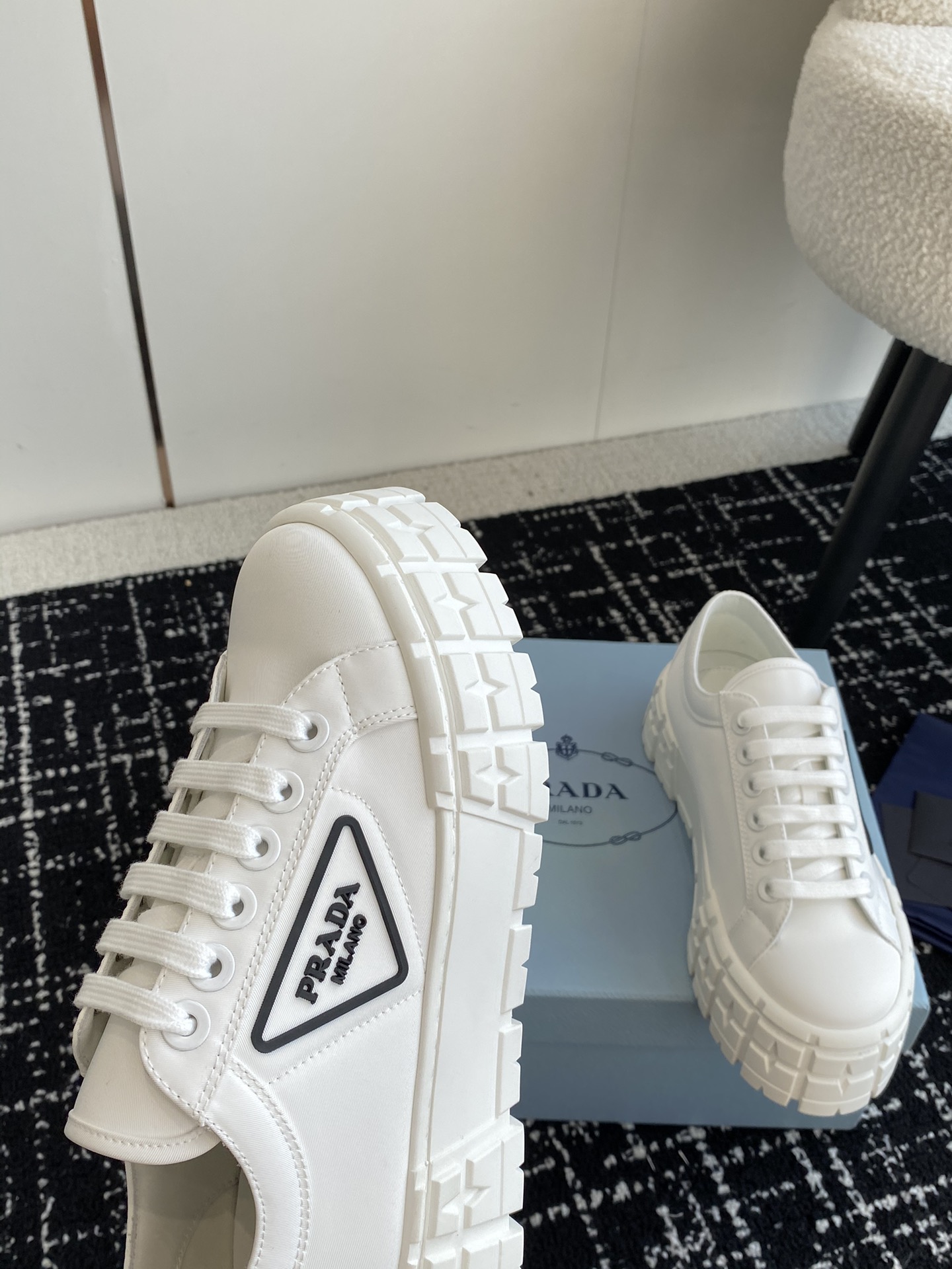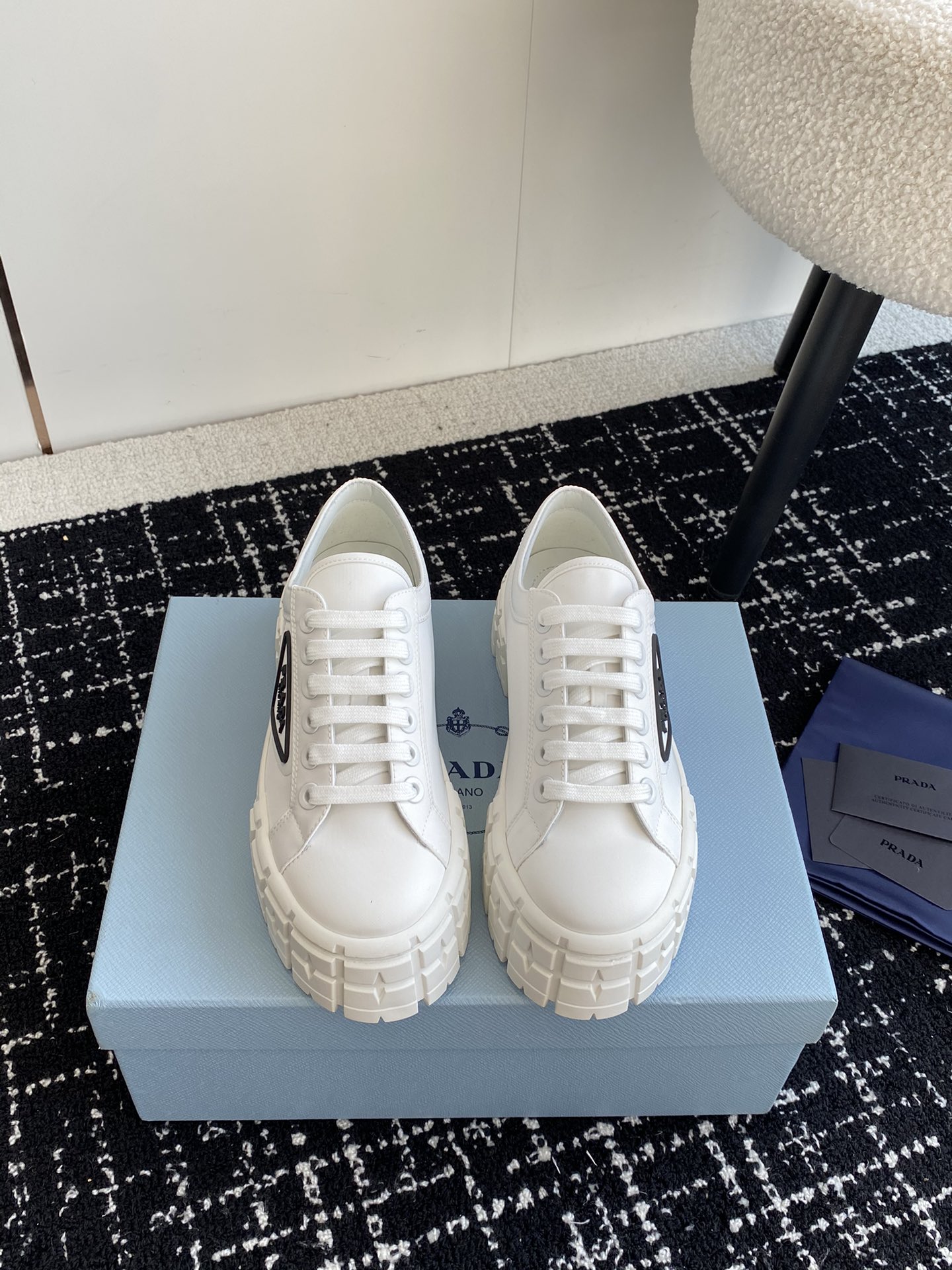 This shoes is AAAAA 1:1 quality (superb). Materials used are identical to the original ones. Prada trademark marks are indistinguishable to the authentic. Photos take by actual shoes, what you receive will be 100% same with our photos.