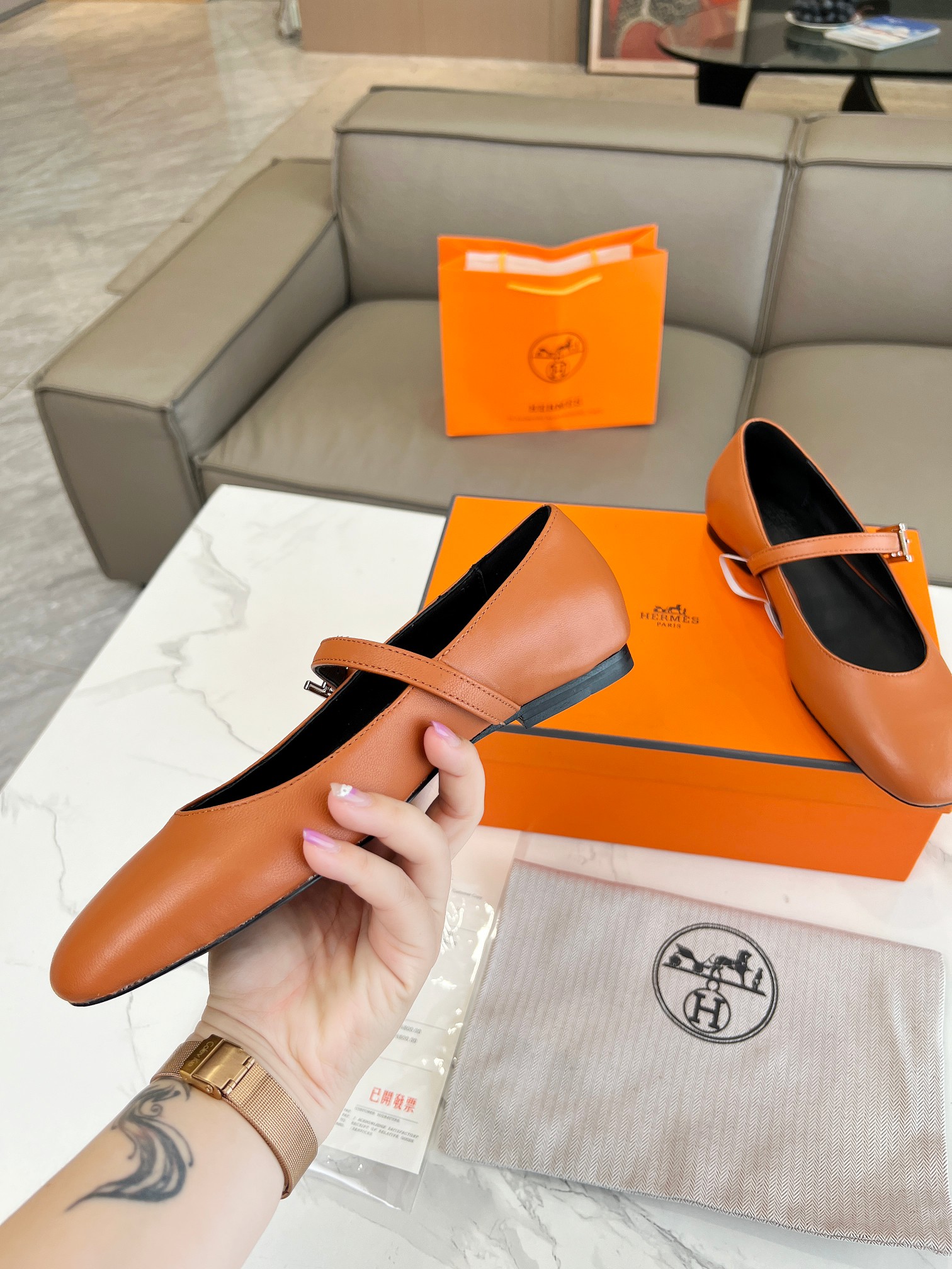 NO:2060383. The shoes is from Hermes designer.