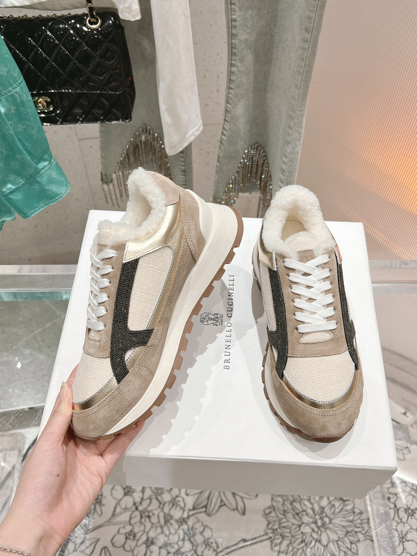 This shoes is AAAAA 1:1 quality (superb). Materials used are identical to the original ones. Brunello Cucinelli trademark marks are indistinguishable to the authentic. Photos take by actual shoes, what you receive will be 100% same with our photos.
