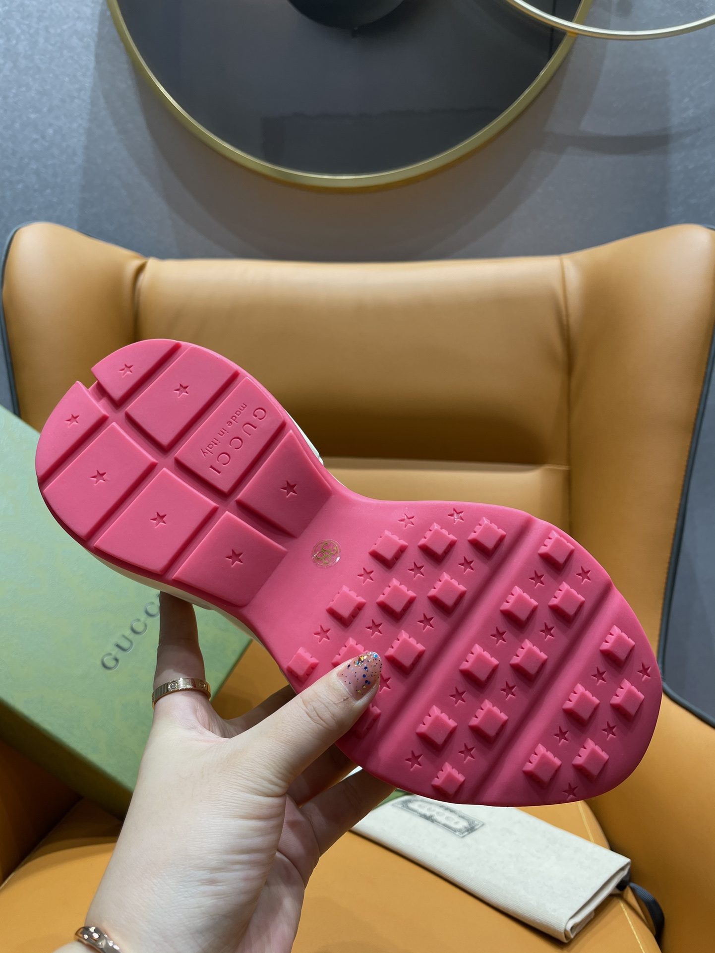 This shoes is AAAAA 1:1 quality (superb). Materials used are identical to the original ones. Gucci trademark marks are indistinguishable to the authentic. Photos take by actual shoes, what you receive will be 100% same with our photos.