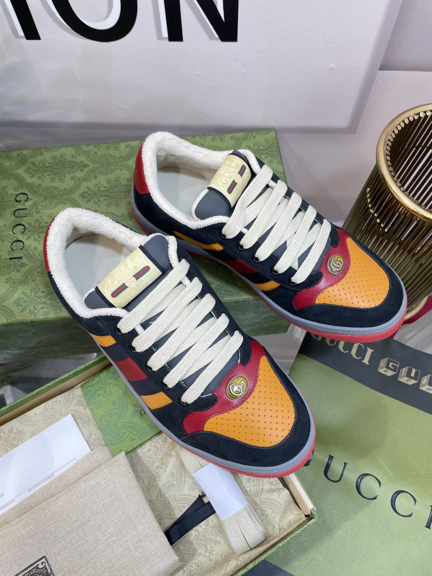 This shoes is AAAAA 1:1 quality (superb). Materials used are identical to the original ones. Gucci trademark marks are indistinguishable to the authentic. Photos take by actual shoes, what you receive will be 100% same with our photos.