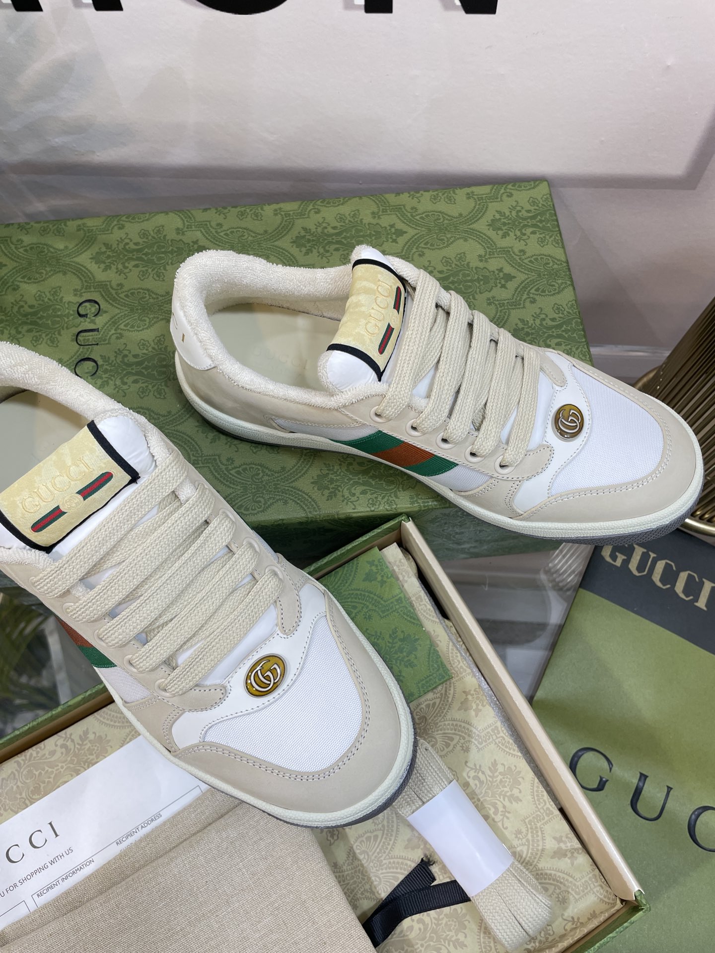 This shoes is AAAAA 1:1 quality (superb). Materials used are identical to the original ones. Gucci trademark marks are indistinguishable to the authentic. Photos take by actual shoes, what you receive will be 100% same with our photos.
