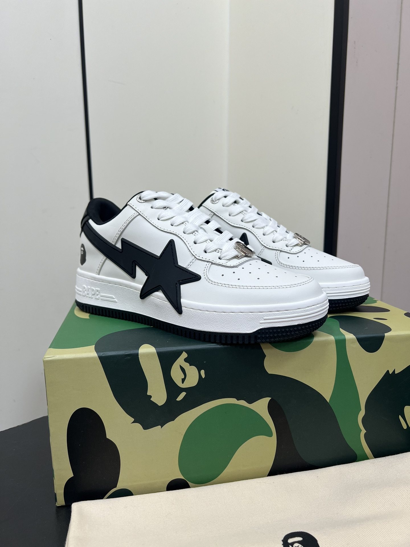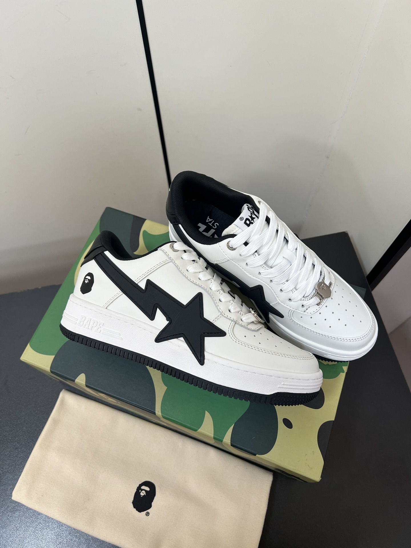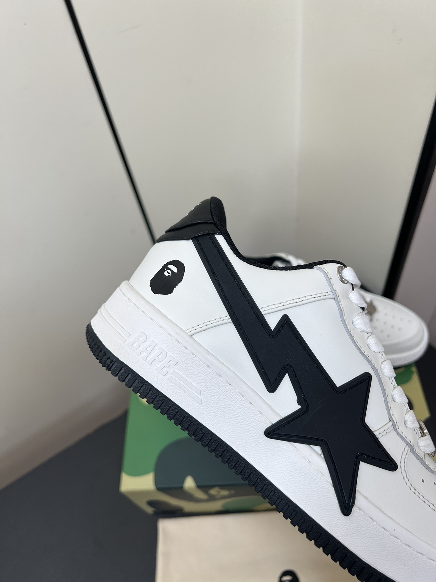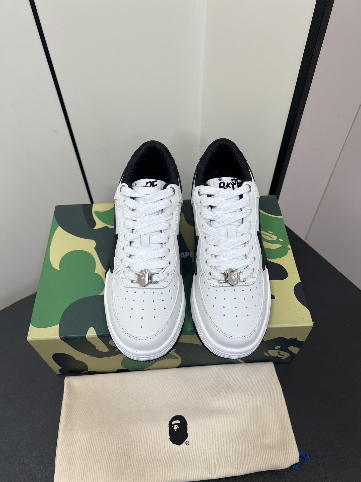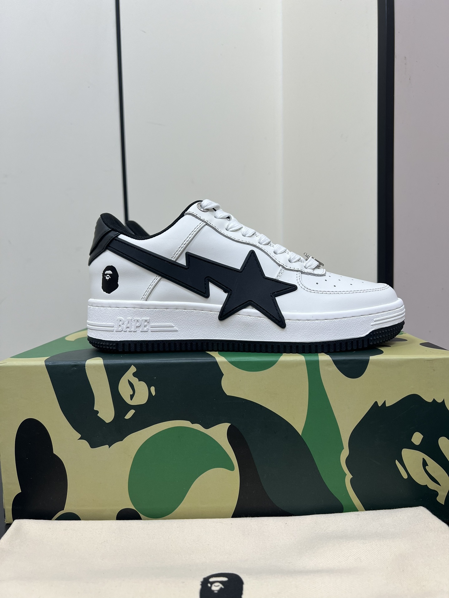 This shoes is AAAAA 1:1 quality (superb). Materials used are identical to the original ones. Bape trademark marks are indistinguishable to the authentic. Photos take by actual shoes, what you receive will be 100% same with our photos.