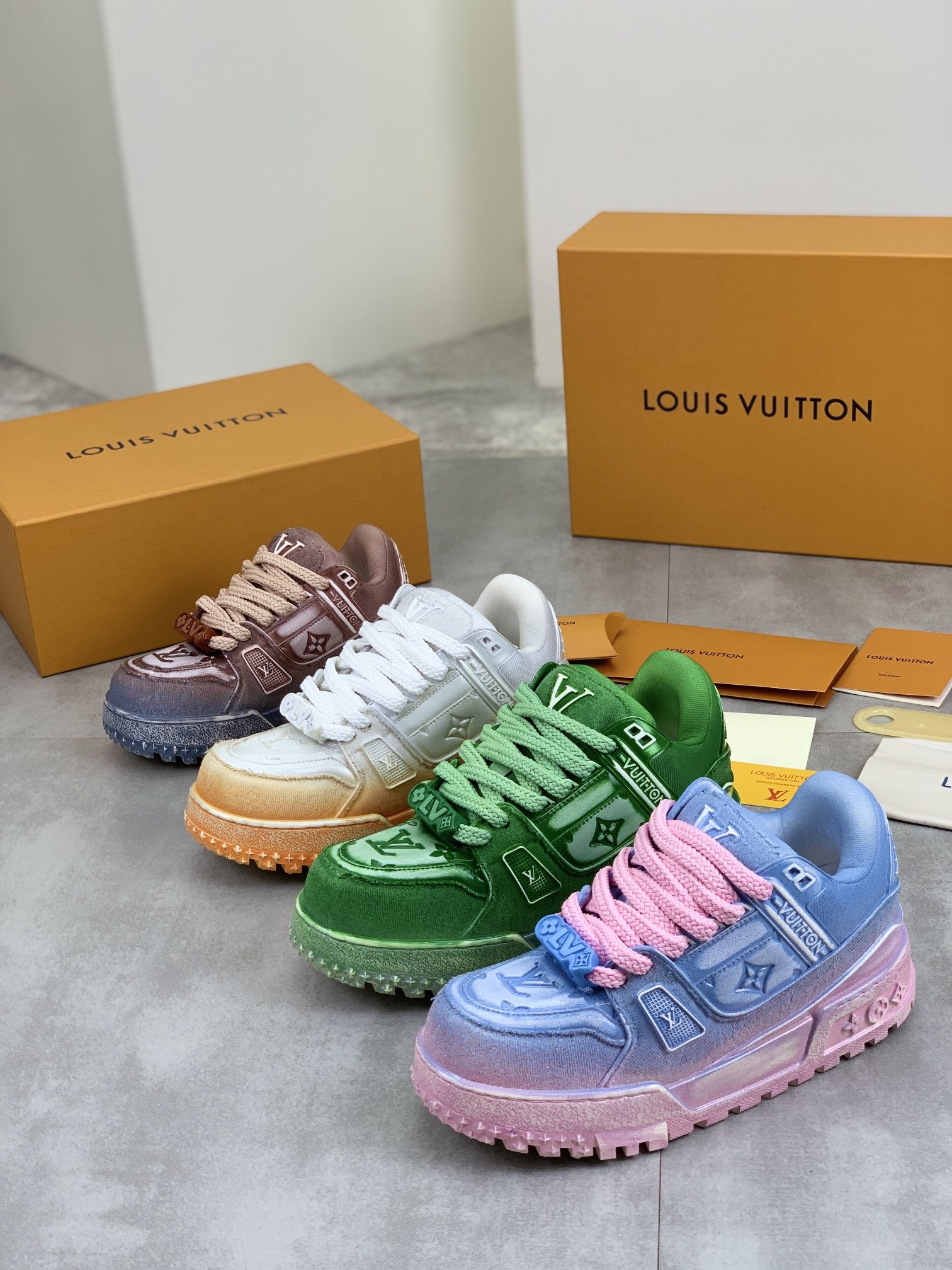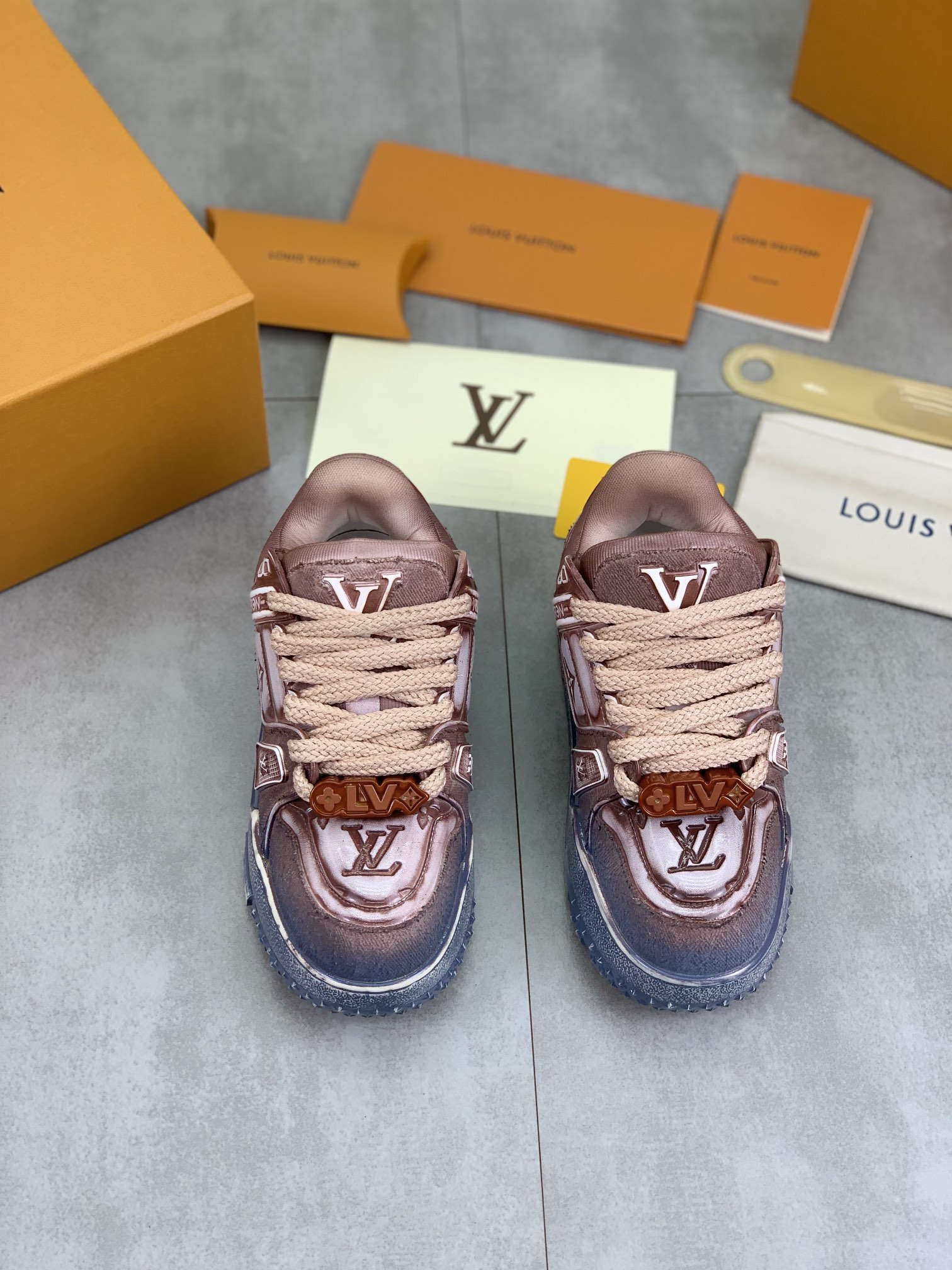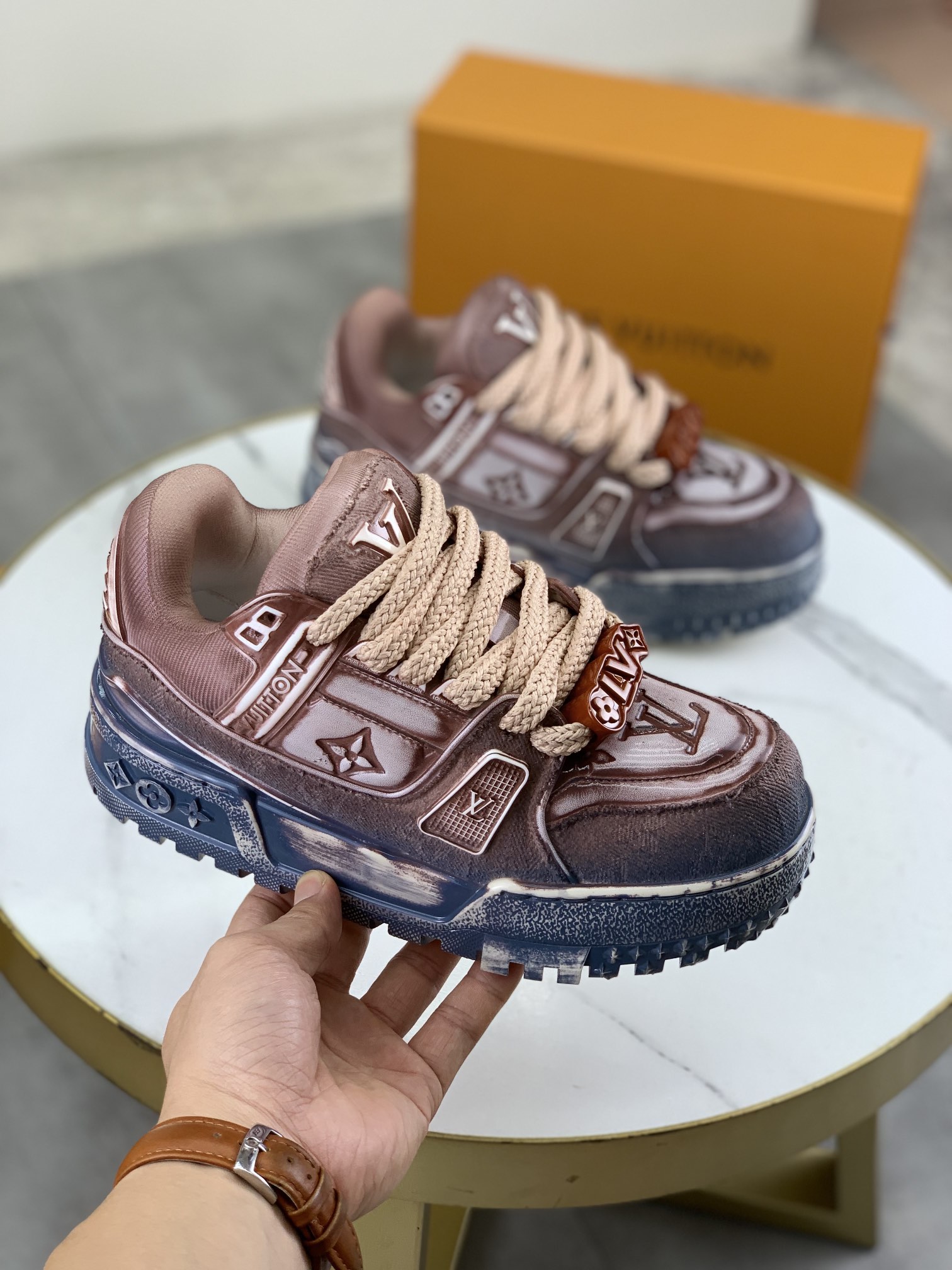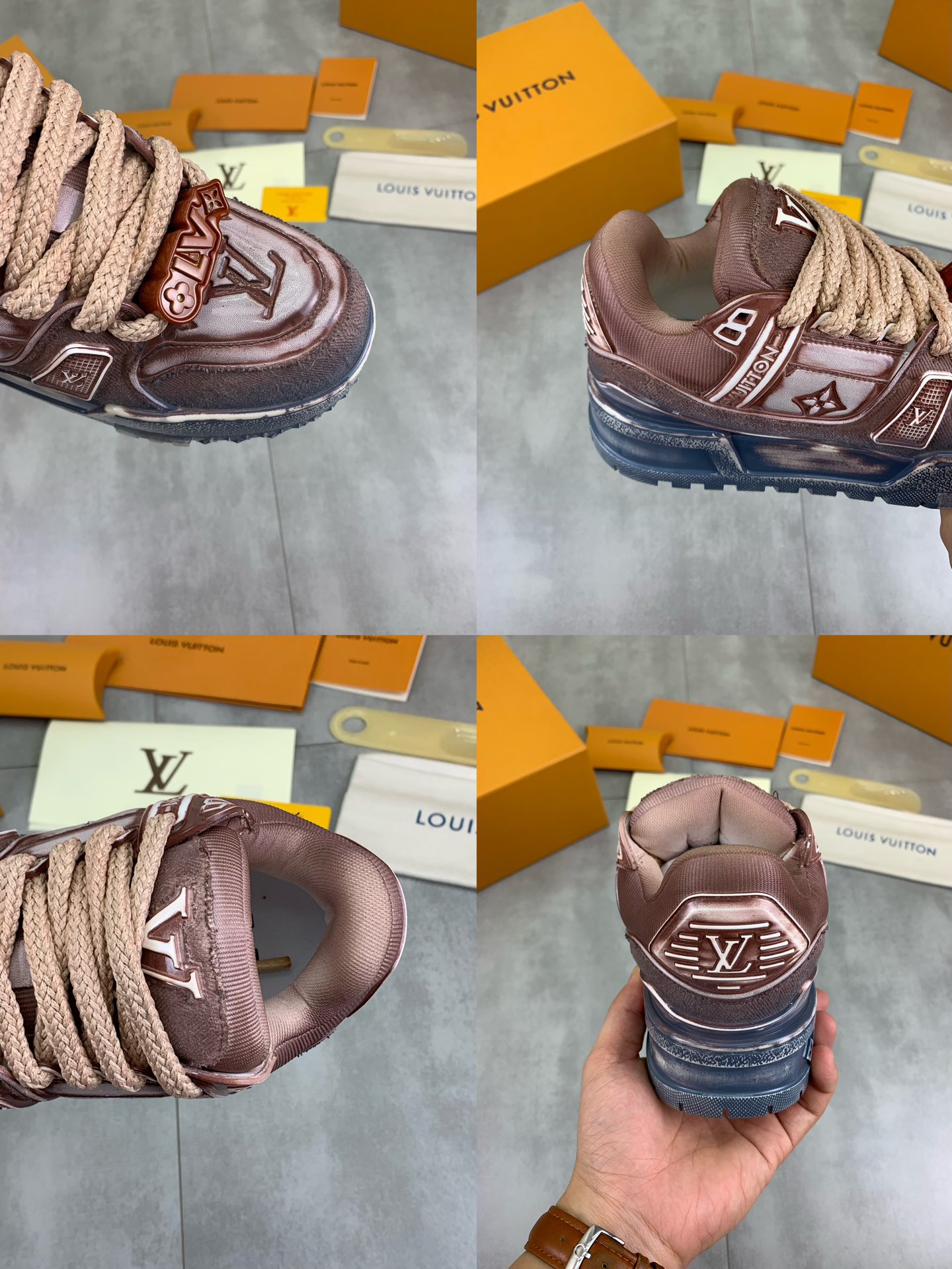 This shoes is AAAAA 1:1 quality (superb). Materials used are identical to the original ones. Louis Vuitton trademark marks are indistinguishable to the authentic. Photos take by actual shoes, what you receive will be 100% same with our photos.