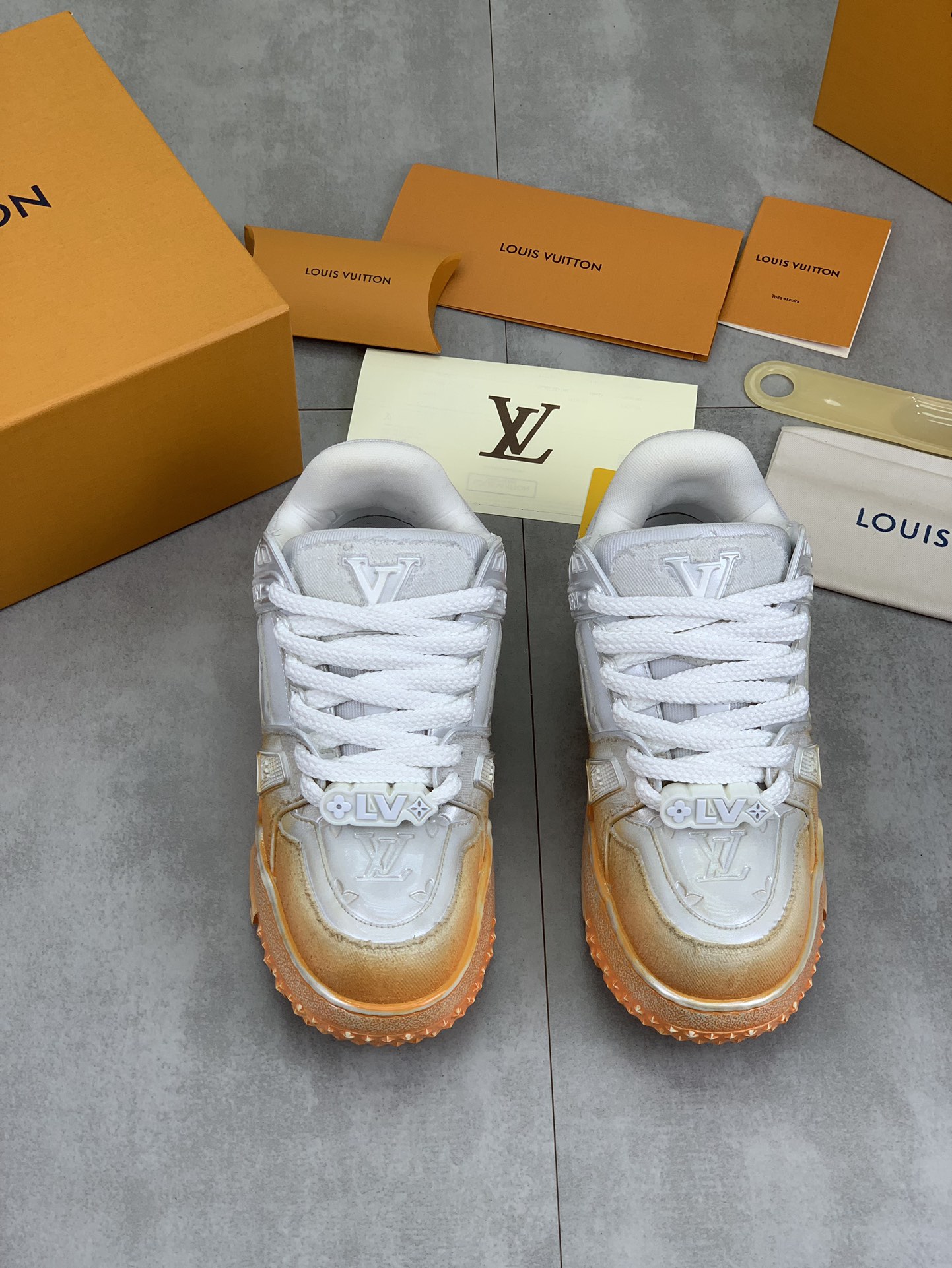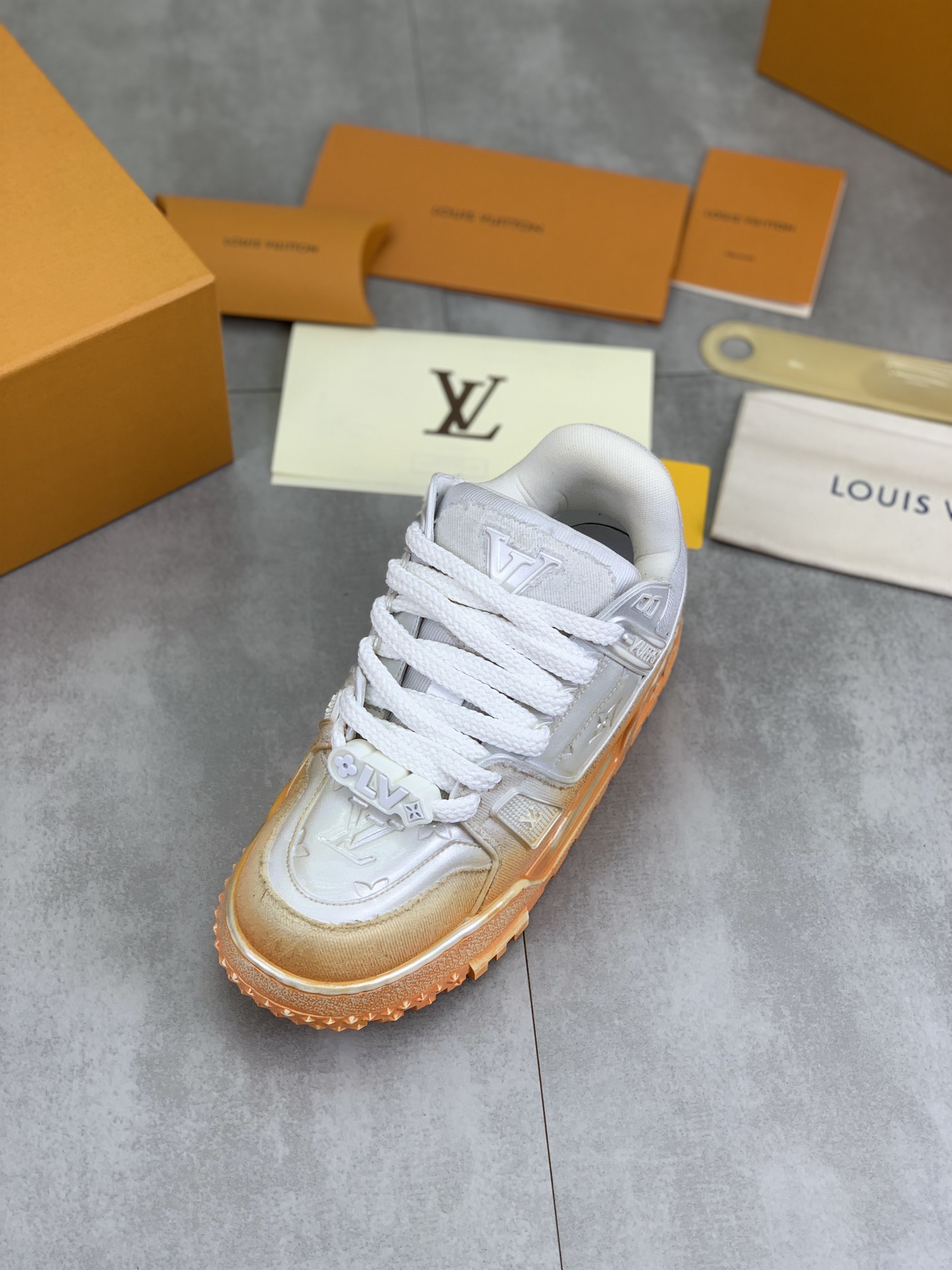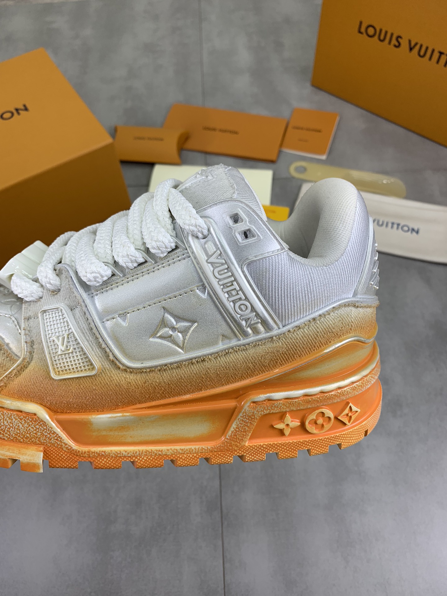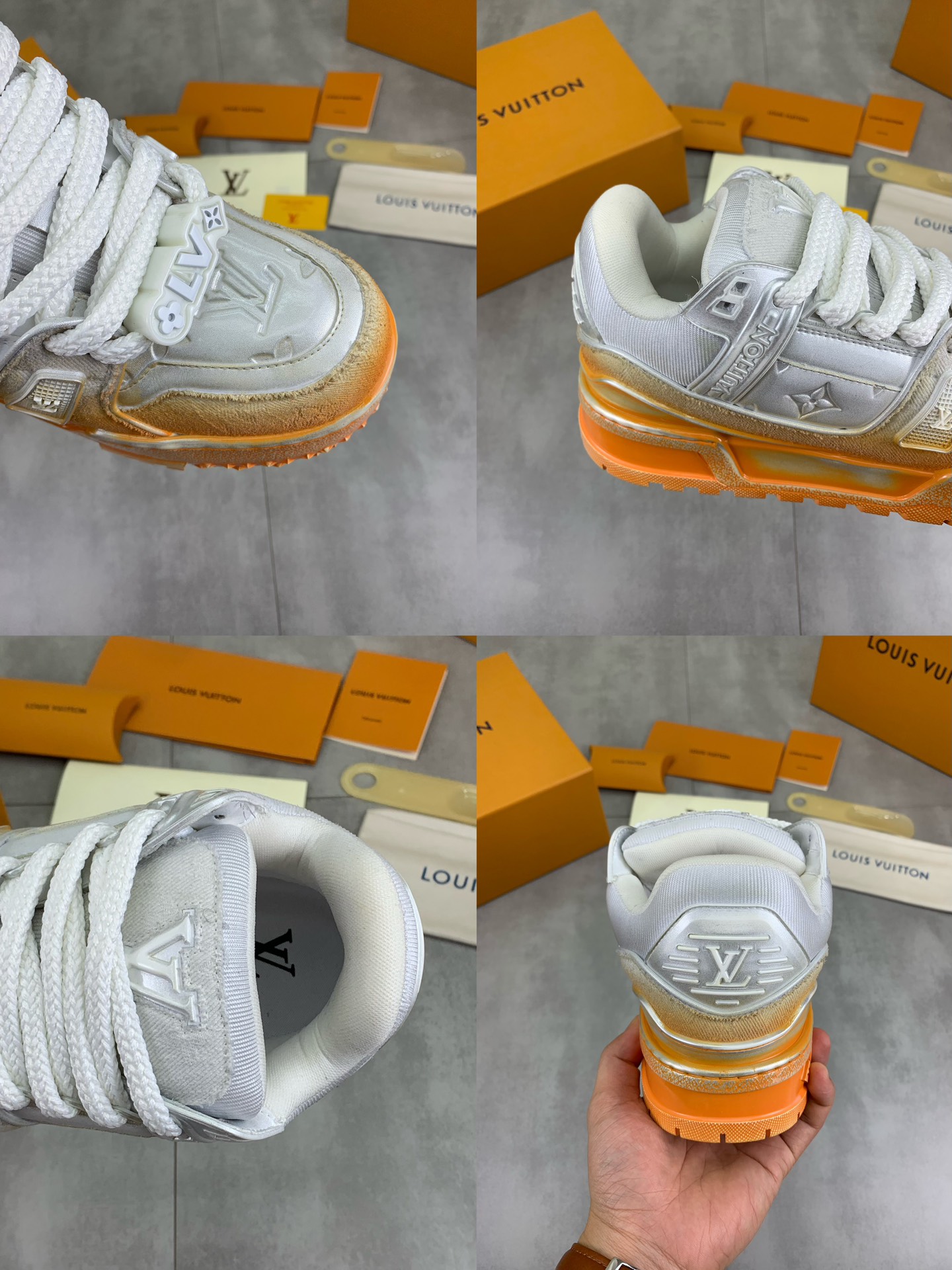 This shoes is AAAAA 1:1 quality (superb). Materials used are identical to the original ones. Louis Vuitton trademark marks are indistinguishable to the authentic. Photos take by actual shoes, what you receive will be 100% same with our photos.