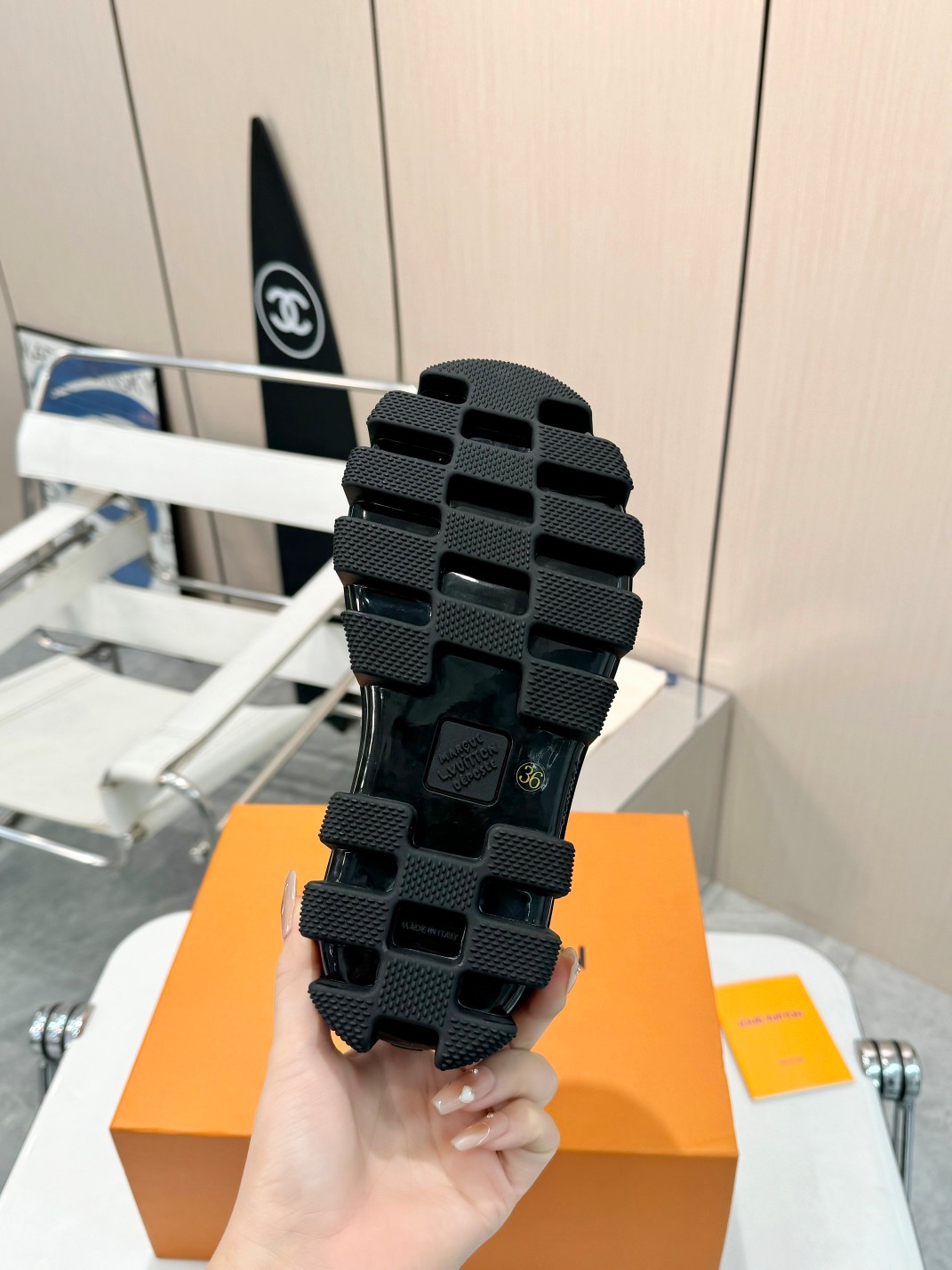 This shoes is AAAAA 1:1 quality (superb). Materials used are identical to the original ones. Louis Vuitton trademark marks are indistinguishable to the authentic. Photos take by actual shoes, what you receive will be 100% same with our photos.