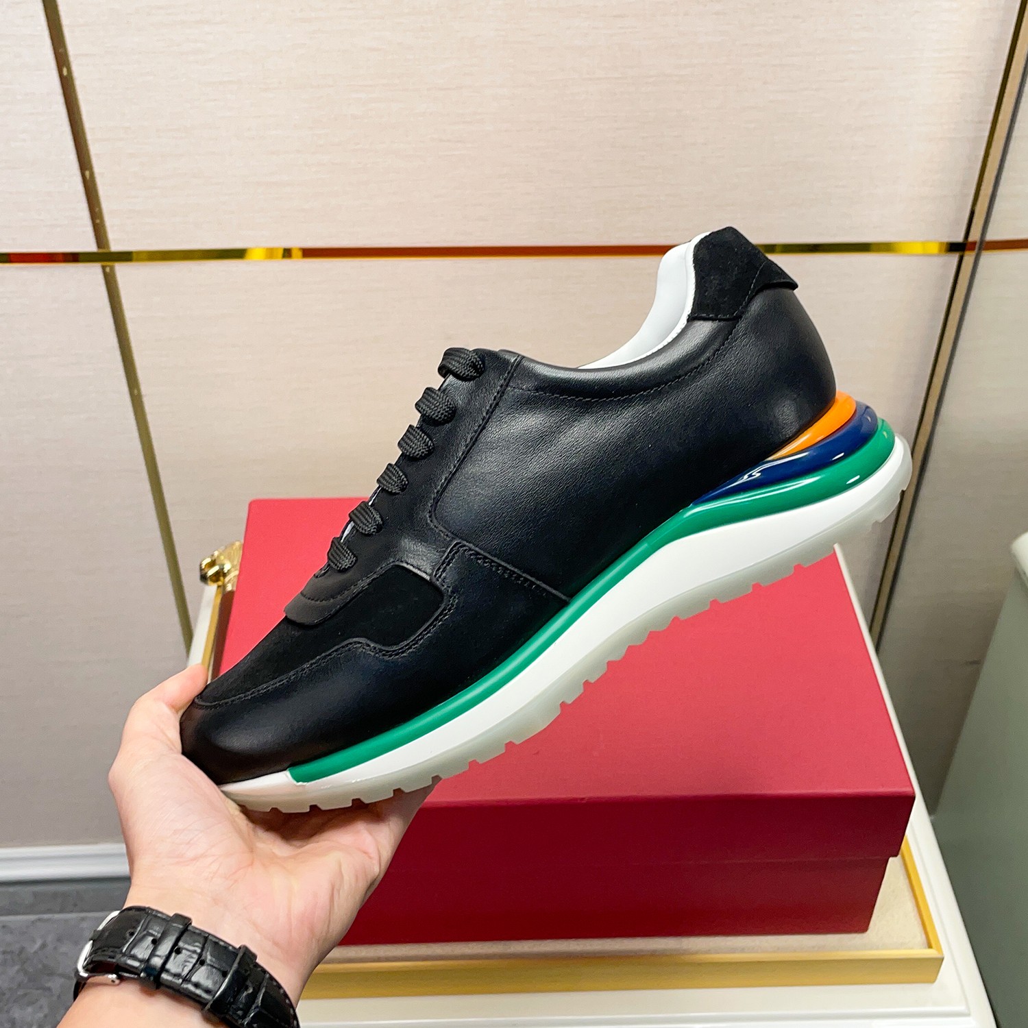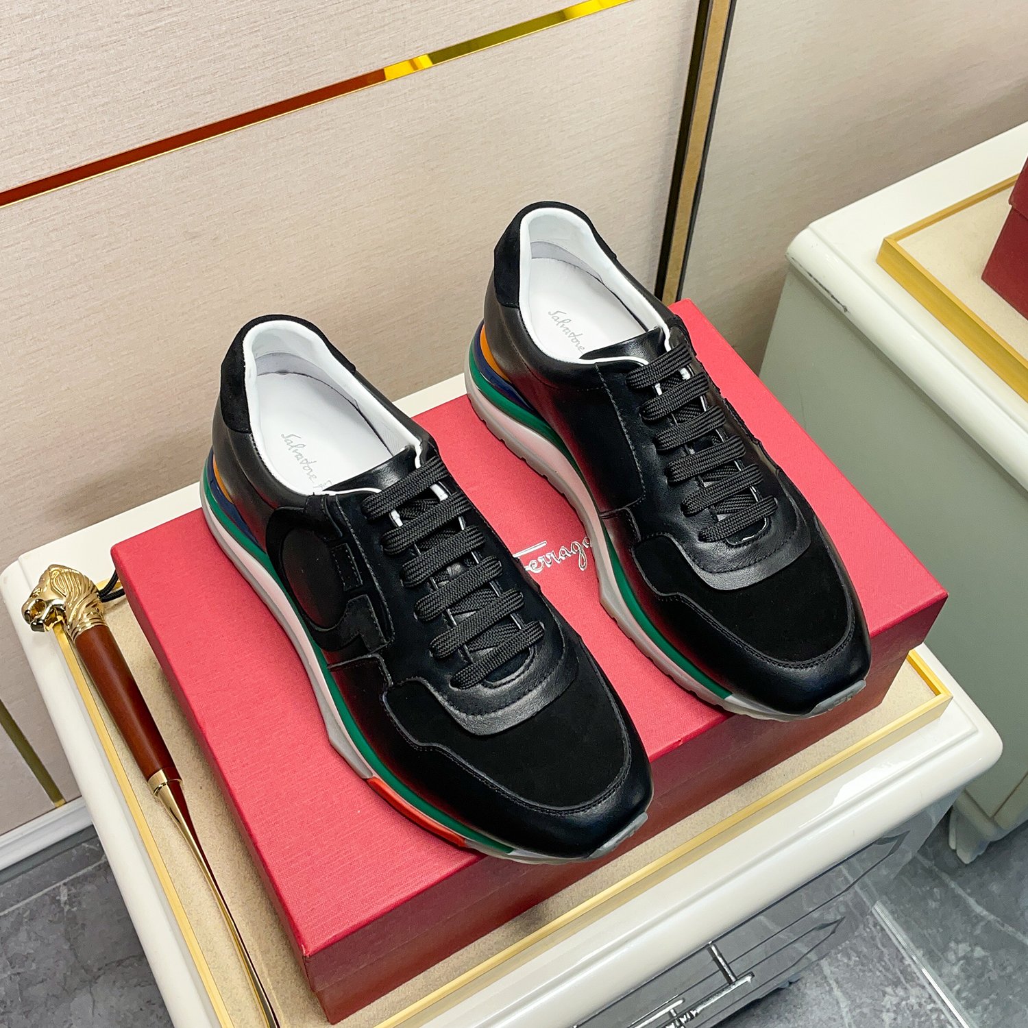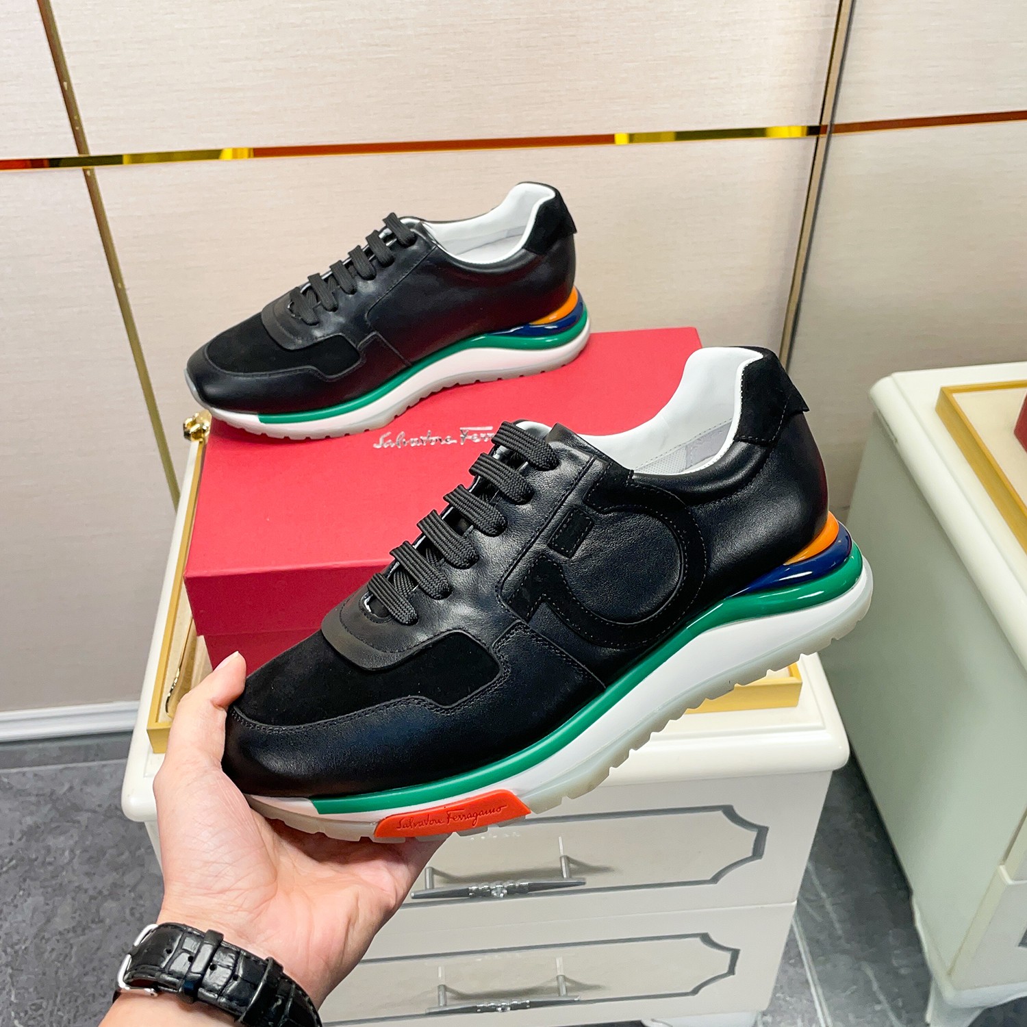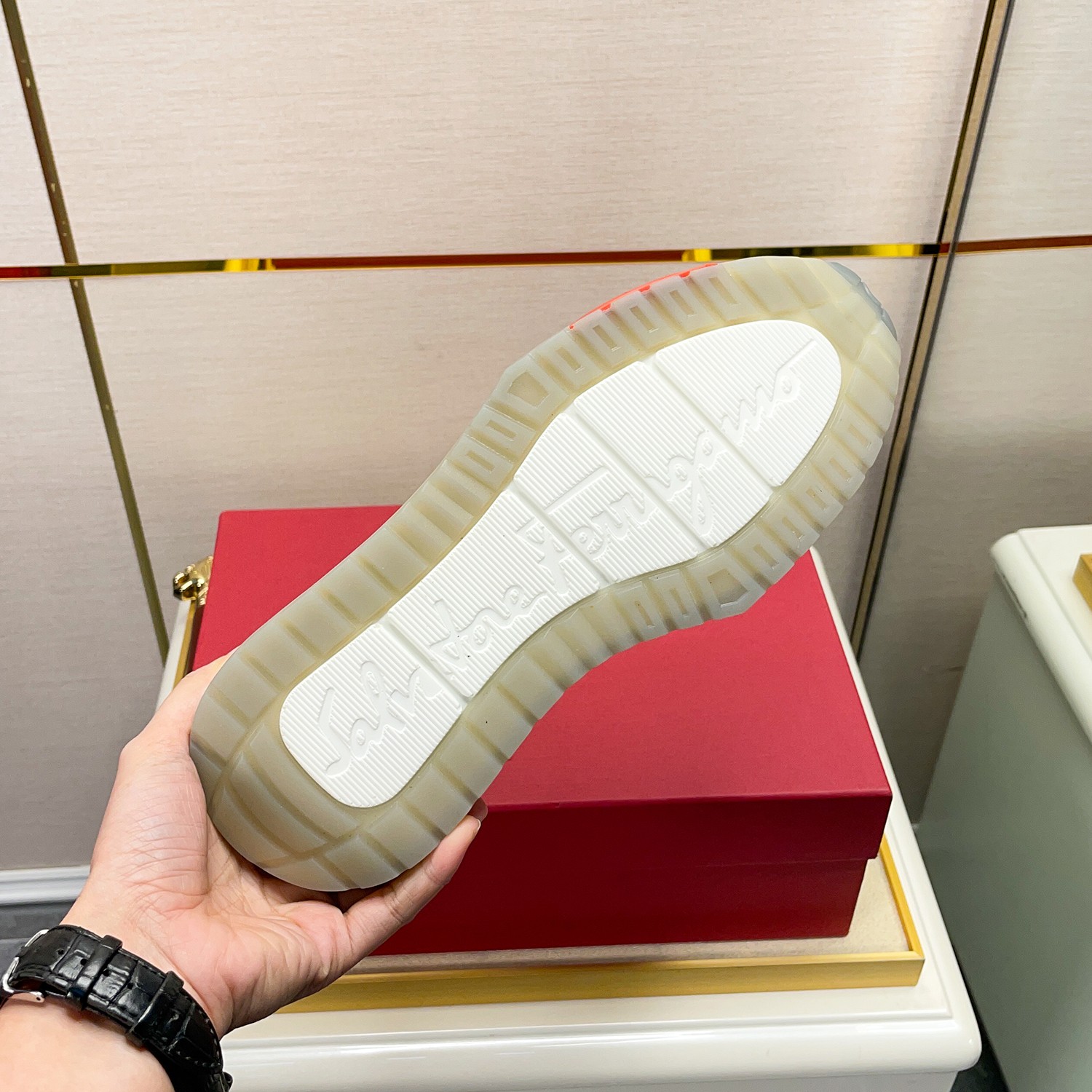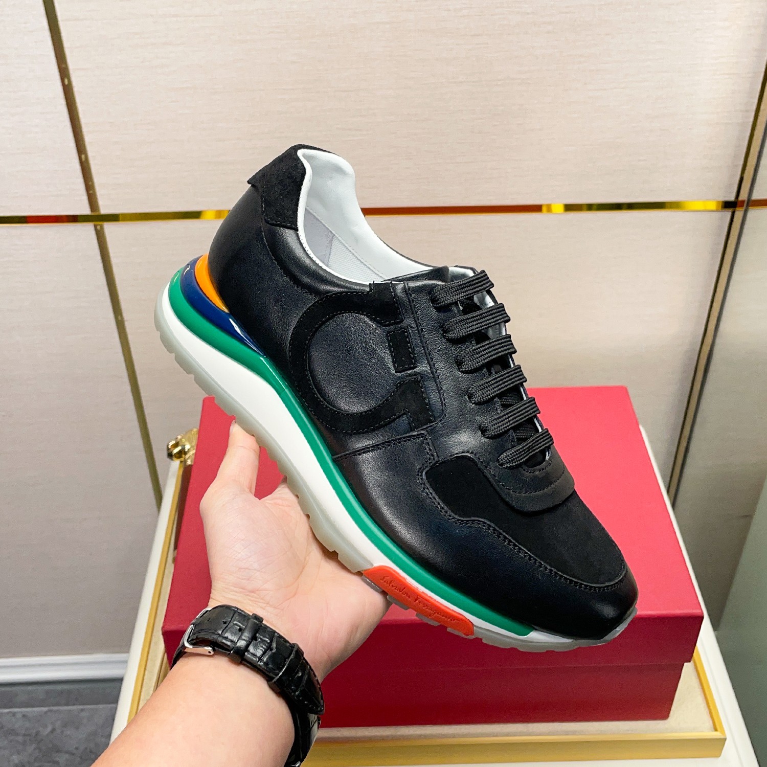 This shoes is AAAAA 1:1 quality (superb). Materials used are identical to the original ones. Salvatore Ferragamo trademark marks are indistinguishable to the authentic. Photos take by actual shoes, what you receive will be 100% same with our photos.