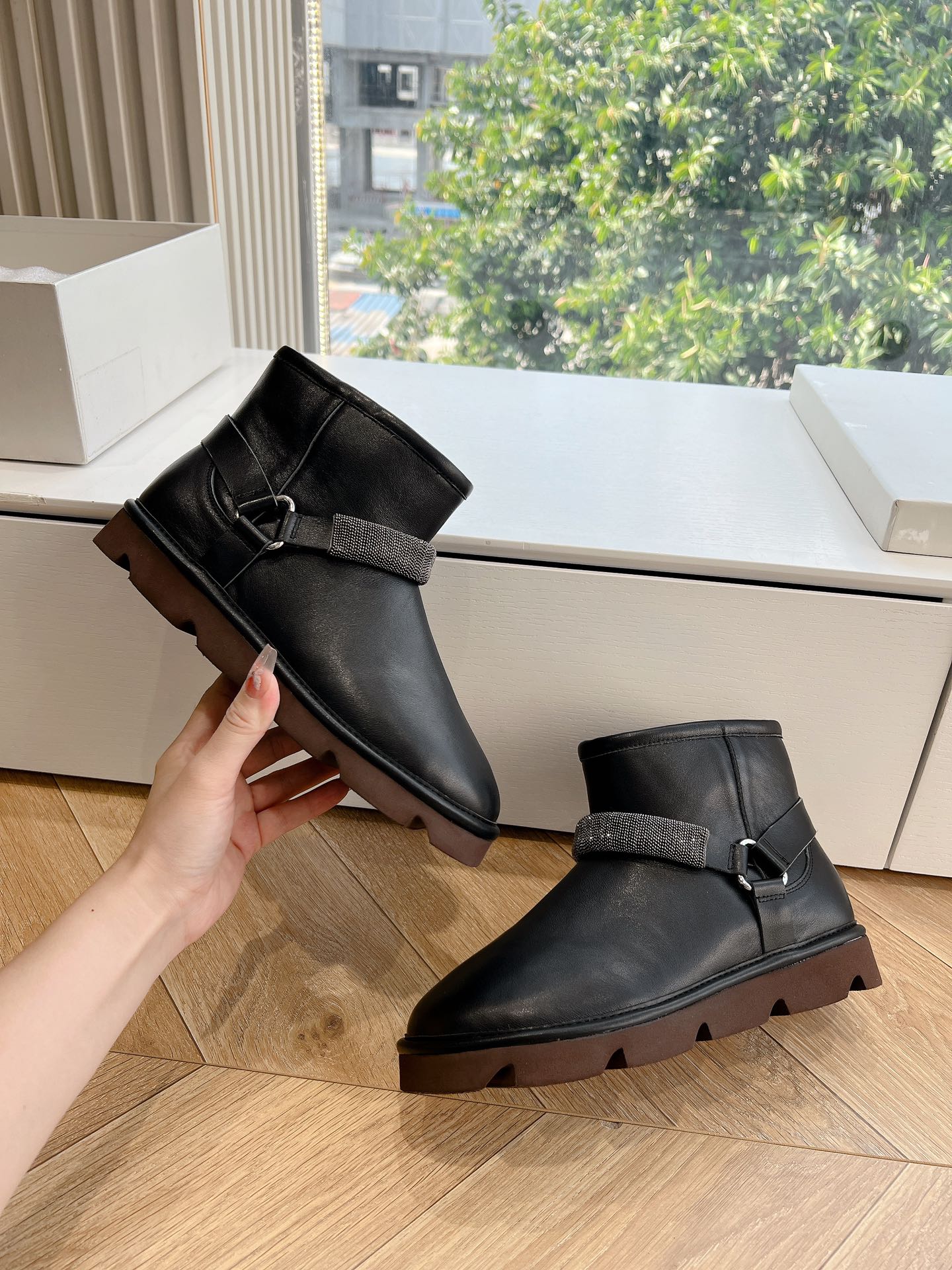 This shoes is AAAAA 1:1 quality (superb). Materials used are identical to the original ones. Brunello Cucinelli trademark marks are indistinguishable to the authentic. Photos take by actual shoes, what you receive will be 100% same with our photos.