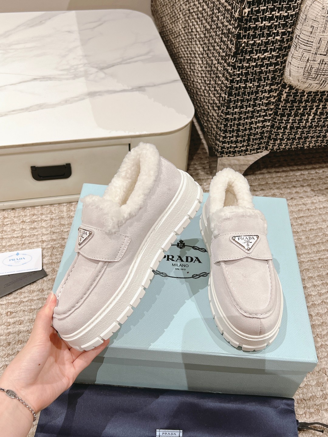 This shoes is AAAAA 1:1 quality (superb). Materials used are identical to the original ones. Prada trademark marks are indistinguishable to the authentic. Photos take by actual shoes, what you receive will be 100% same with our photos.