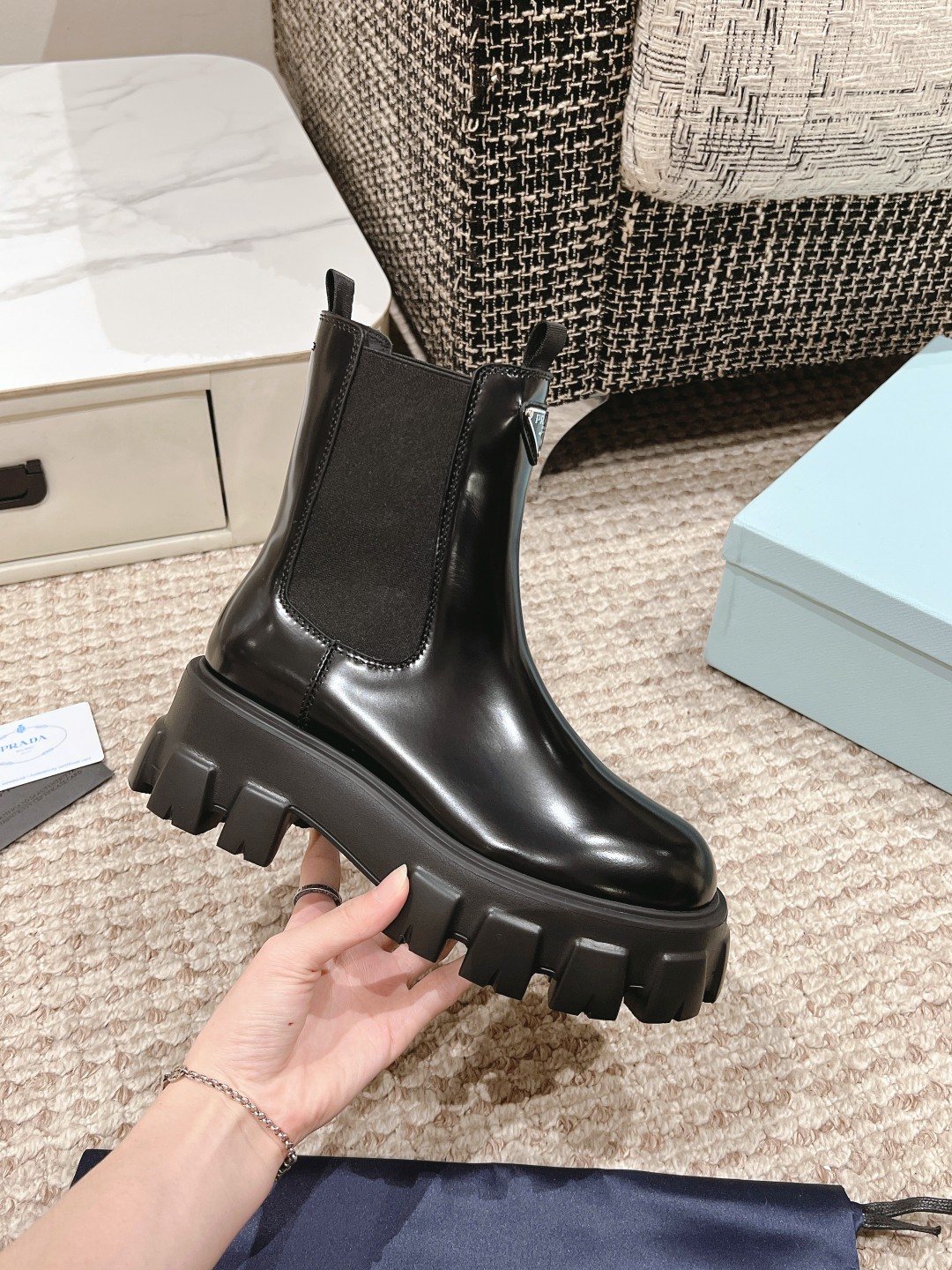 This shoes is AAAAA 1:1 quality (superb). Materials used are identical to the original ones. Prada trademark marks are indistinguishable to the authentic. Photos take by actual shoes, what you receive will be 100% same with our photos.