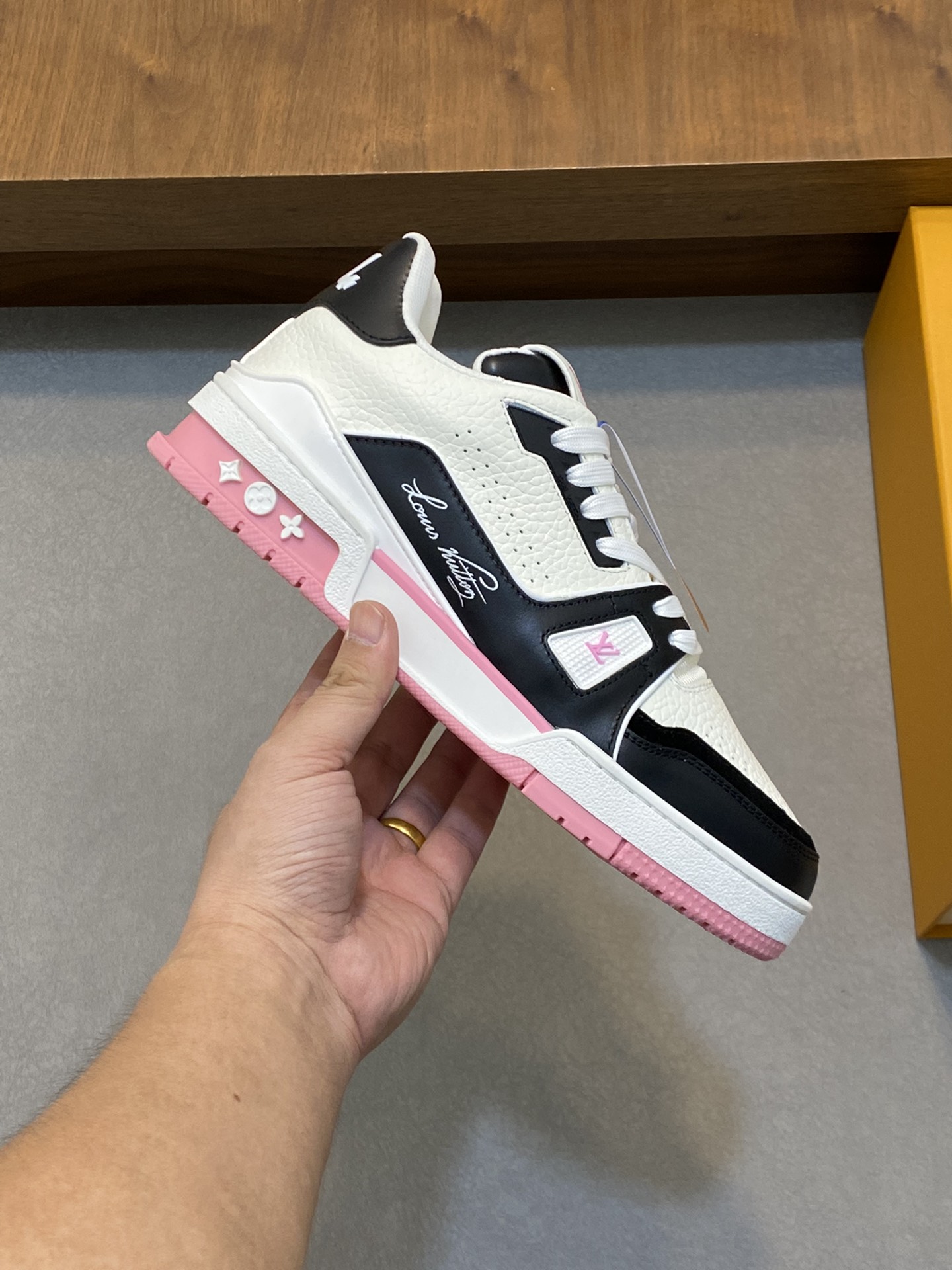 This shoes is AAAAA 1:1 quality (superb). Materials used are identical to the original ones. Louis Vuitton trademark marks are indistinguishable to the authentic. Photos take by actual shoes, what you receive will be 100% same with our photos.