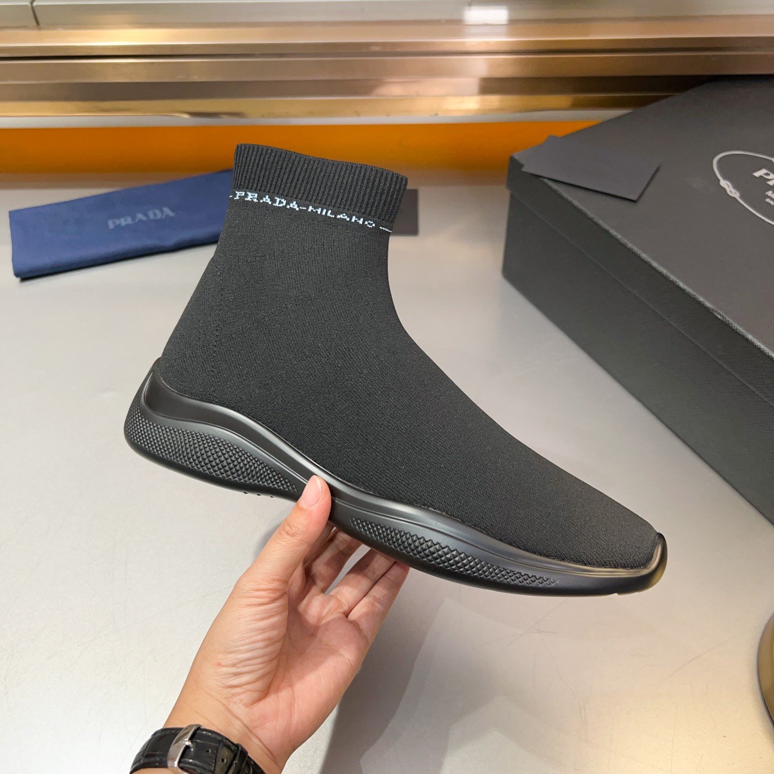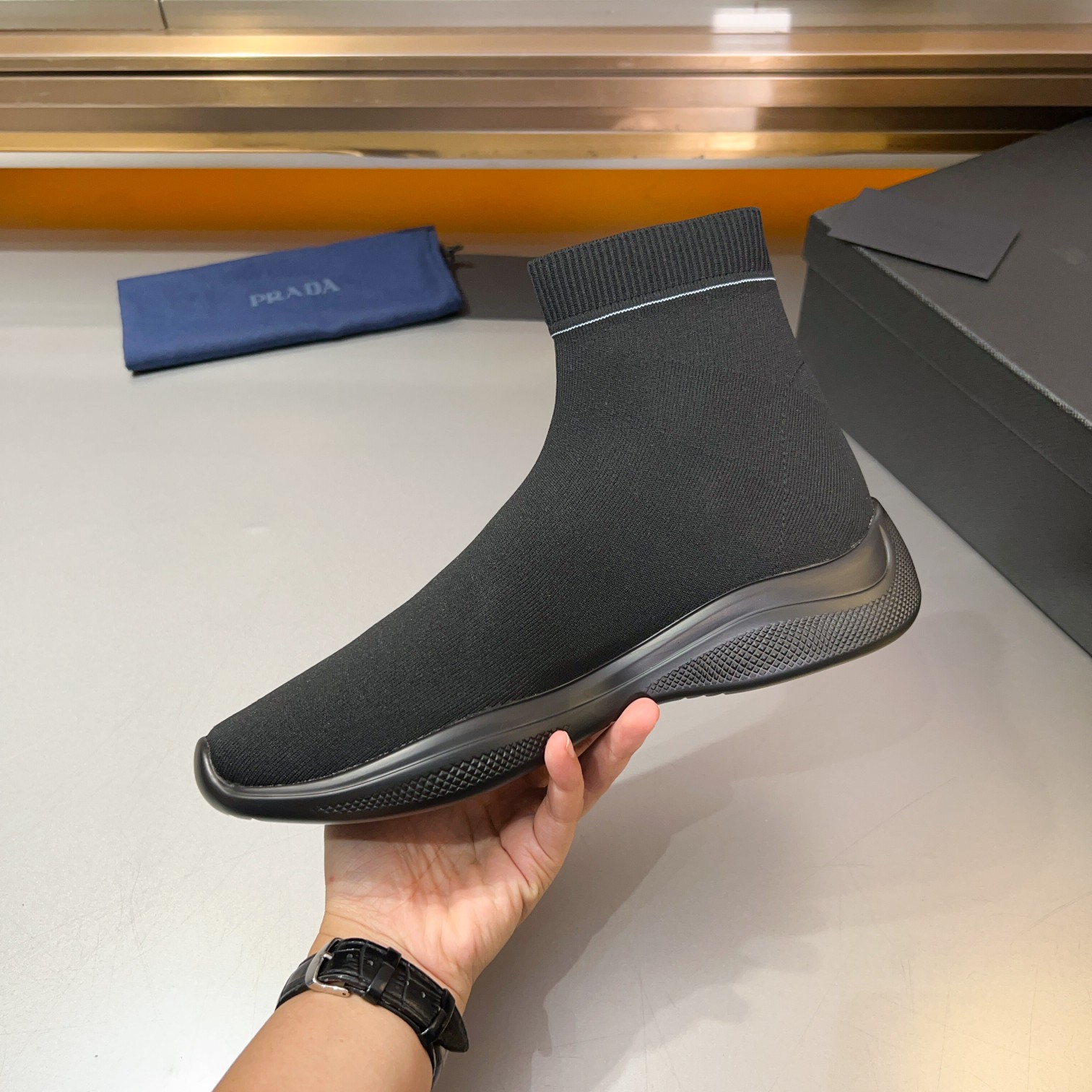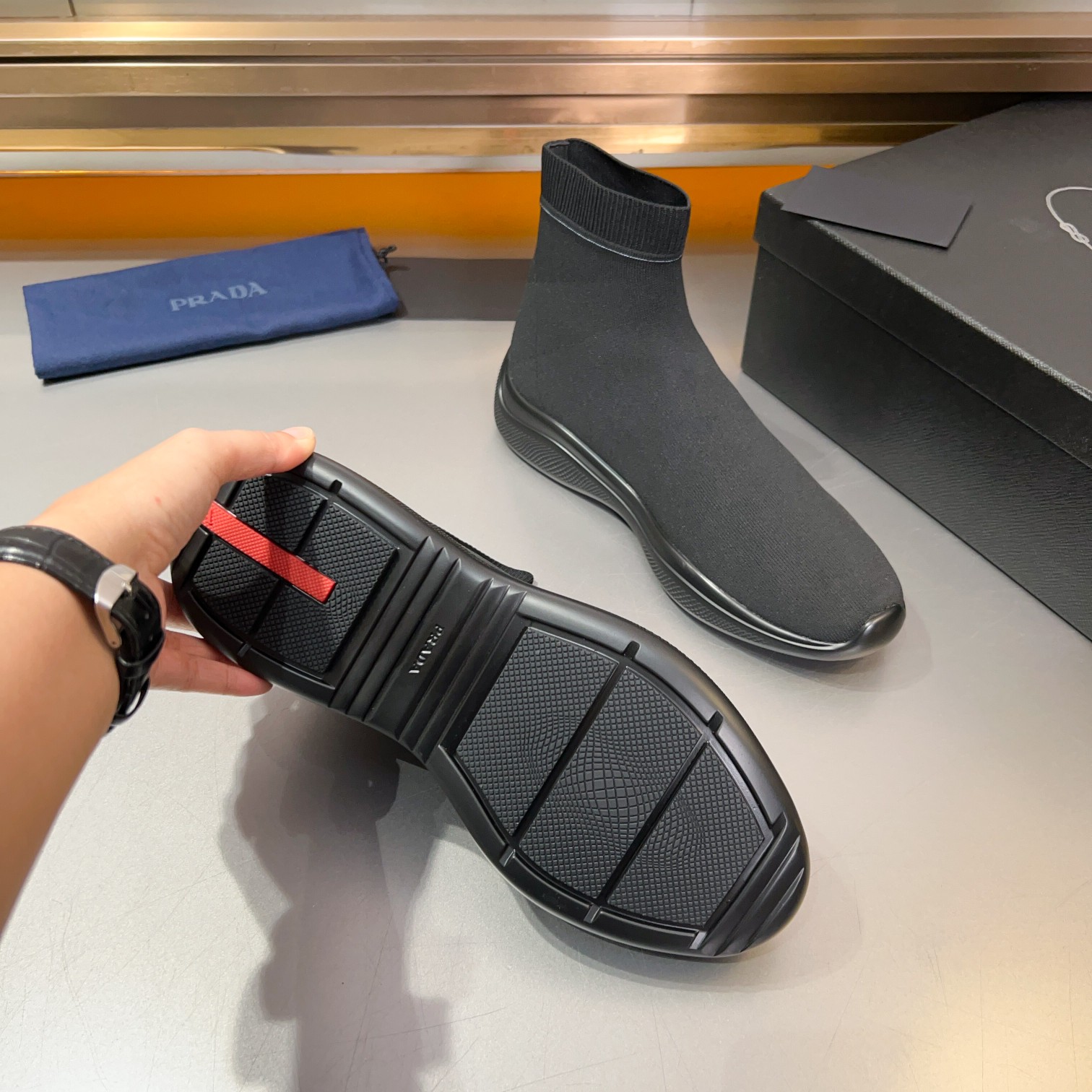 This shoes is AAAAA 1:1 quality (superb). Materials used are identical to the original ones. Prada trademark marks are indistinguishable to the authentic. Photos take by actual shoes, what you receive will be 100% same with our photos.