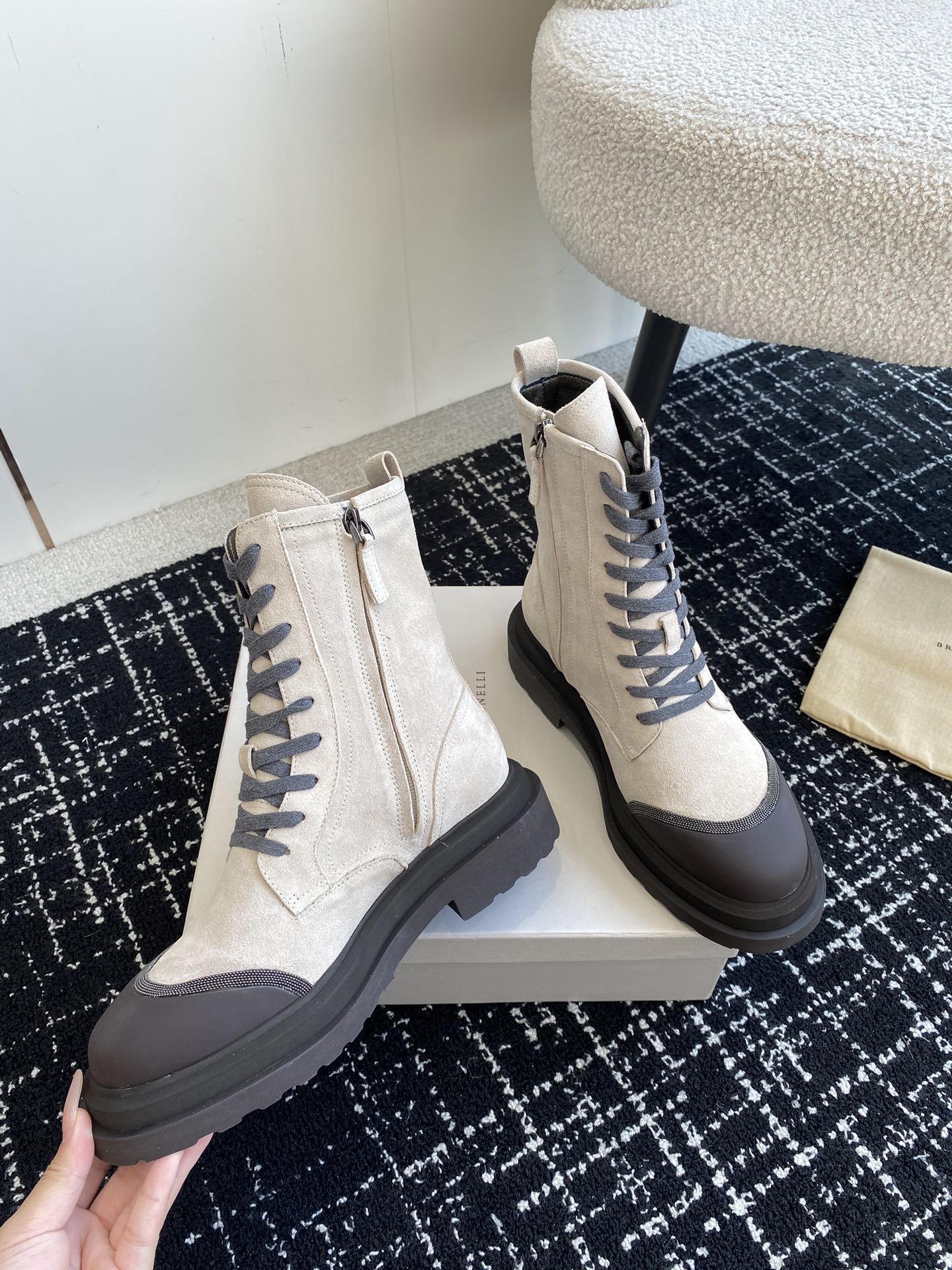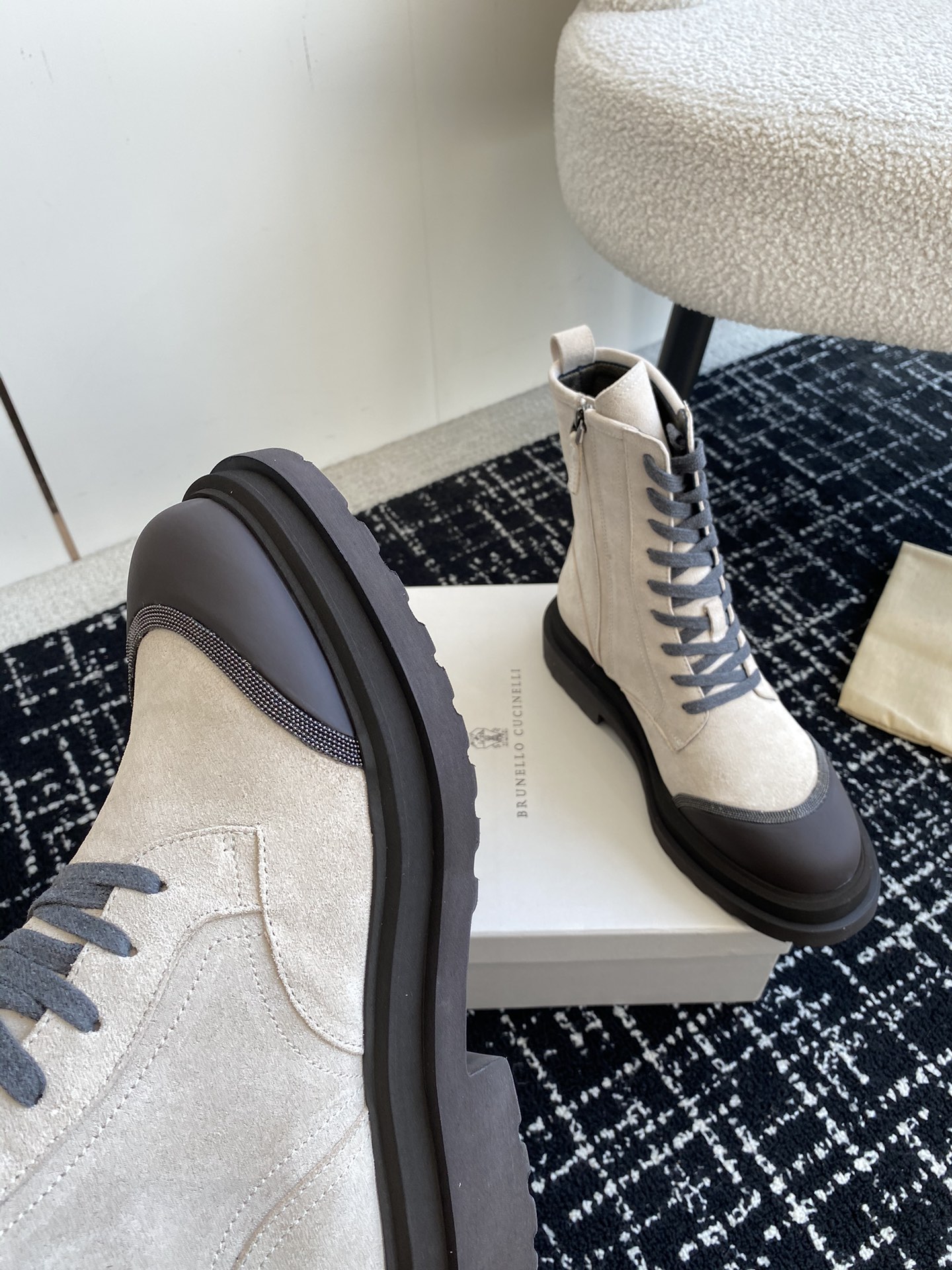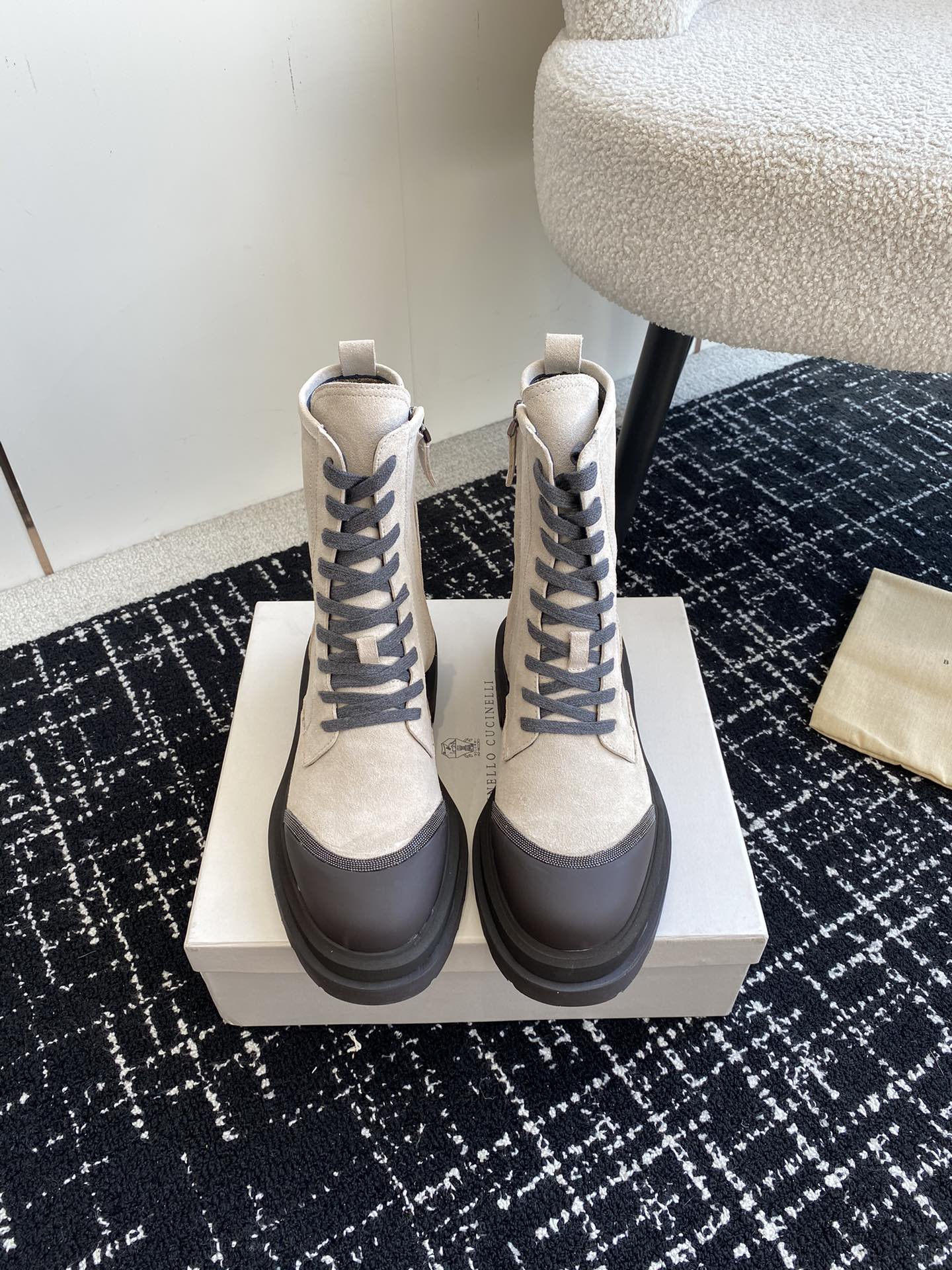 This shoes is AAAAA 1:1 quality (superb). Materials used are identical to the original ones. Brunello Cucinelli trademark marks are indistinguishable to the authentic. Photos take by actual shoes, what you receive will be 100% same with our photos.