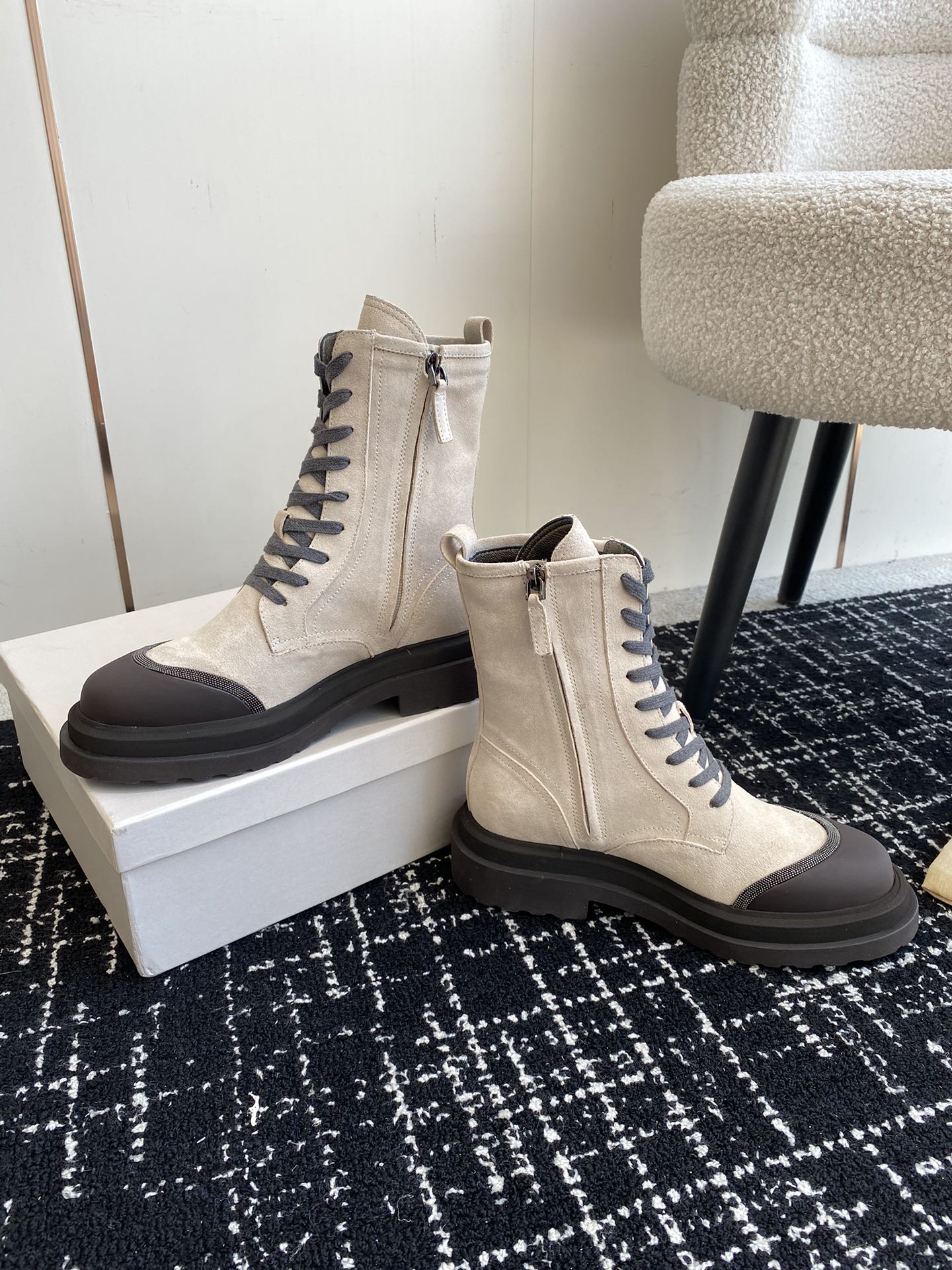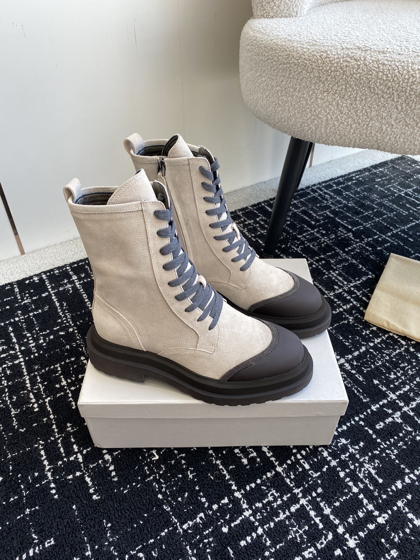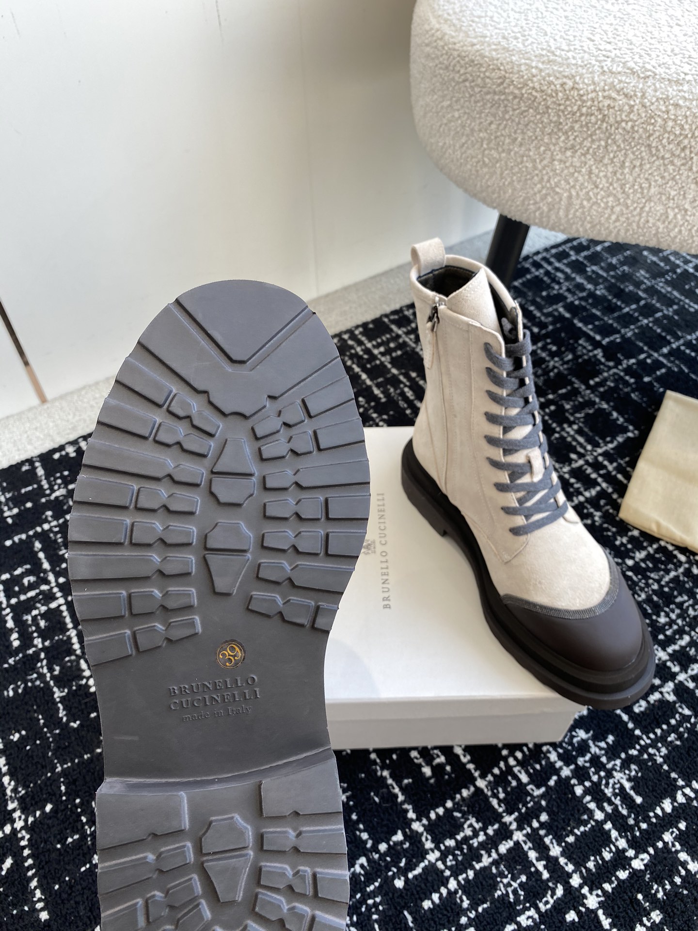 This shoes is AAAAA 1:1 quality (superb). Materials used are identical to the original ones. Brunello Cucinelli trademark marks are indistinguishable to the authentic. Photos take by actual shoes, what you receive will be 100% same with our photos.
