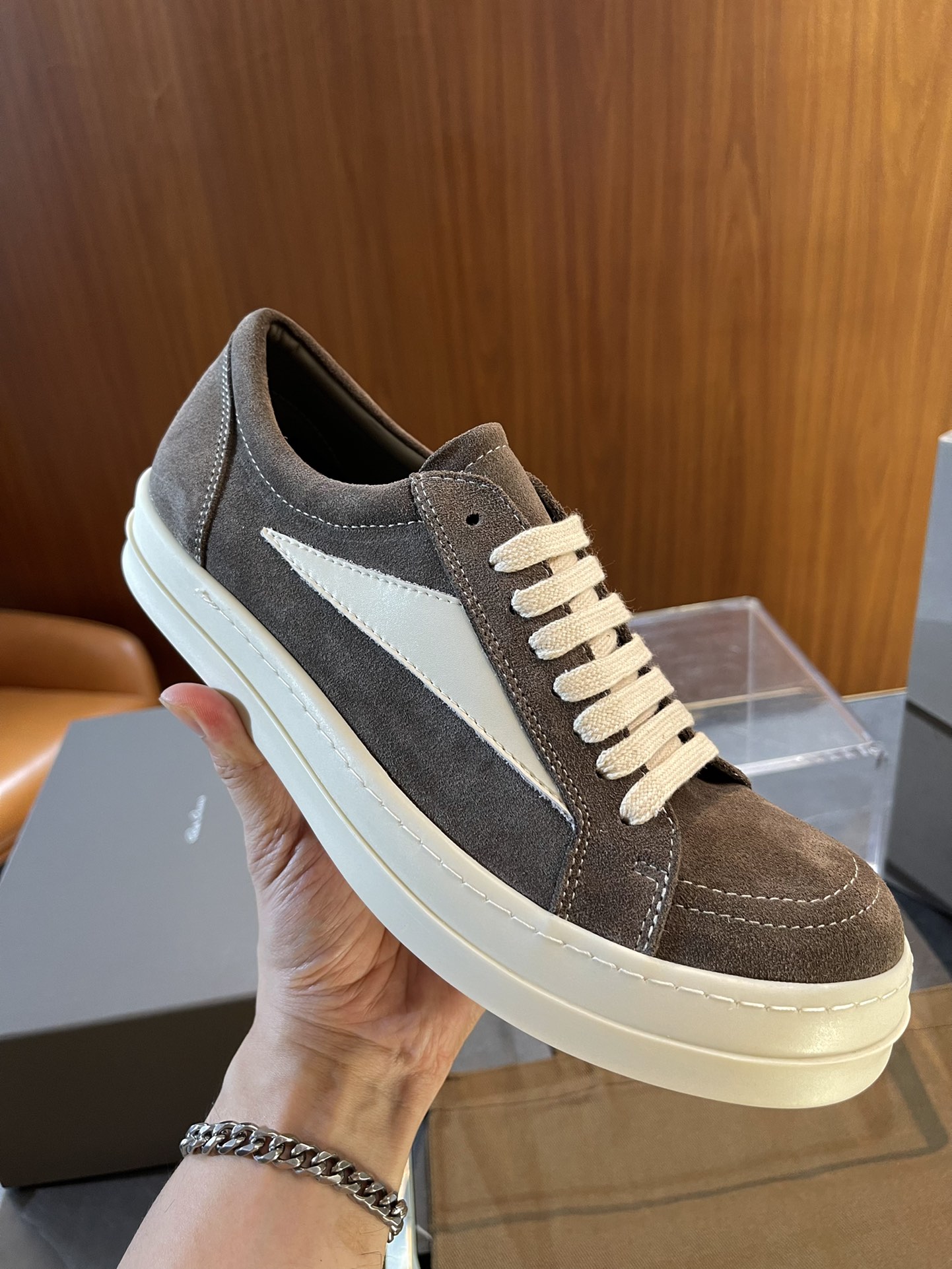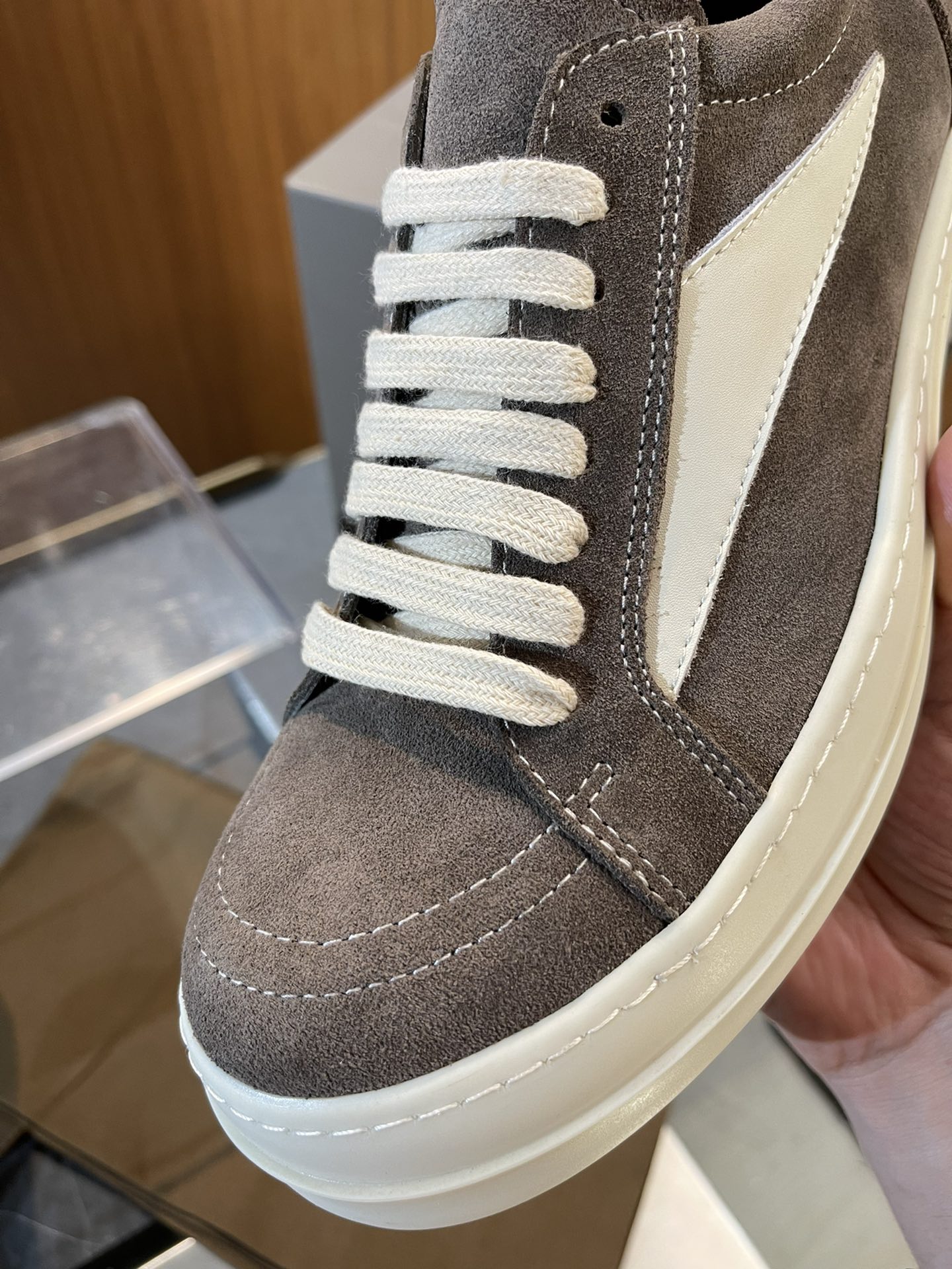 This shoes is AAAAA 1:1 quality (superb). Materials used are identical to the original ones. Rick Owens trademark marks are indistinguishable to the authentic. Photos take by actual shoes, what you receive will be 100% same with our photos.