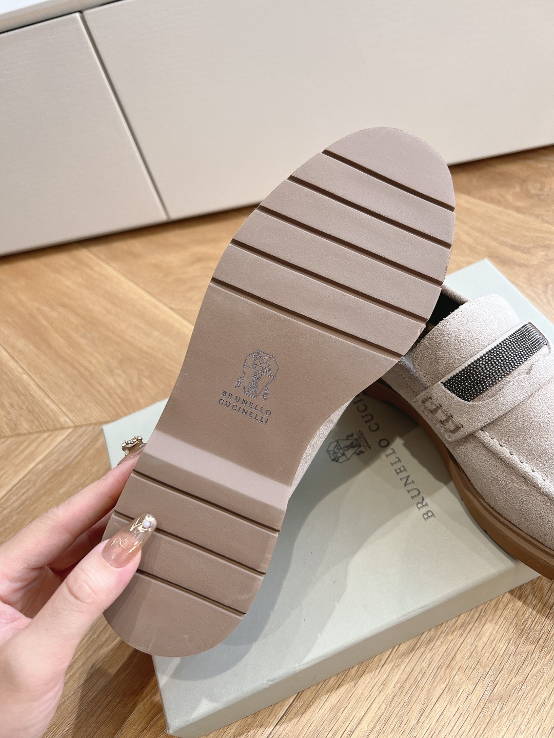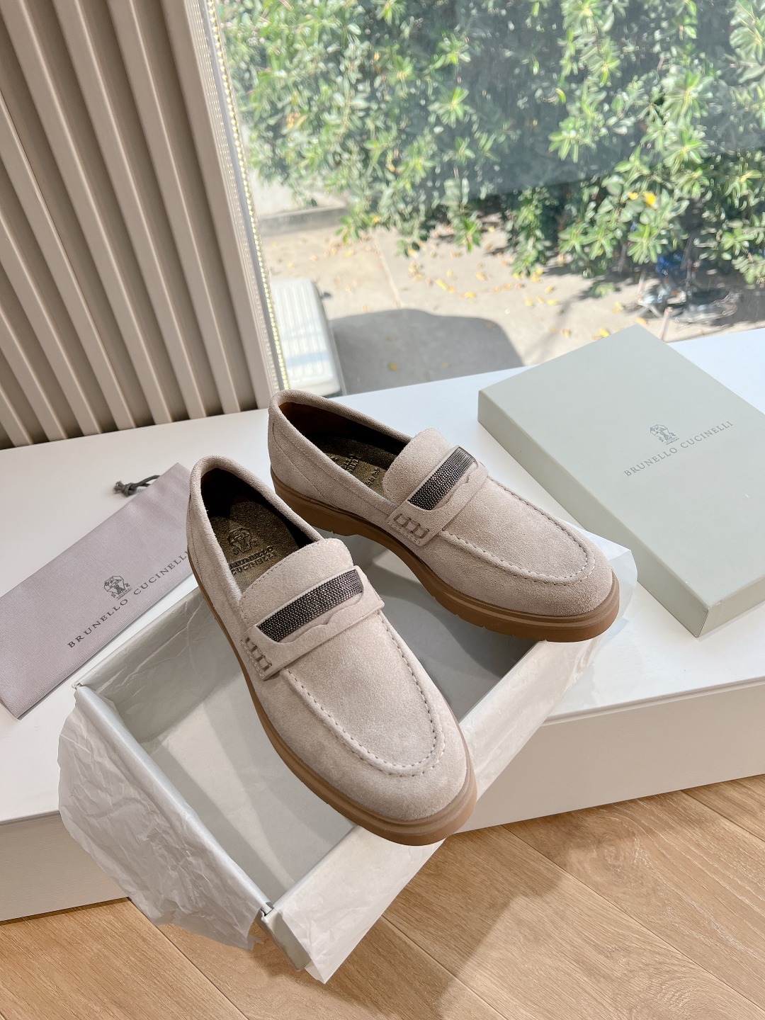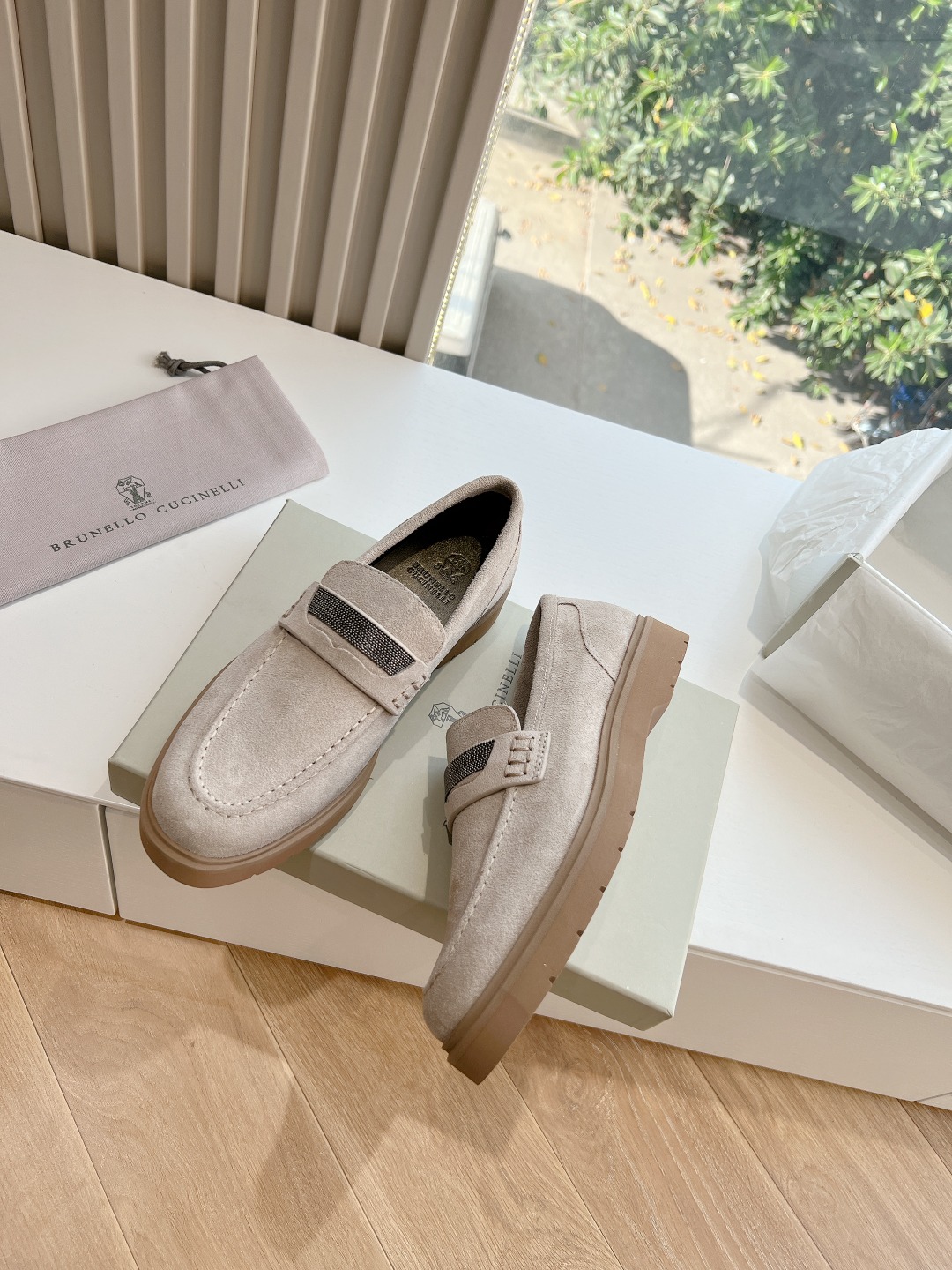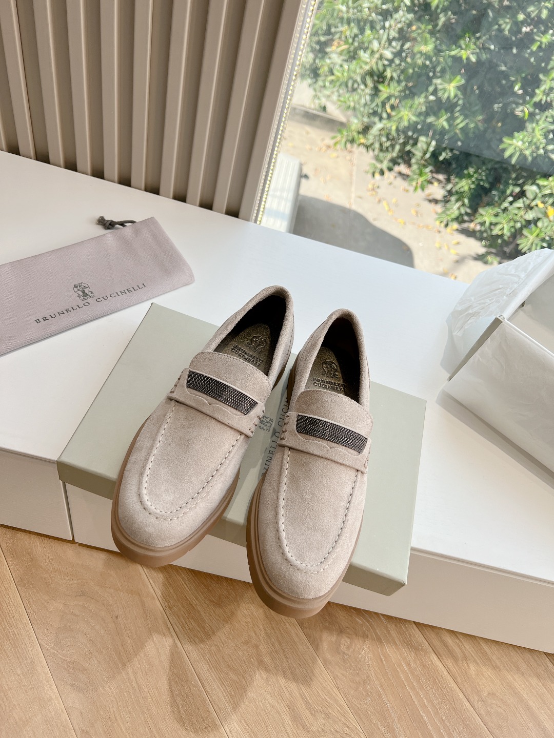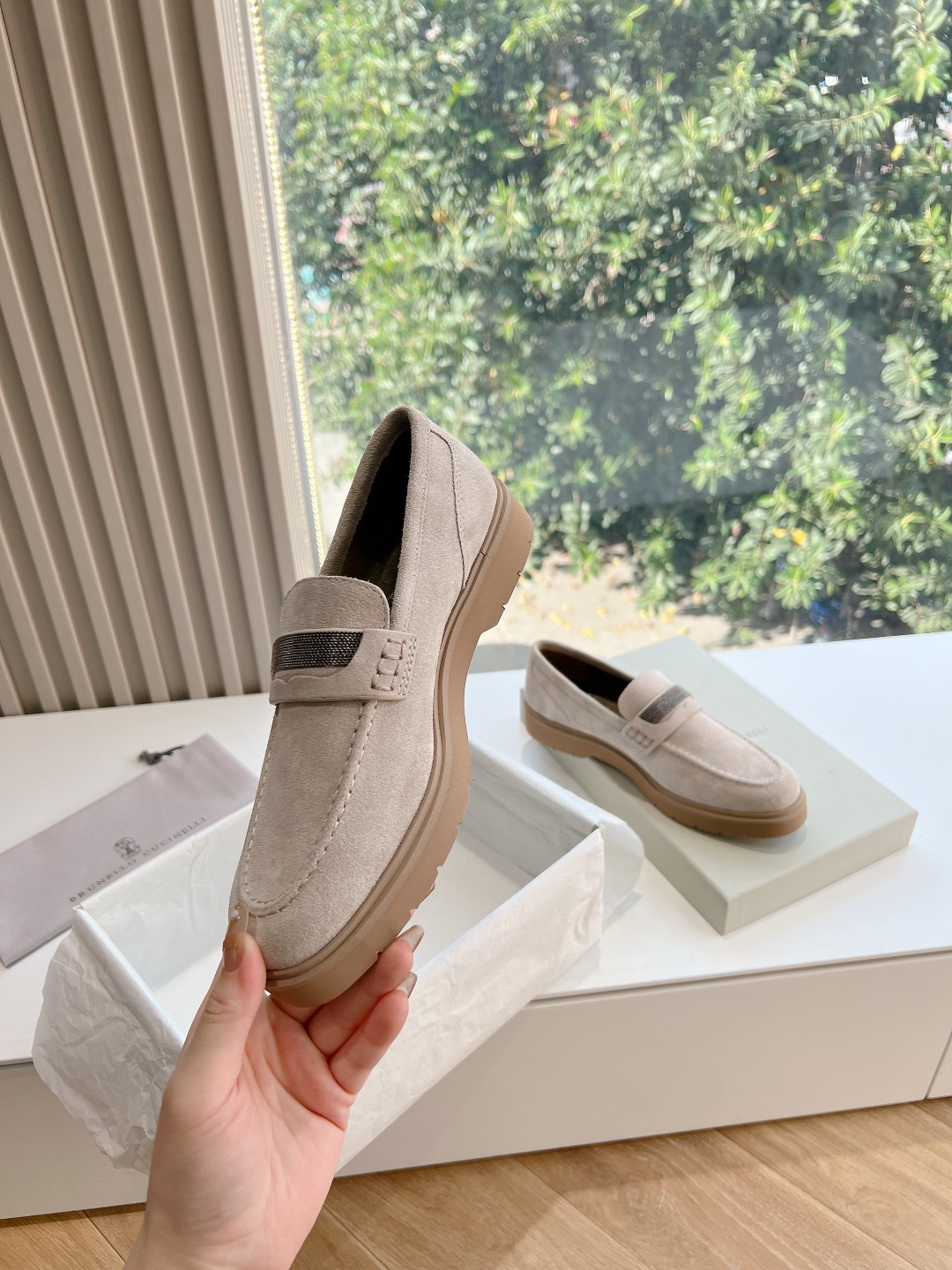 This shoes is AAAAA 1:1 quality (superb). Materials used are identical to the original ones. Brunello Cucinelli trademark marks are indistinguishable to the authentic. Photos take by actual shoes, what you receive will be 100% same with our photos.