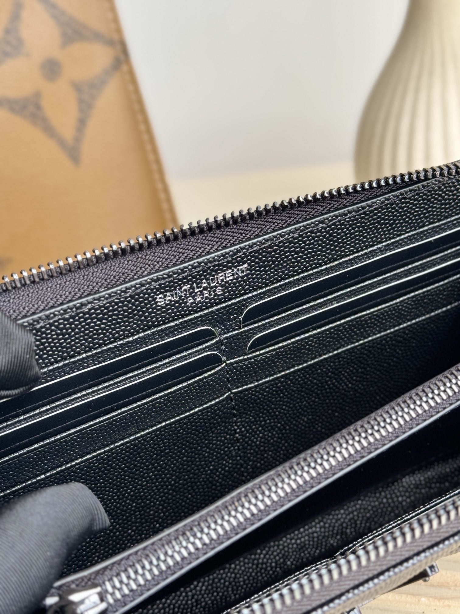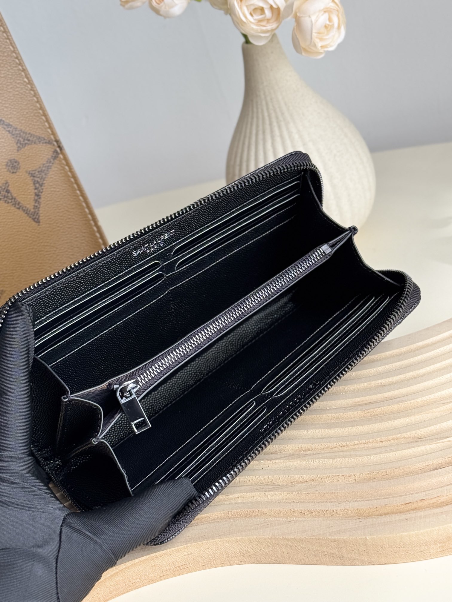 NO:2142407. The wallet is from Saint Laurent designer.