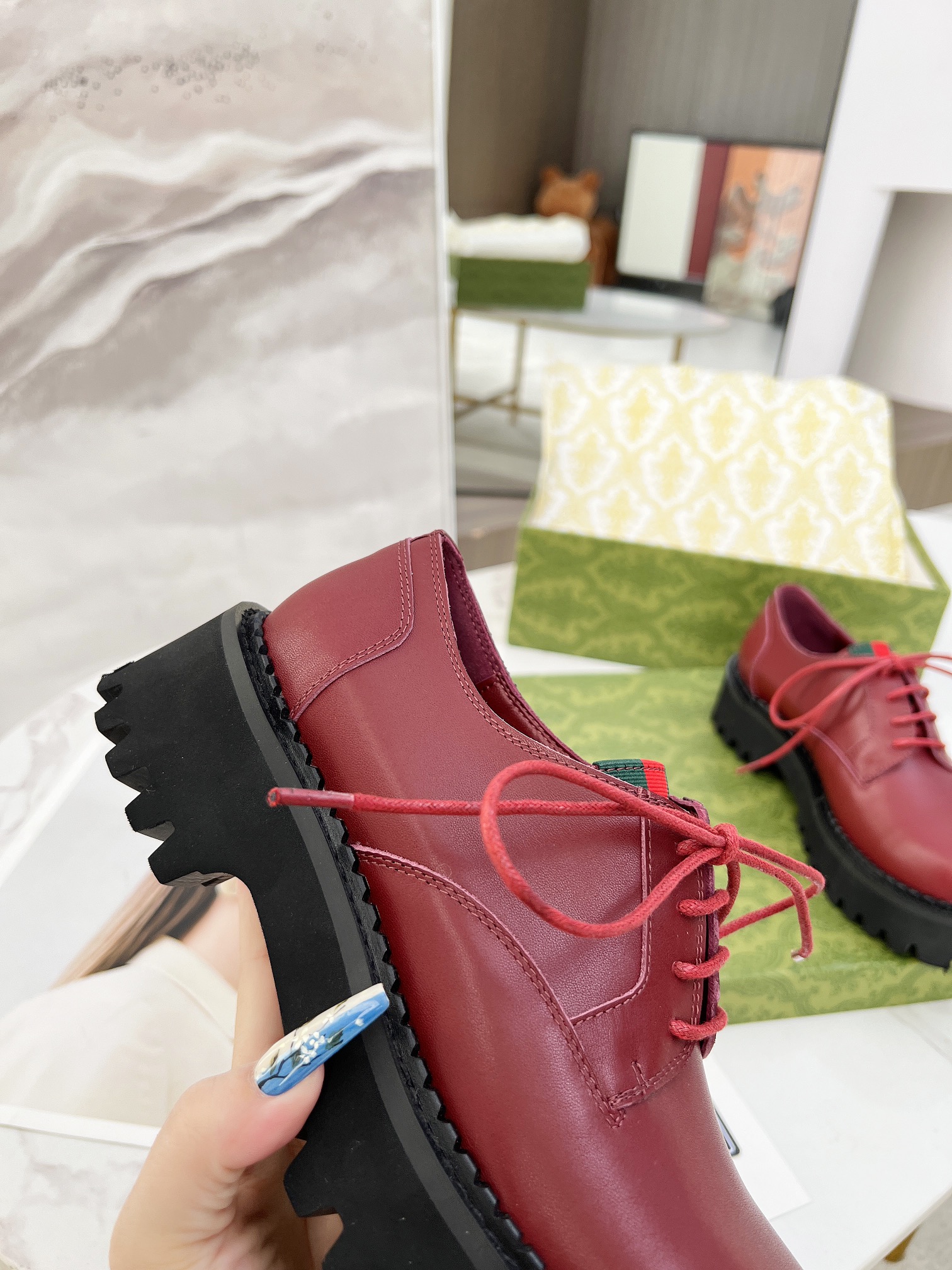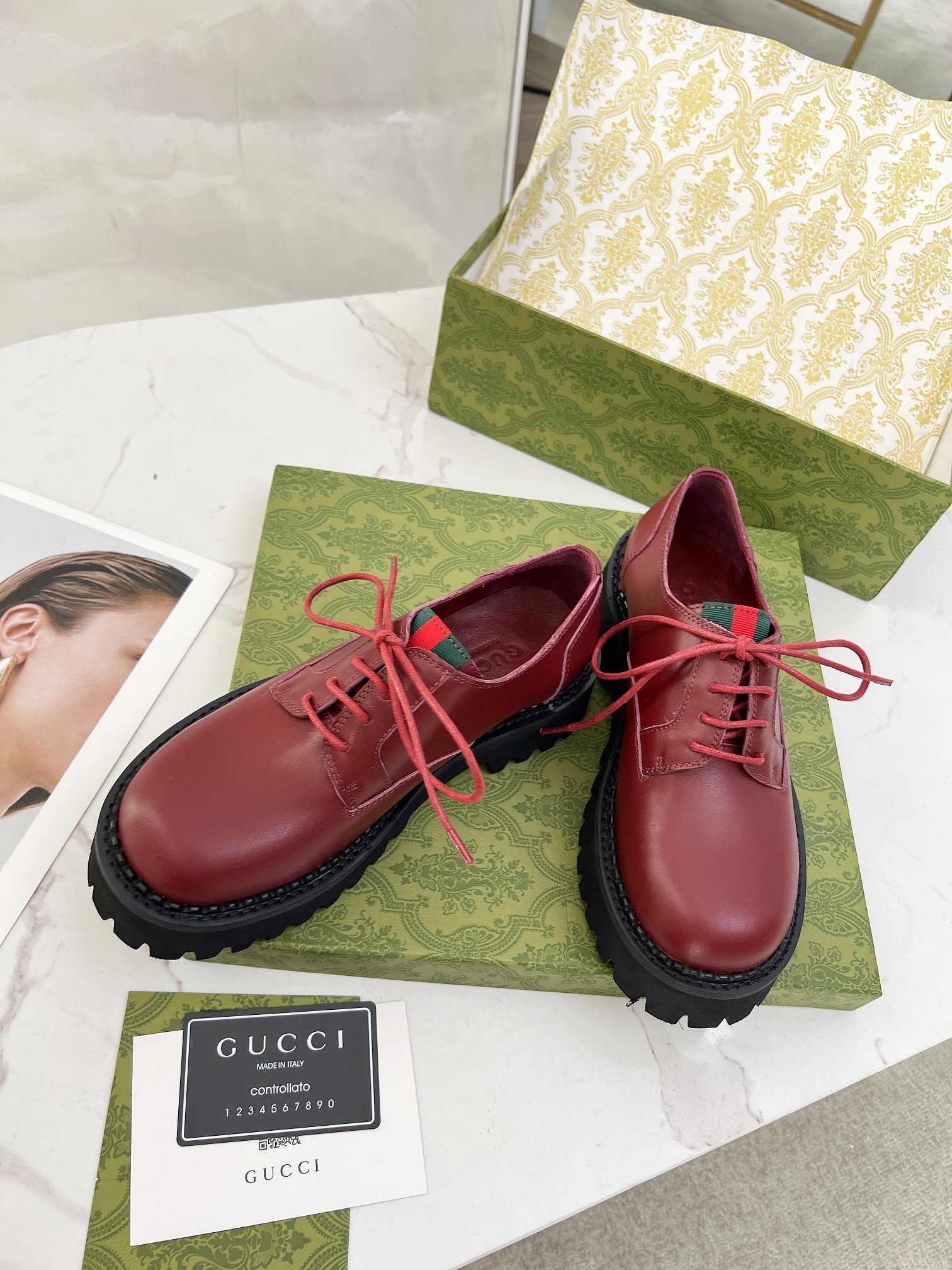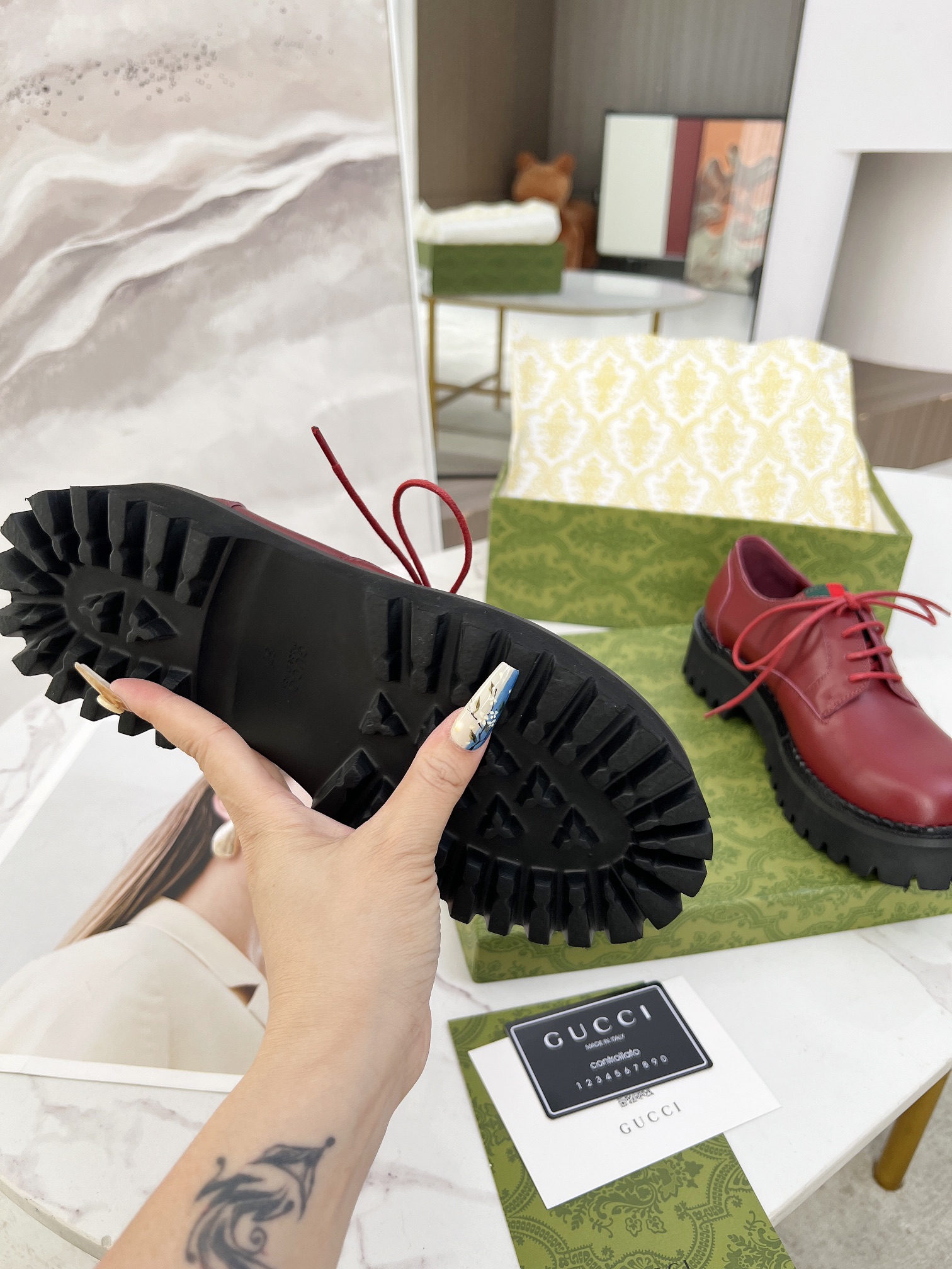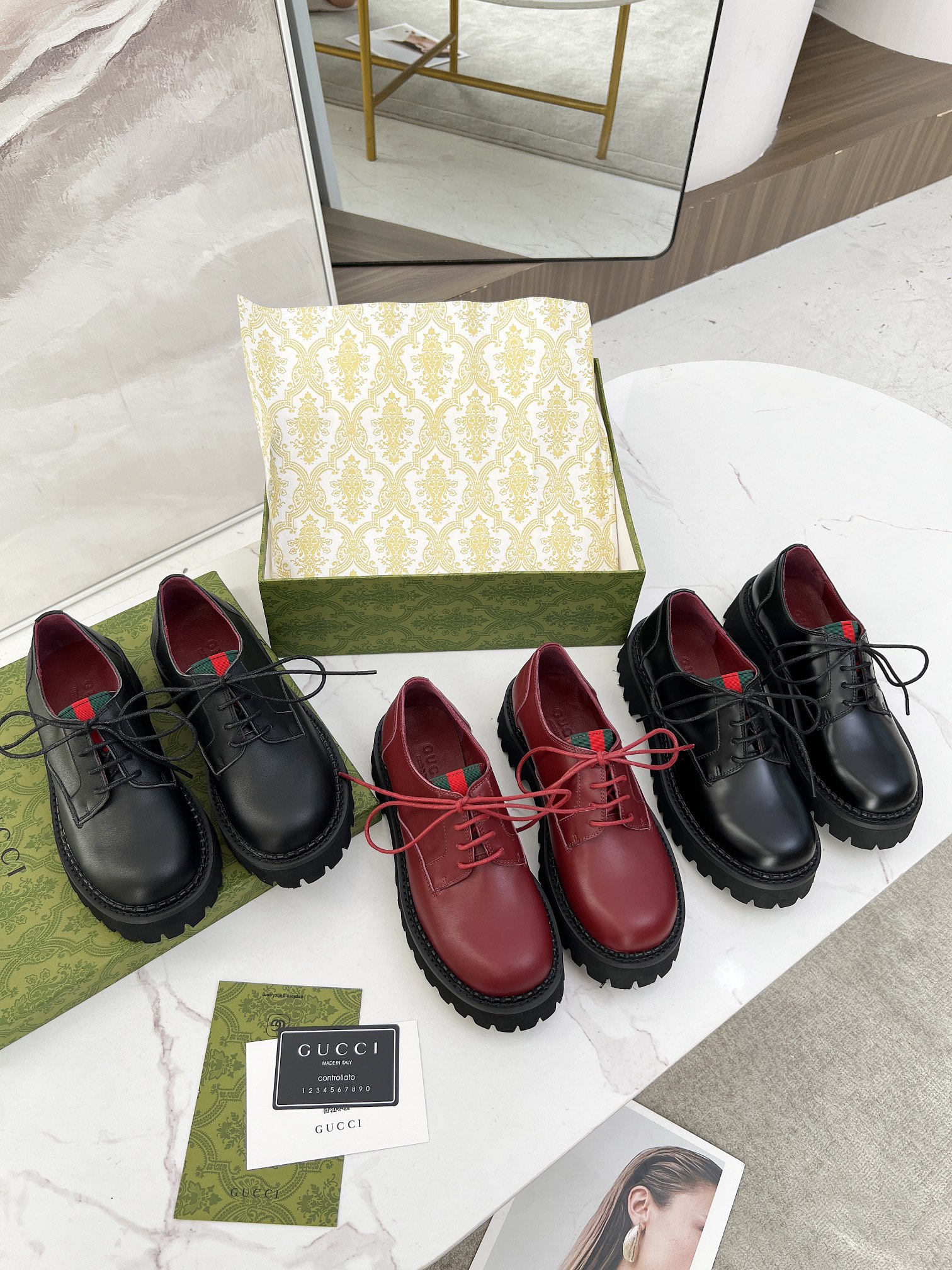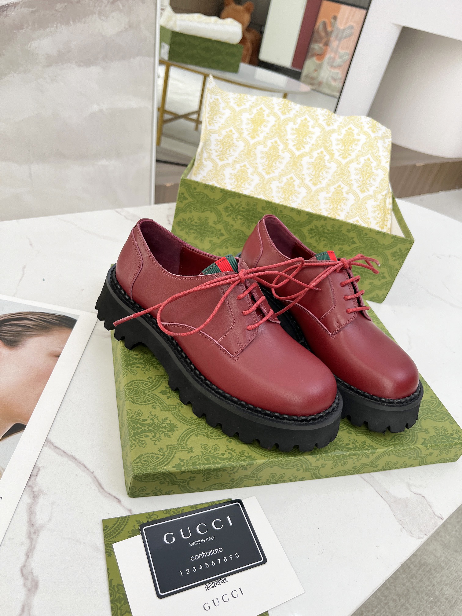 This shoes is AAAAA 1:1 quality (superb). Materials used are identical to the original ones. Gucci trademark marks are indistinguishable to the authentic. Photos take by actual shoes, what you receive will be 100% same with our photos.