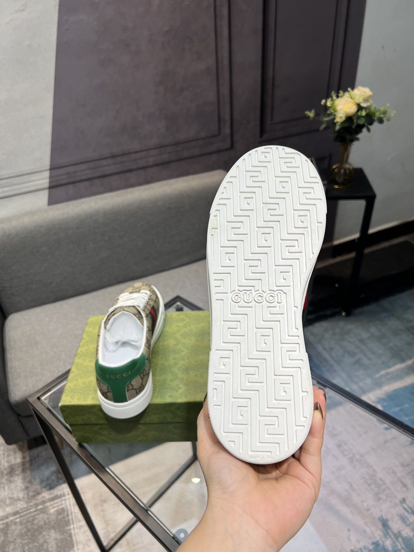 This shoes is AAAAA 1:1 quality (superb). Materials used are identical to the original ones. Gucci trademark marks are indistinguishable to the authentic. Photos take by actual shoes, what you receive will be 100% same with our photos.