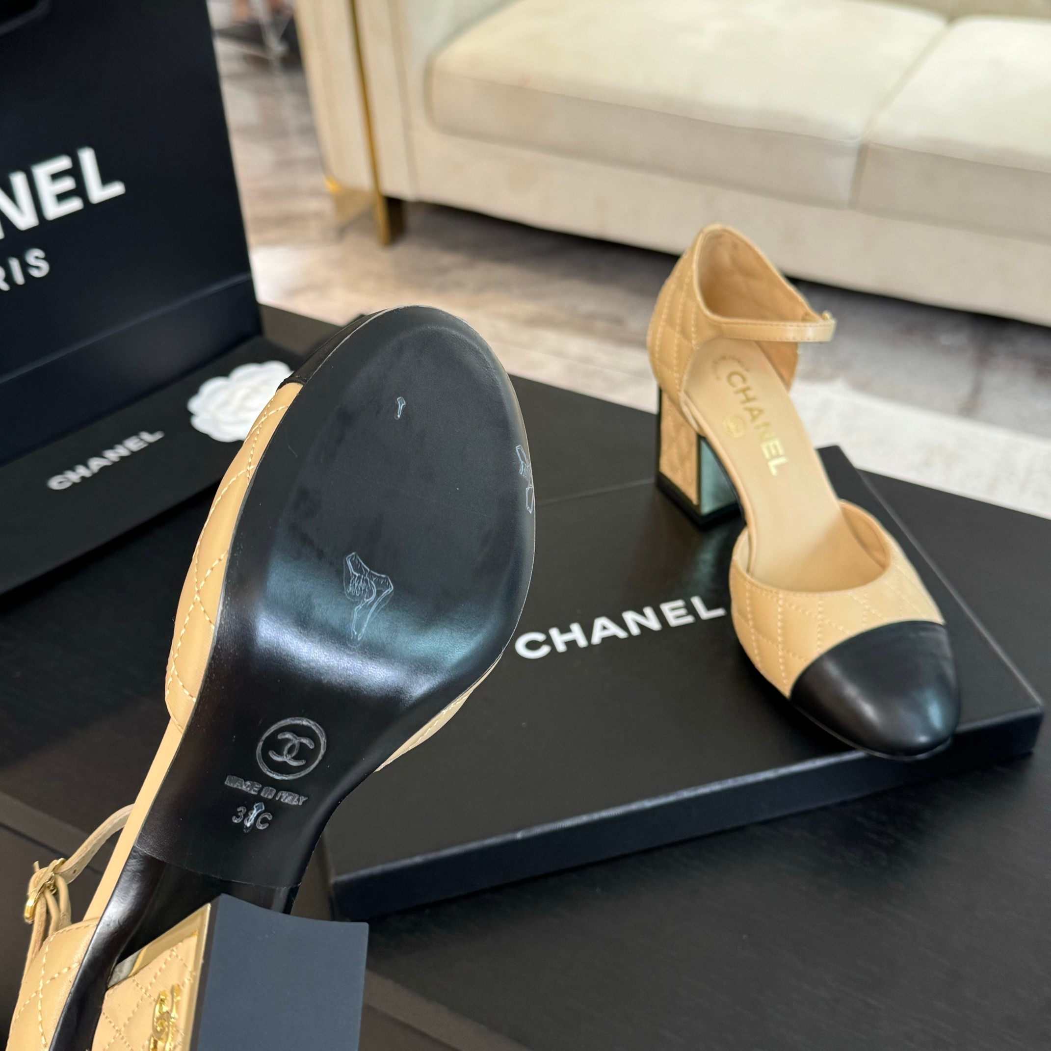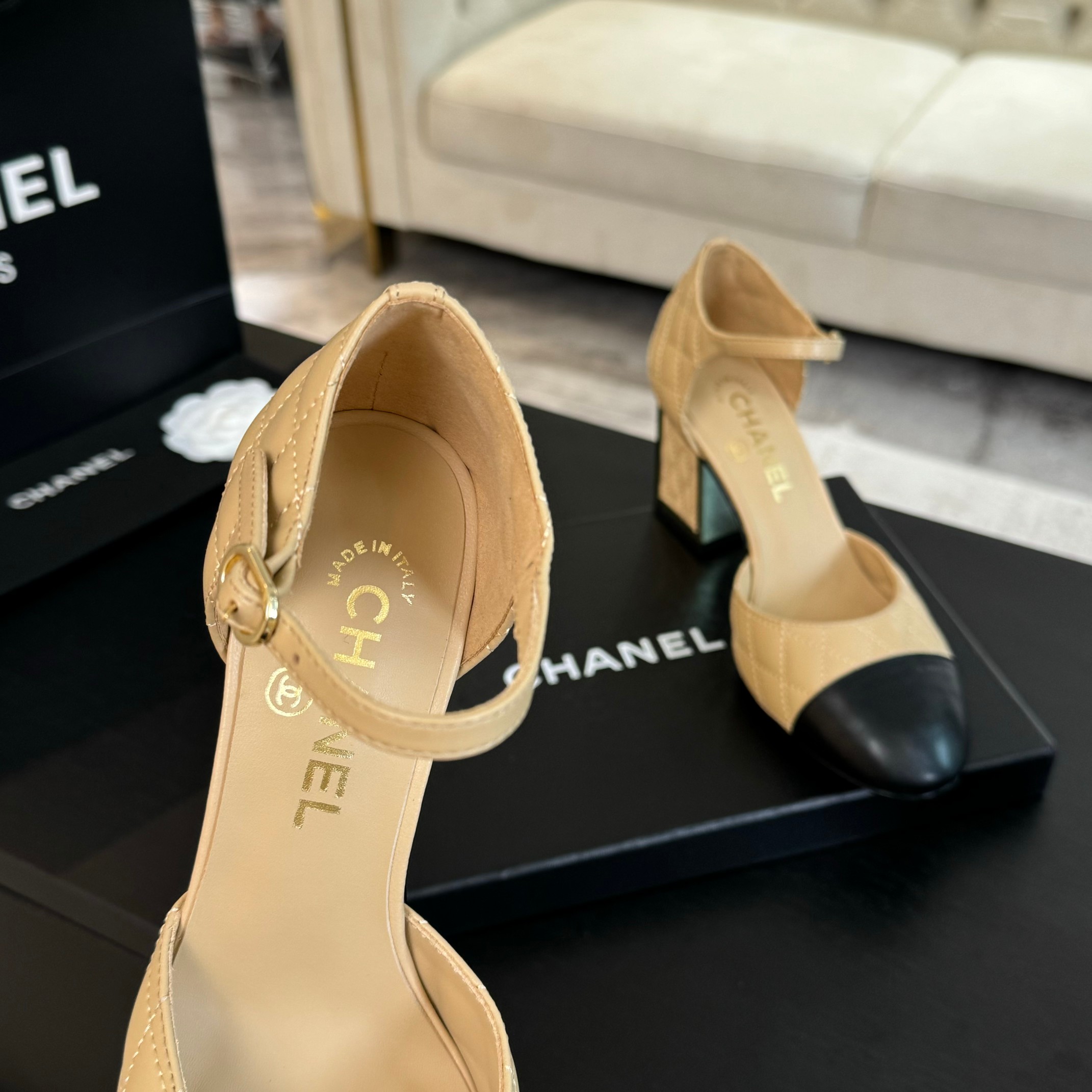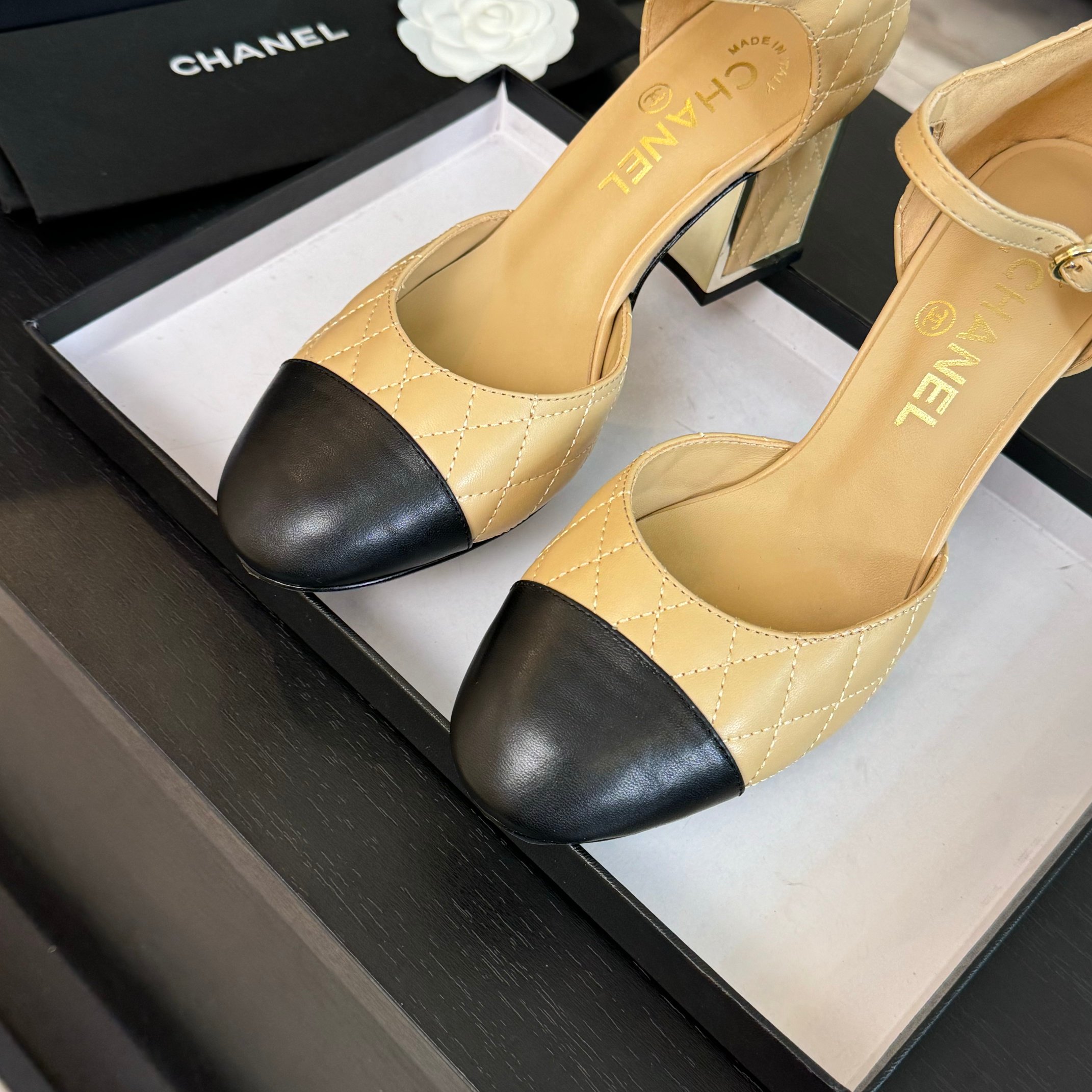 This shoes is AAAAA 1:1 quality (superb). Materials used are identical to the original ones. Chanel trademark marks are indistinguishable to the authentic. Photos take by actual shoes, what you receive will be 100% same with our photos.