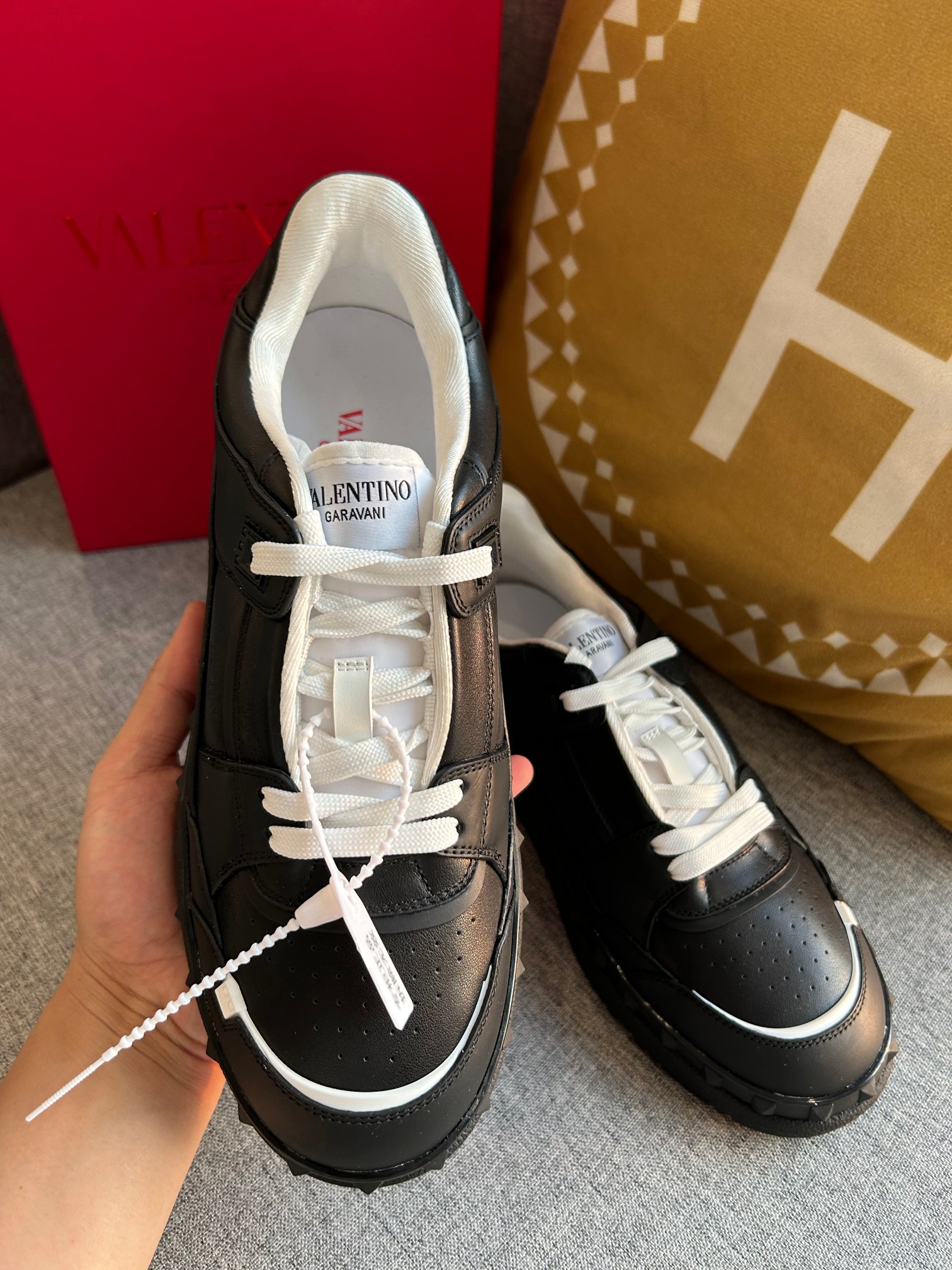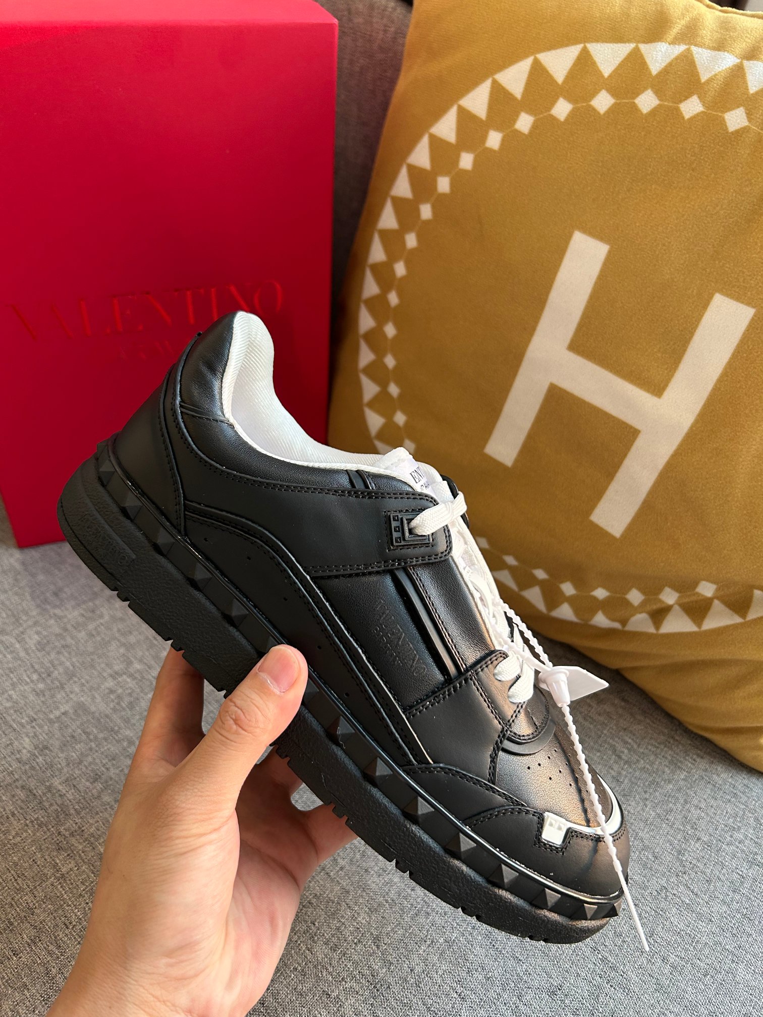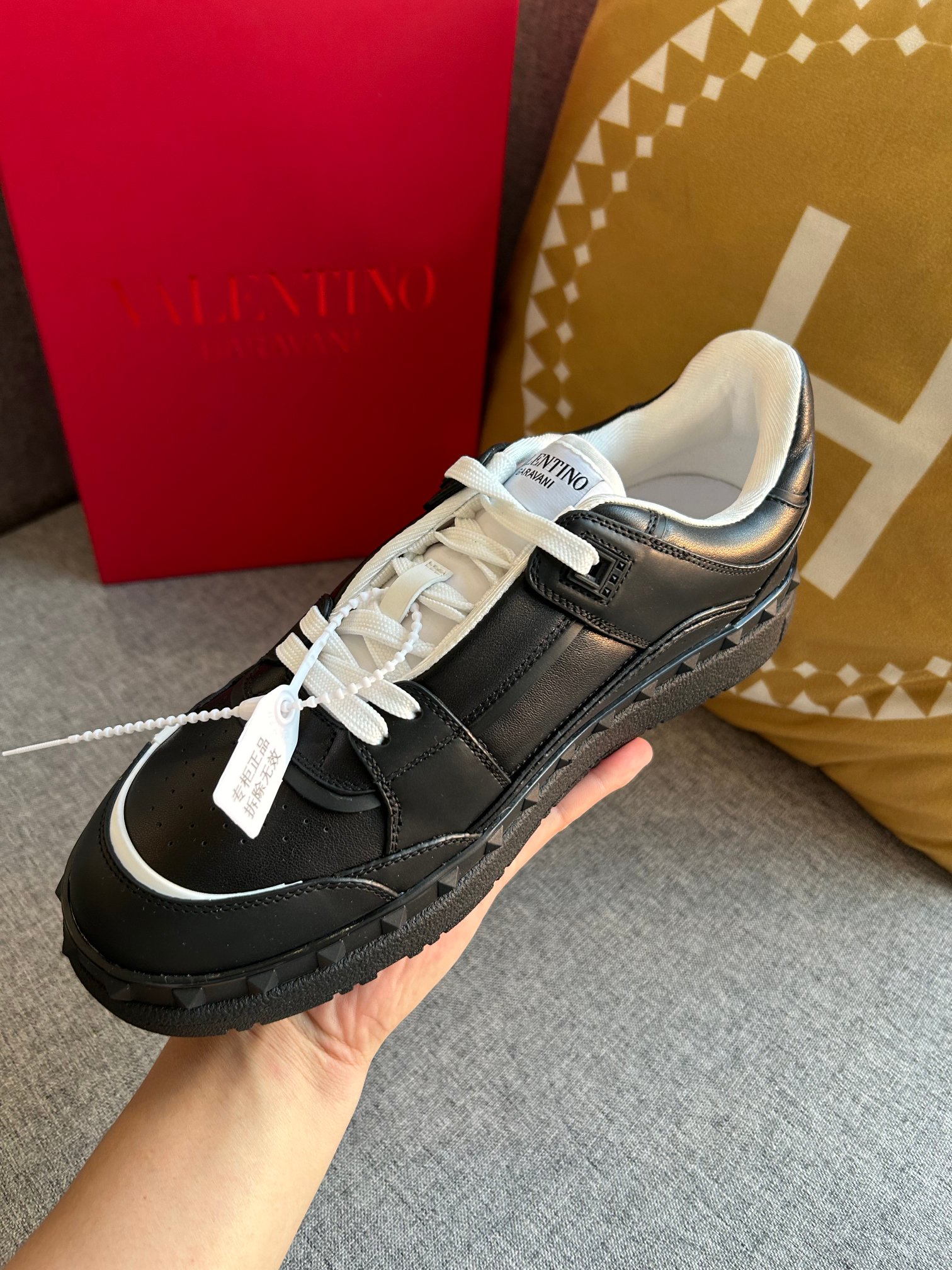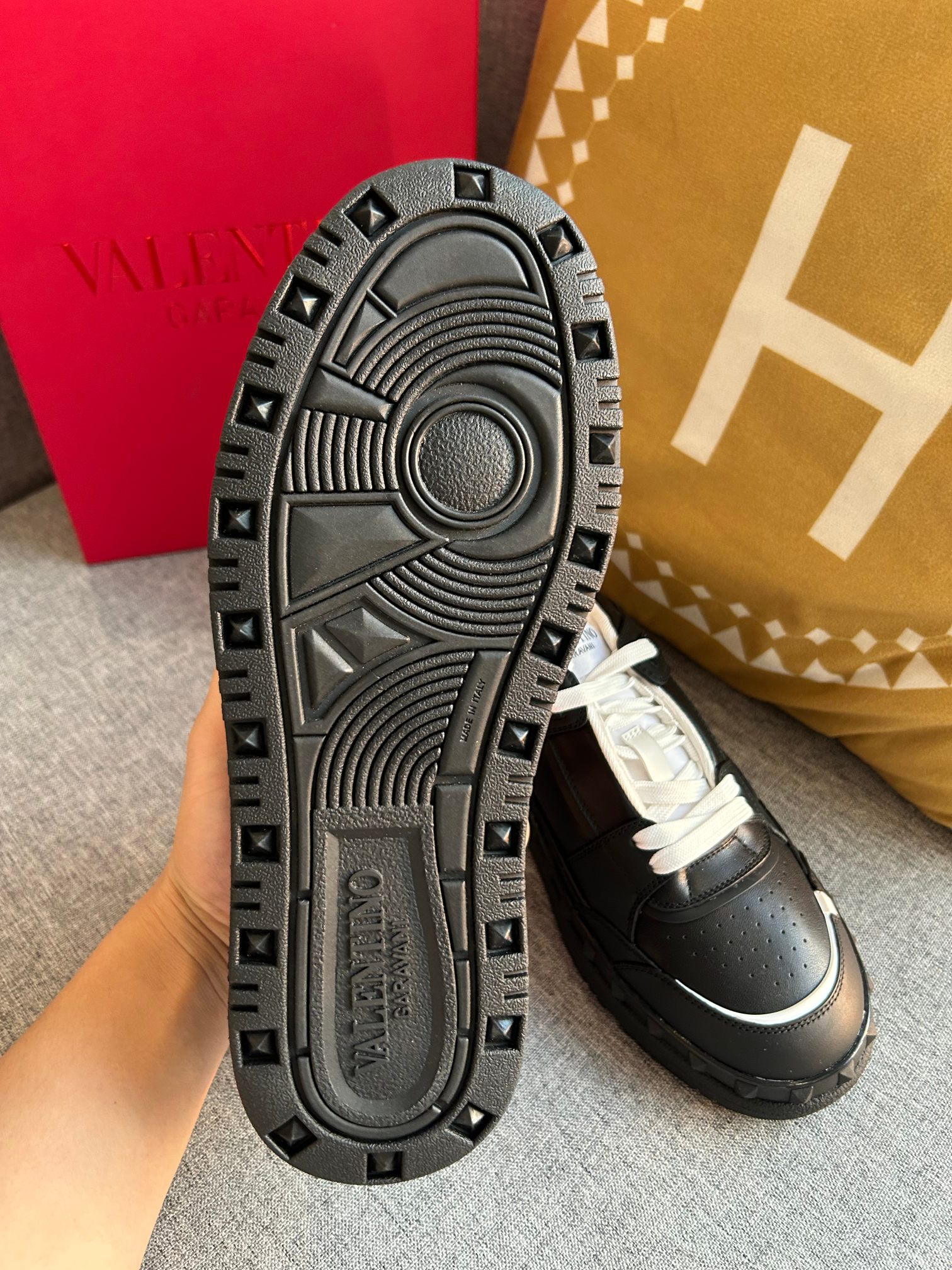 This shoes is AAAAA 1:1 quality (superb). Materials used are identical to the original ones. Valentino trademark marks are indistinguishable to the authentic. Photos take by actual shoes, what you receive will be 100% same with our photos.