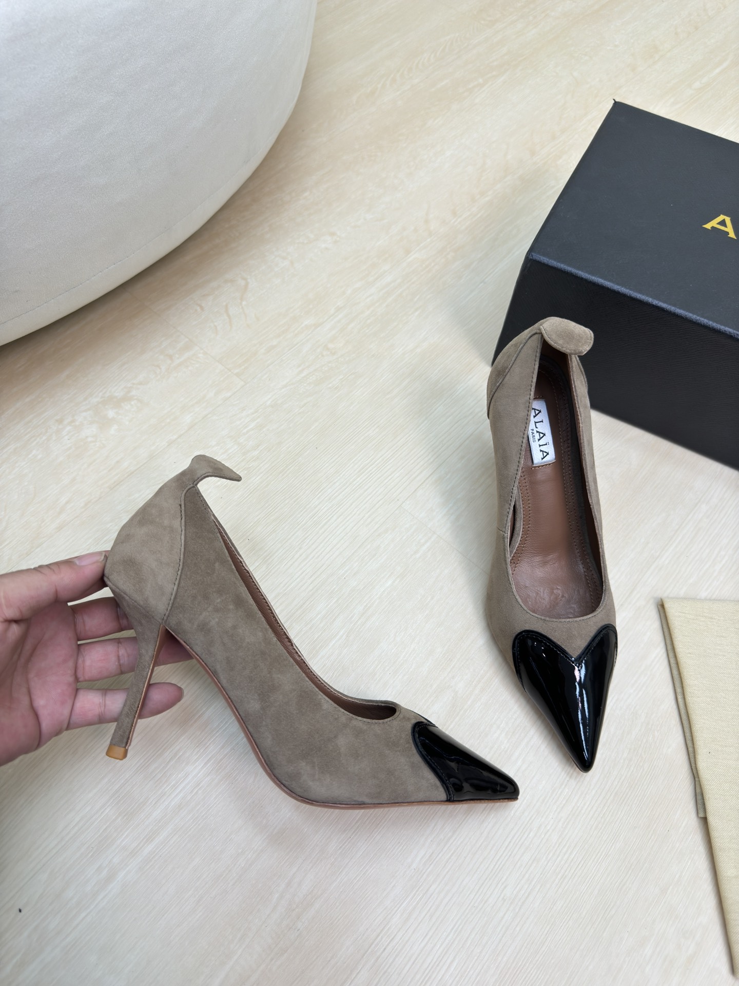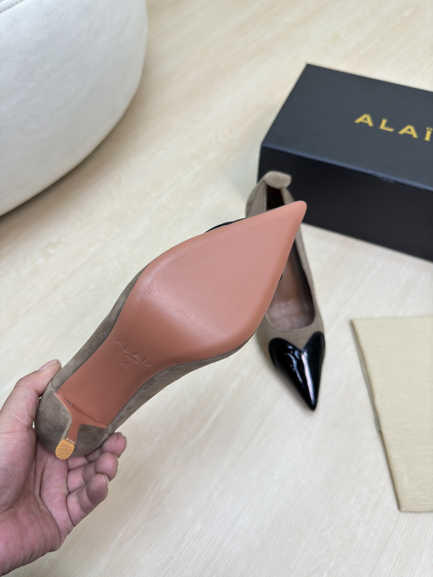 This shoes is AAAAA 1:1 quality (superb). Materials used are identical to the original ones. Alaia trademark marks are indistinguishable to the authentic. Photos take by actual shoes, what you receive will be 100% same with our photos.