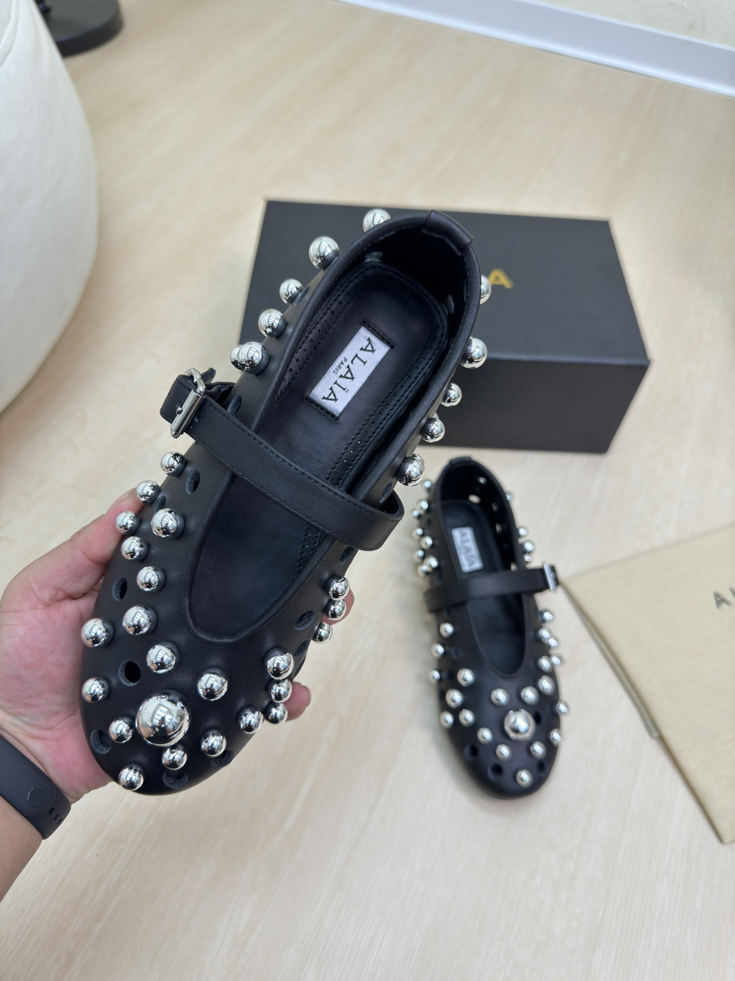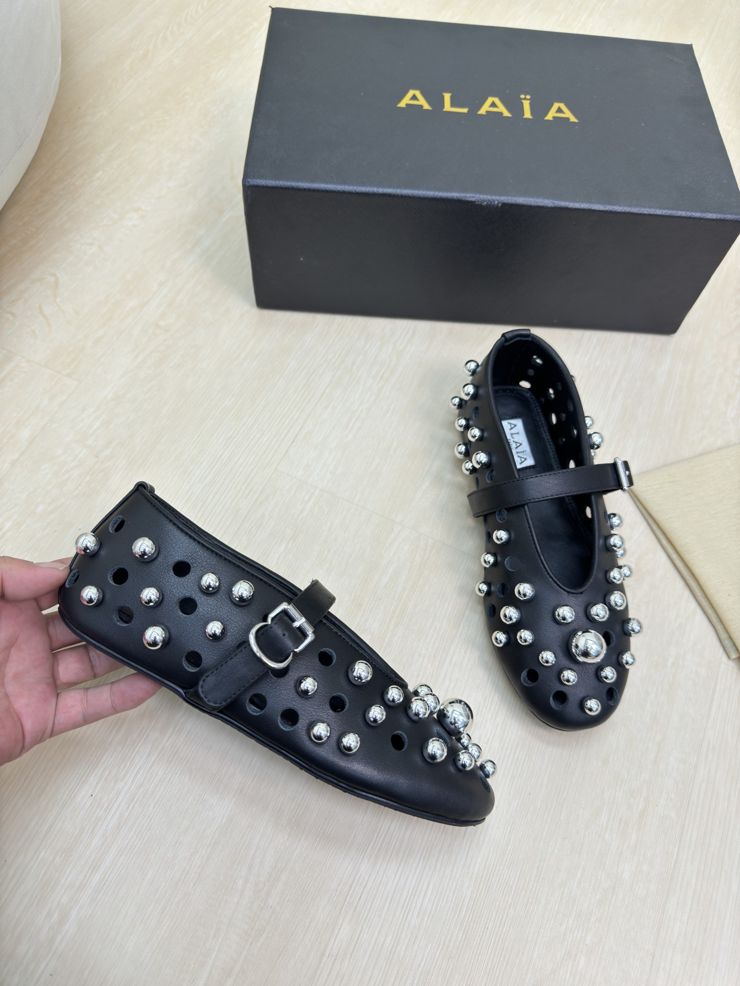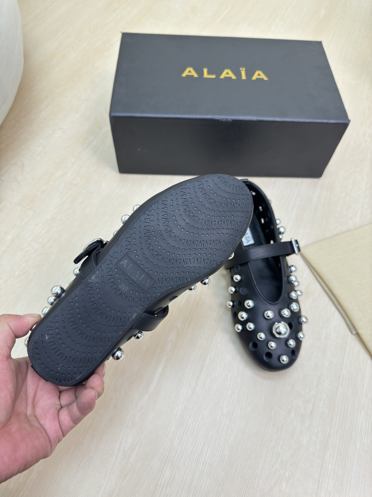 This shoes is AAAAA 1:1 quality (superb). Materials used are identical to the original ones. Alaia trademark marks are indistinguishable to the authentic. Photos take by actual shoes, what you receive will be 100% same with our photos.