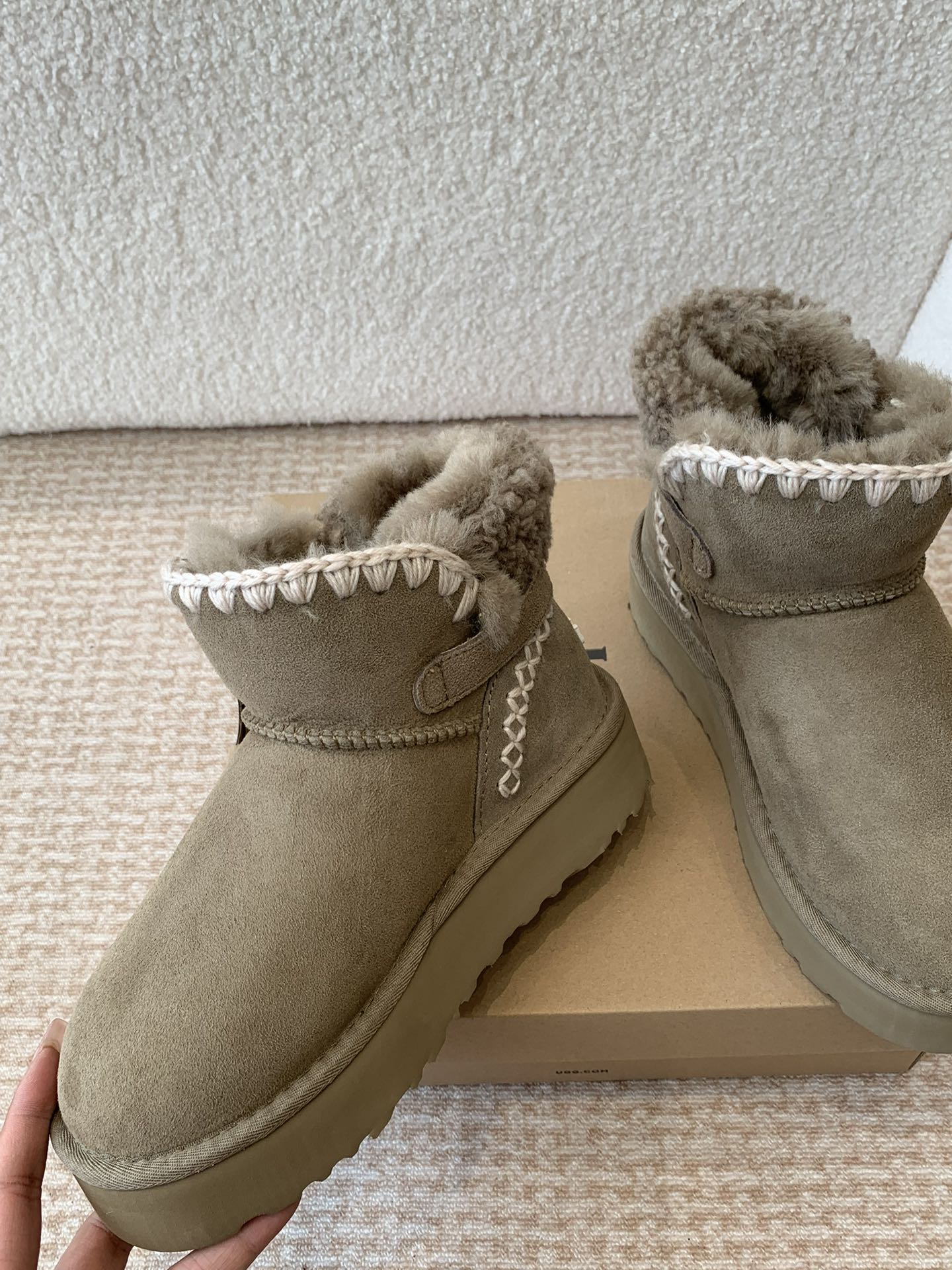 This shoes is AAAAA 1:1 quality (superb). Materials used are identical to the original ones. UGG trademark marks are indistinguishable to the authentic. Photos take by actual shoes, what you receive will be 100% same with our photos.