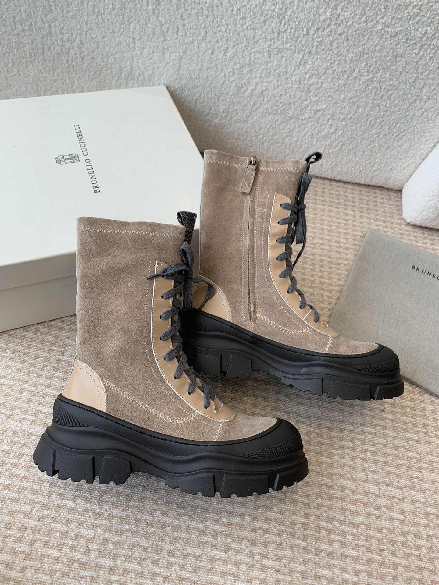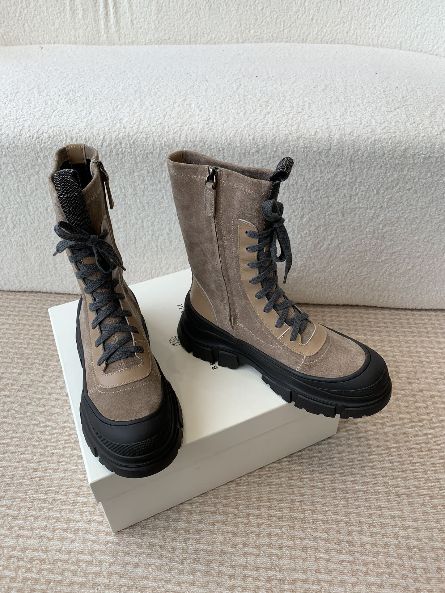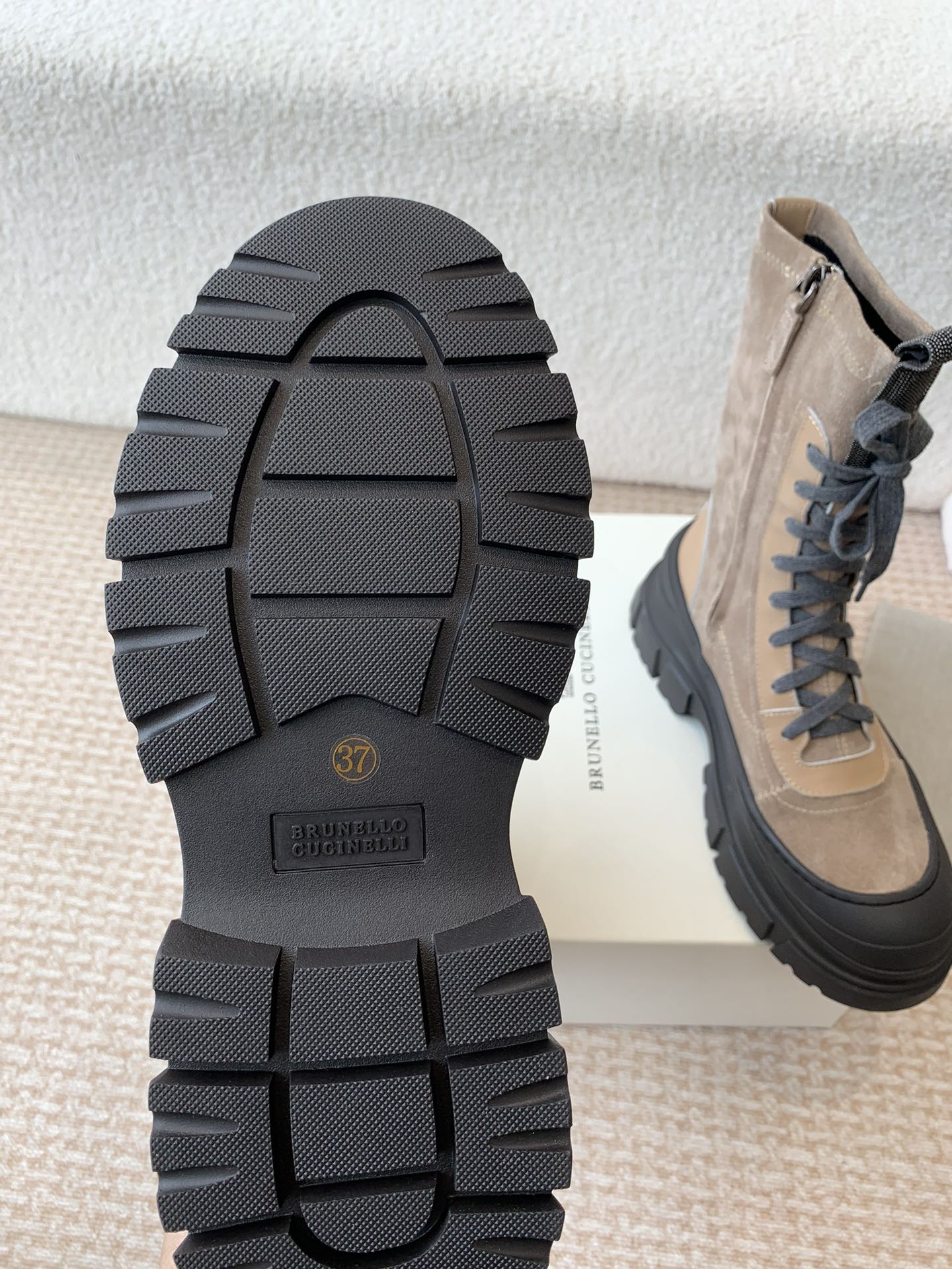 This shoes is AAAAA 1:1 quality (superb). Materials used are identical to the original ones. Brunello Cucinelli trademark marks are indistinguishable to the authentic. Photos take by actual shoes, what you receive will be 100% same with our photos.
