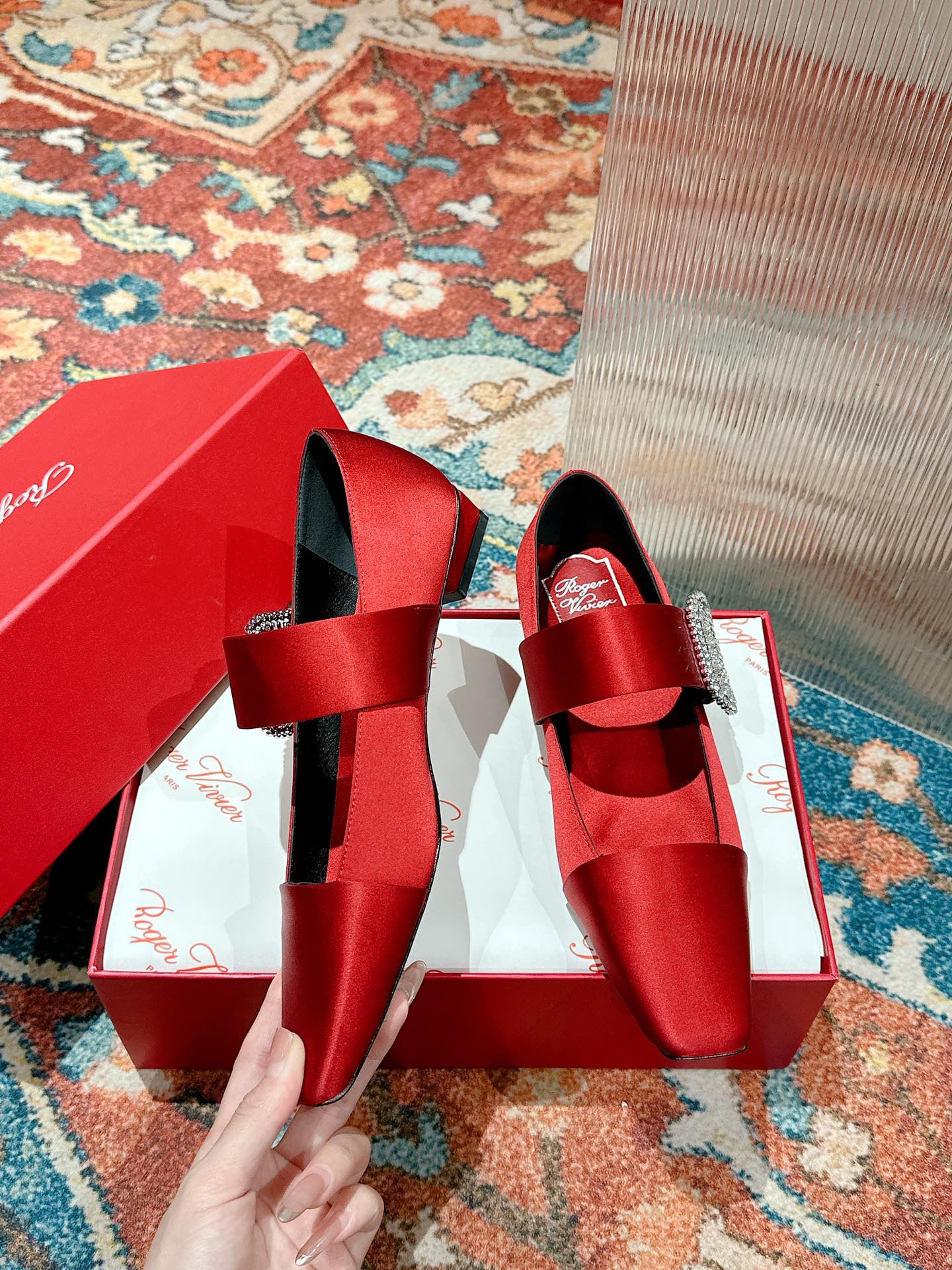 This shoes is AAAAA 1:1 quality (superb). Materials used are identical to the original ones. Roger Vivier trademark marks are indistinguishable to the authentic. Photos take by actual shoes, what you receive will be 100% same with our photos.