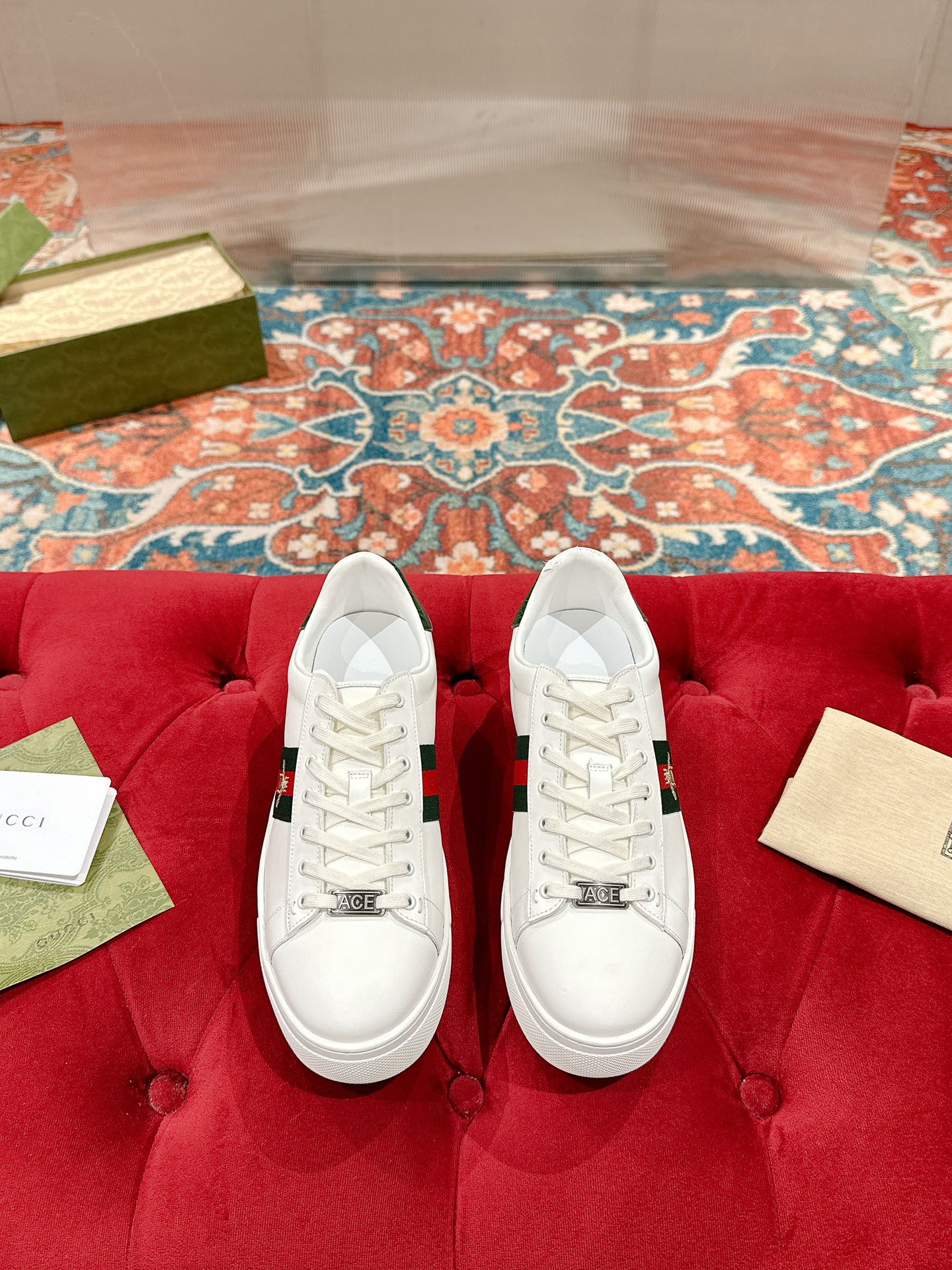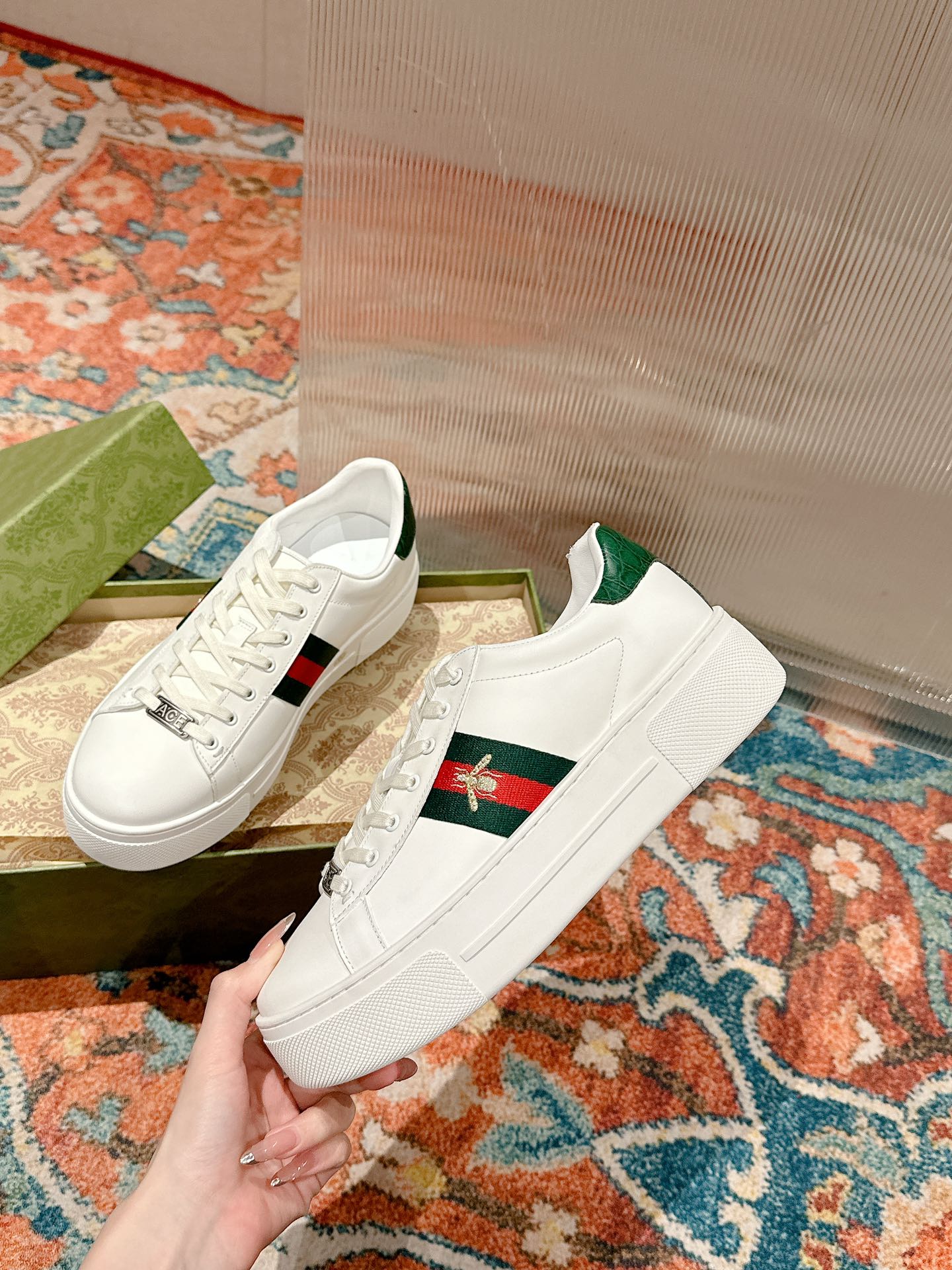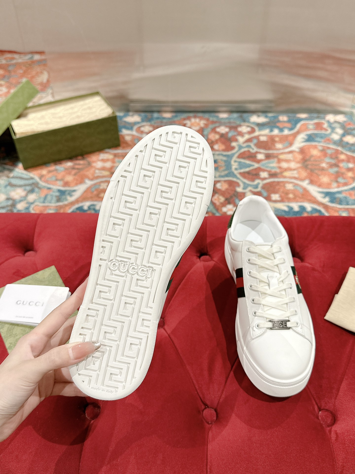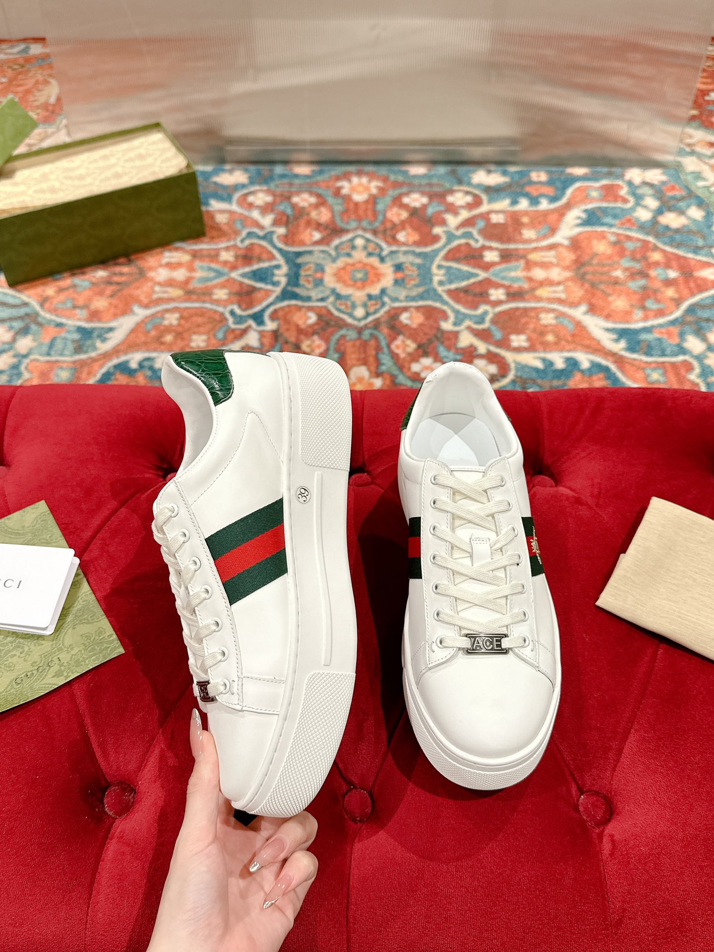 This shoes is AAAAA 1:1 quality (superb). Materials used are identical to the original ones. Gucci trademark marks are indistinguishable to the authentic. Photos take by actual shoes, what you receive will be 100% same with our photos.