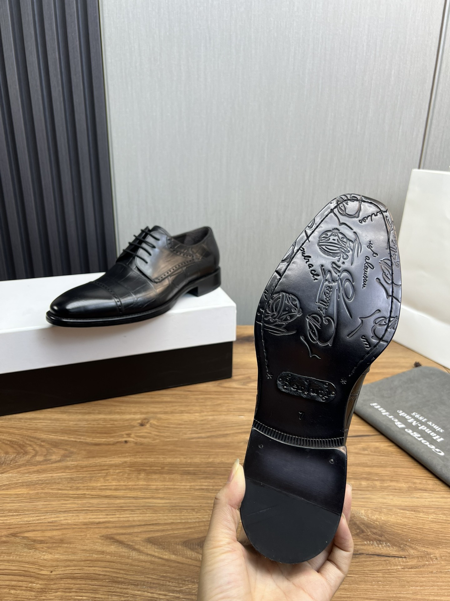 This shoes is AAAAA 1:1 quality (superb). Materials used are identical to the original ones. Berluti trademark marks are indistinguishable to the authentic. Photos take by actual shoes, what you receive will be 100% same with our photos.