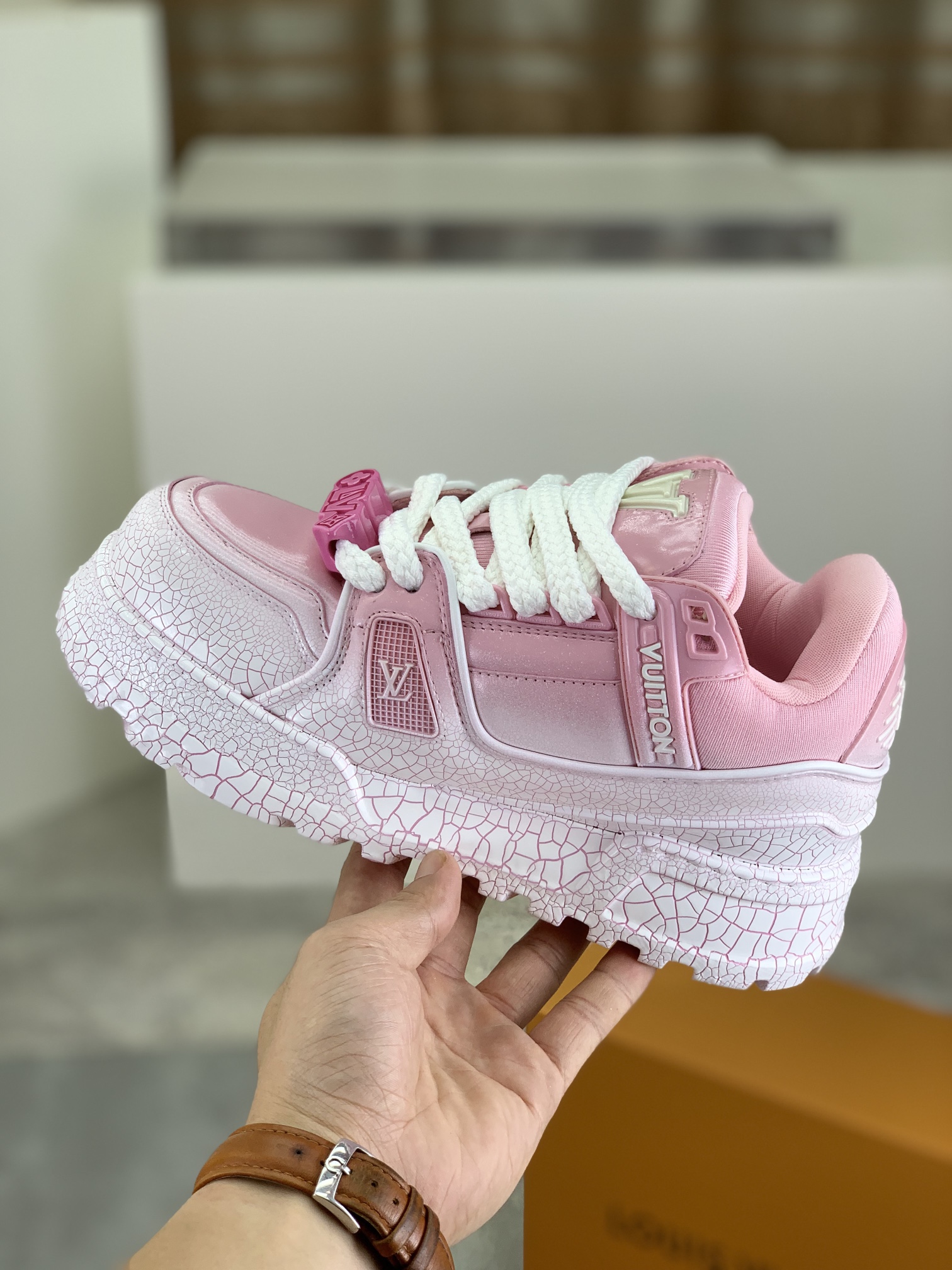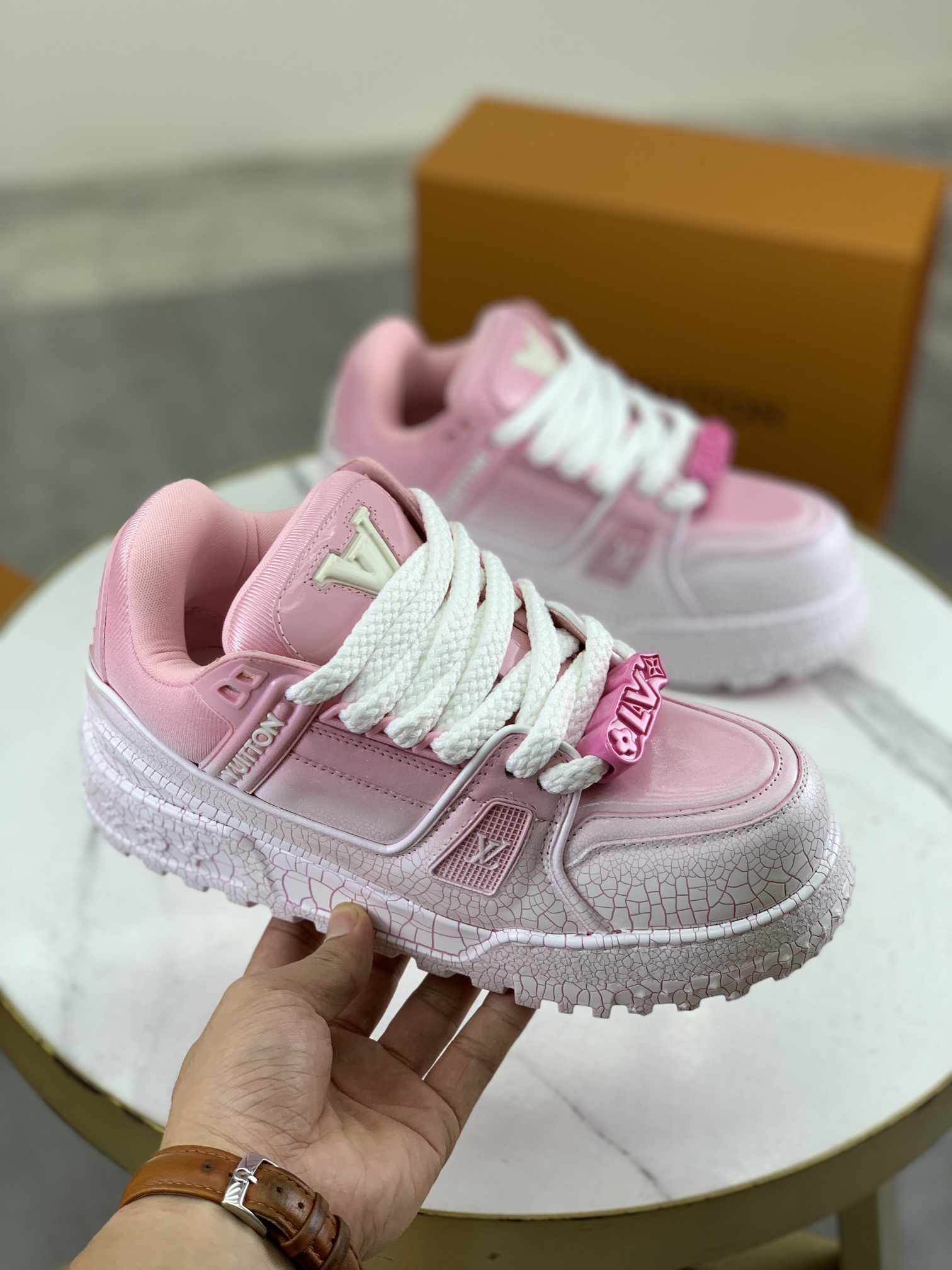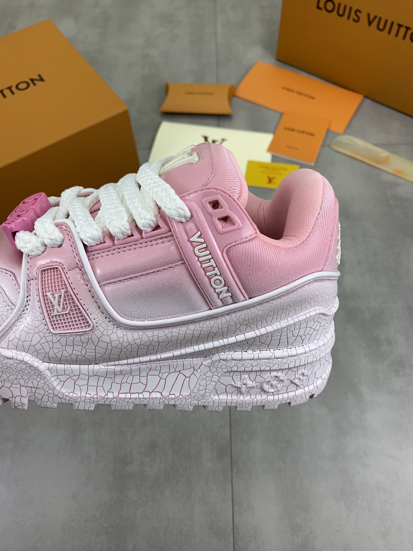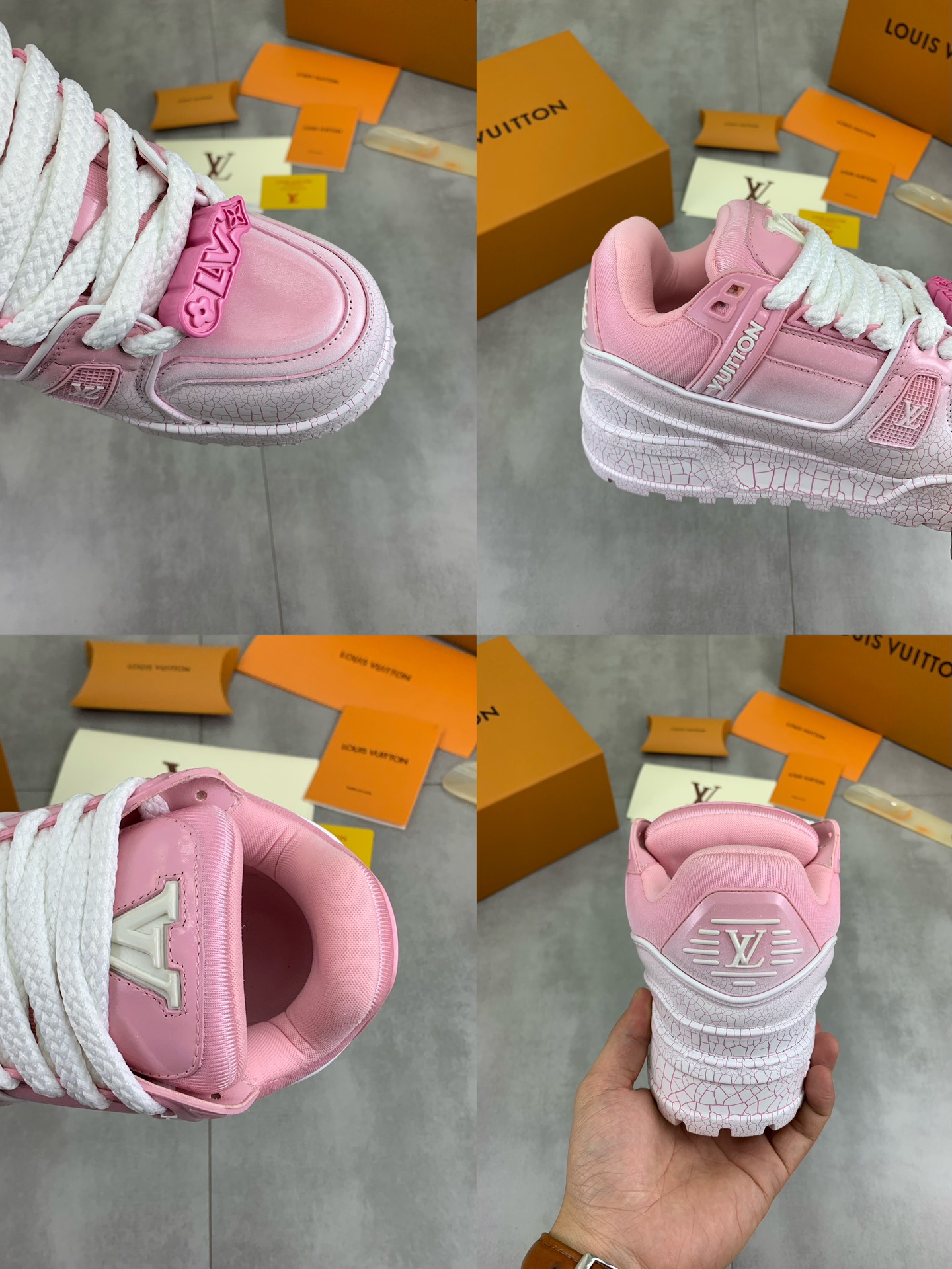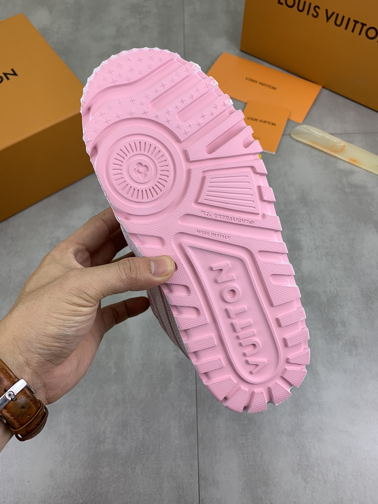 This shoes is AAAAA 1:1 quality (superb). Materials used are identical to the original ones. Louis Vuitton trademark marks are indistinguishable to the authentic. Photos take by actual shoes, what you receive will be 100% same with our photos.