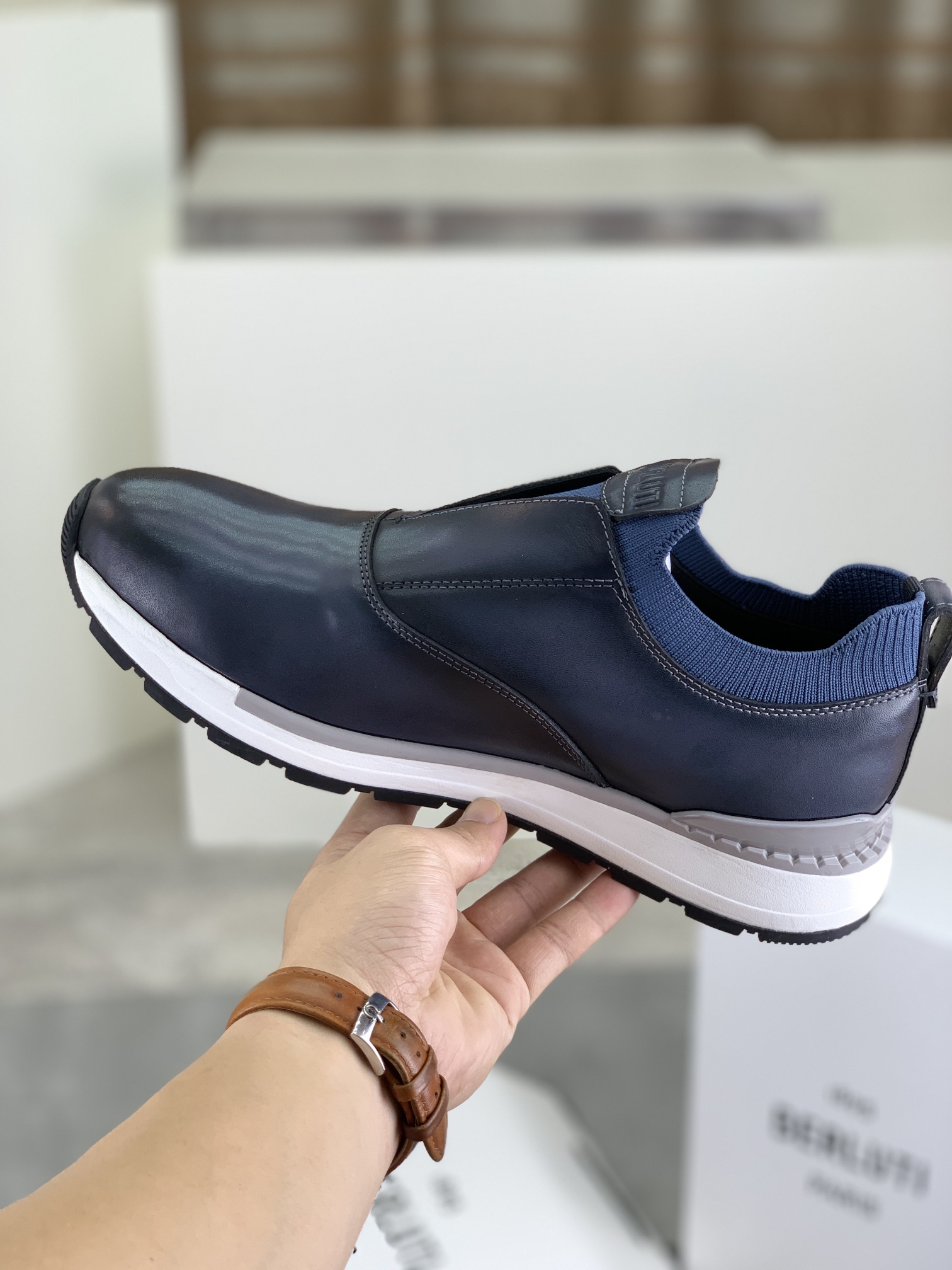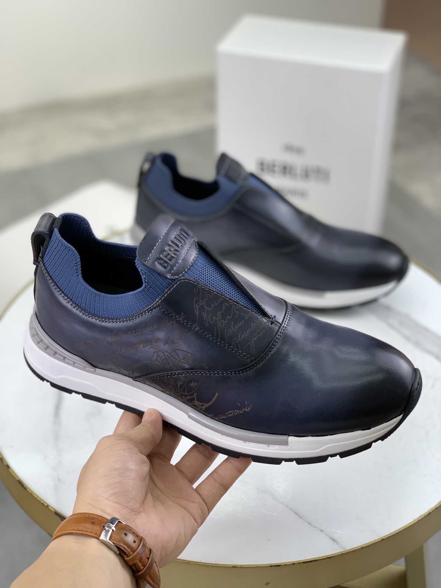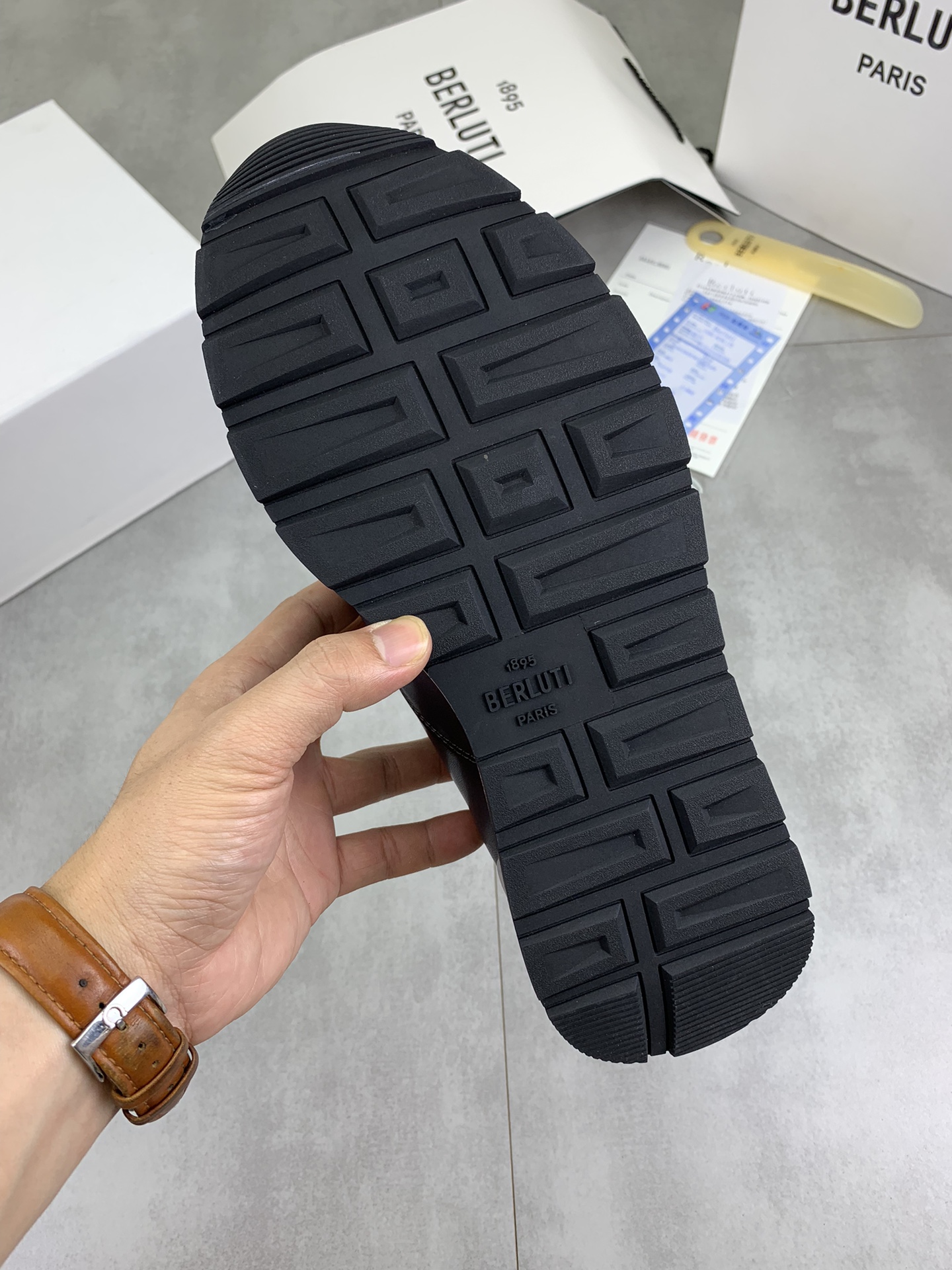This shoes is AAAAA 1:1 quality (superb). Materials used are identical to the original ones. Berluti trademark marks are indistinguishable to the authentic. Photos take by actual shoes, what you receive will be 100% same with our photos.
