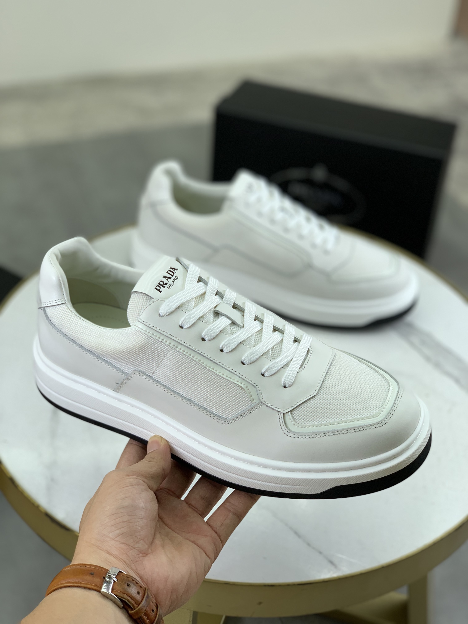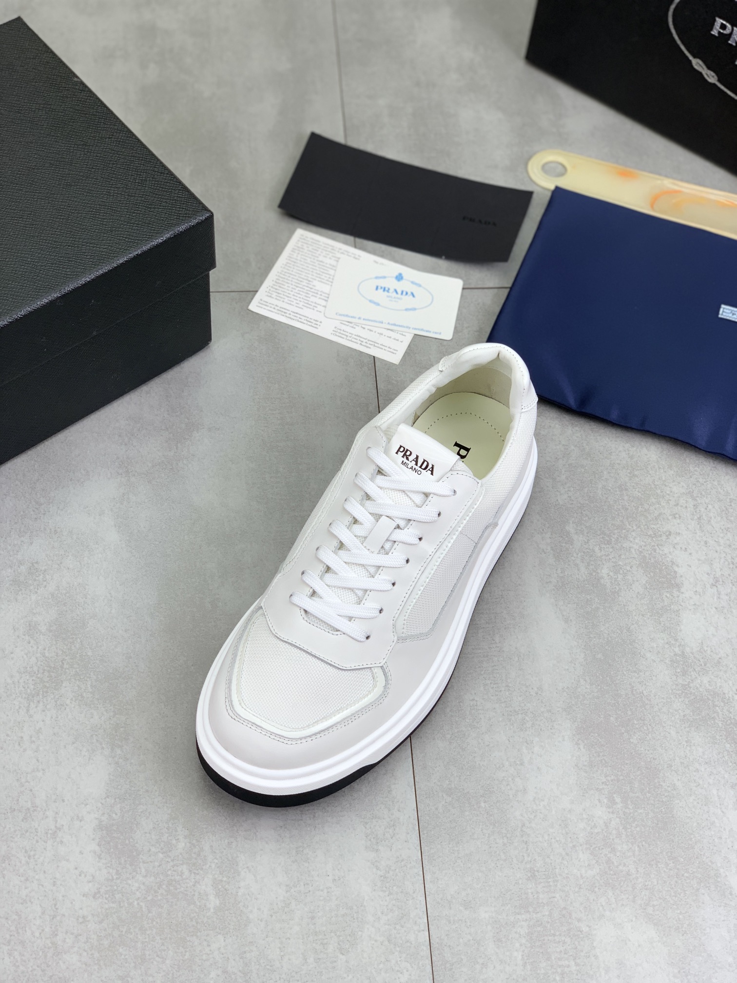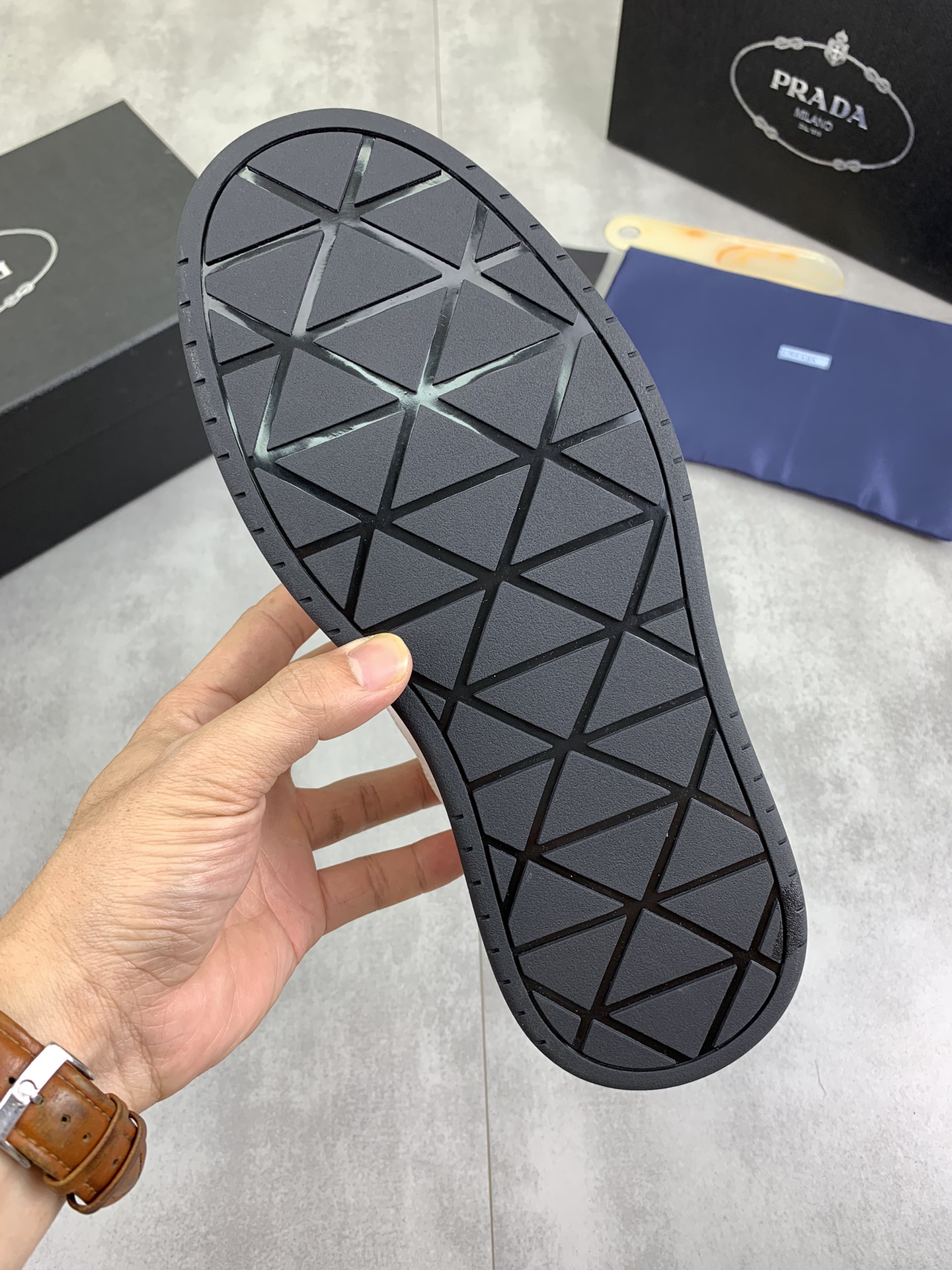 This shoes is AAAAA 1:1 quality (superb). Materials used are identical to the original ones. Prada trademark marks are indistinguishable to the authentic. Photos take by actual shoes, what you receive will be 100% same with our photos.