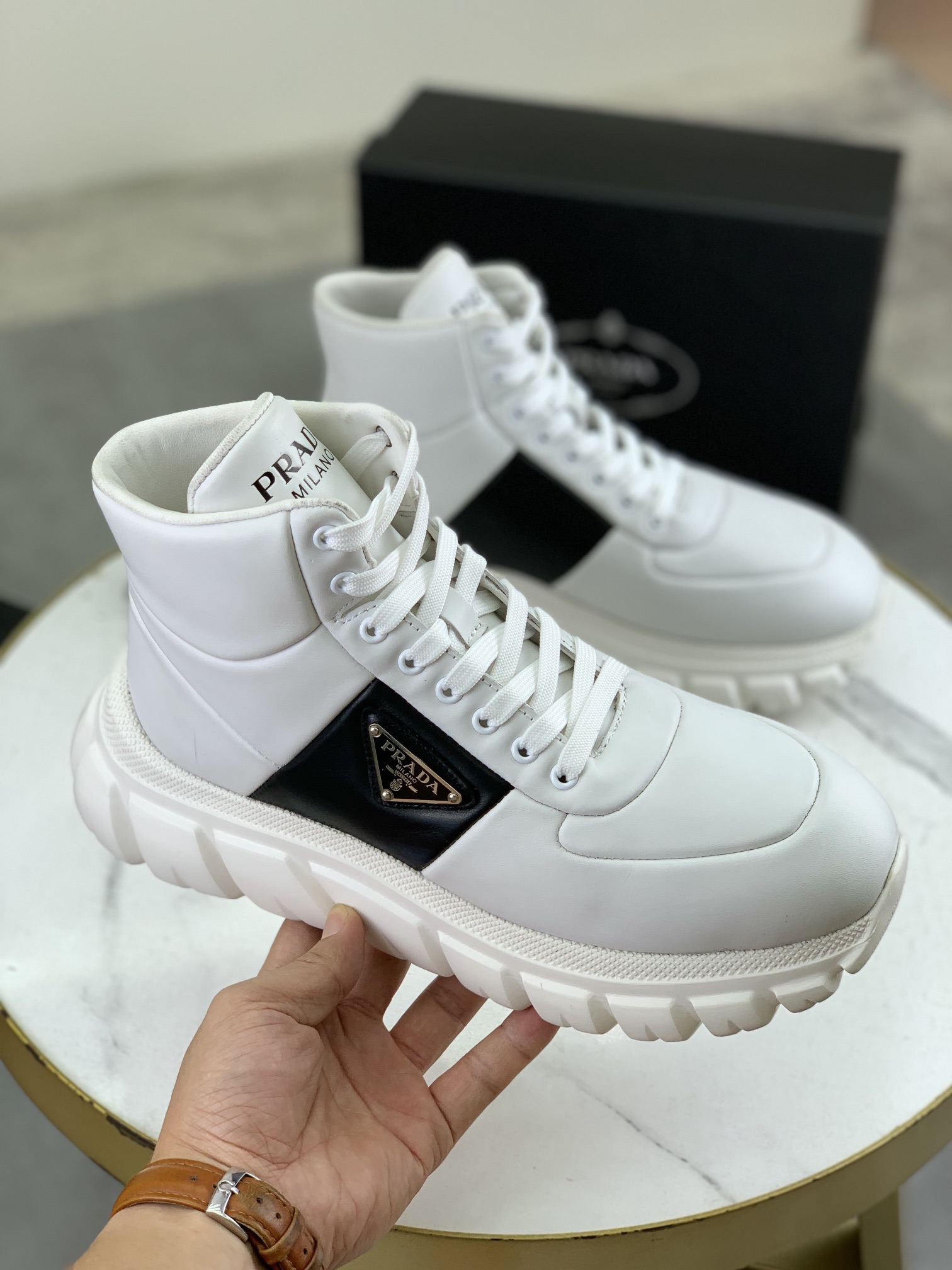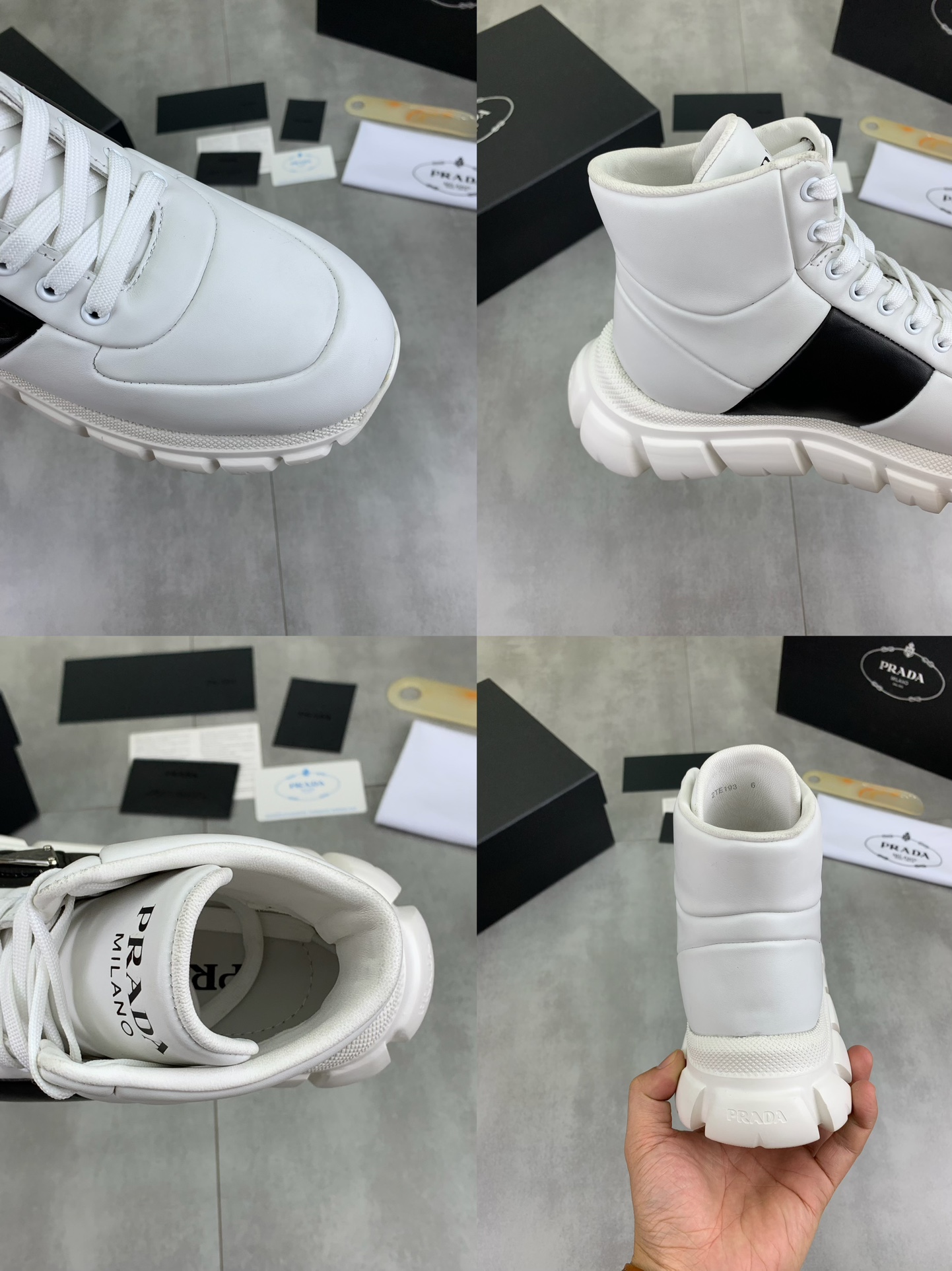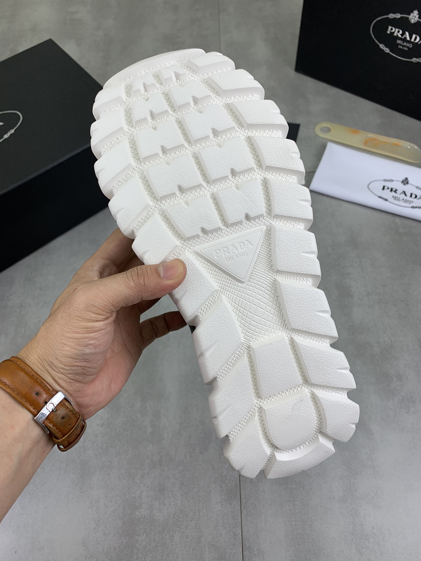 This shoes is AAAAA 1:1 quality (superb). Materials used are identical to the original ones. Prada trademark marks are indistinguishable to the authentic. Photos take by actual shoes, what you receive will be 100% same with our photos.