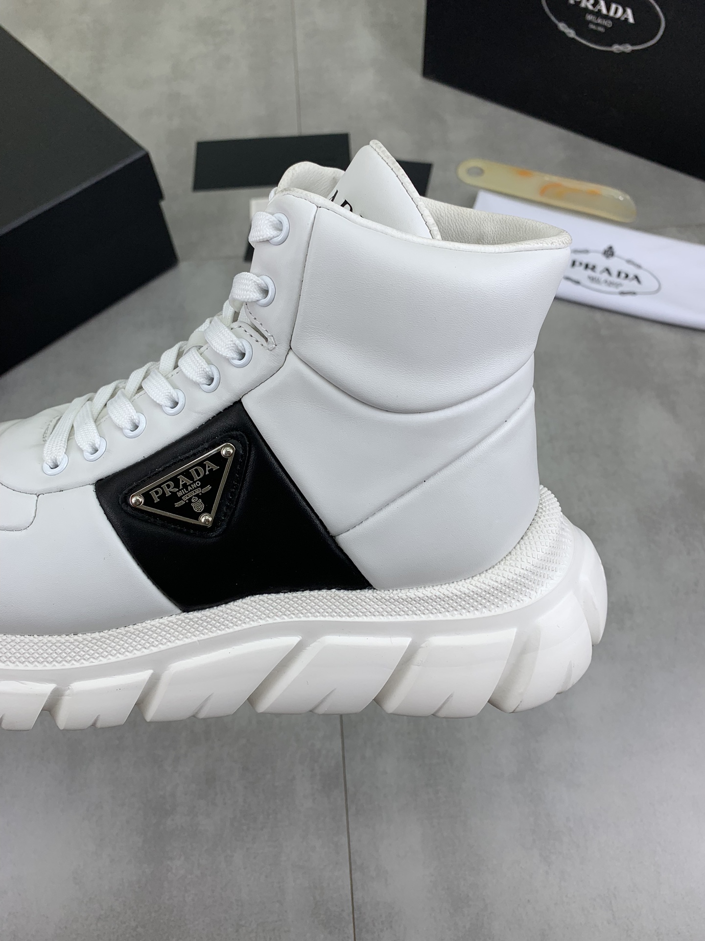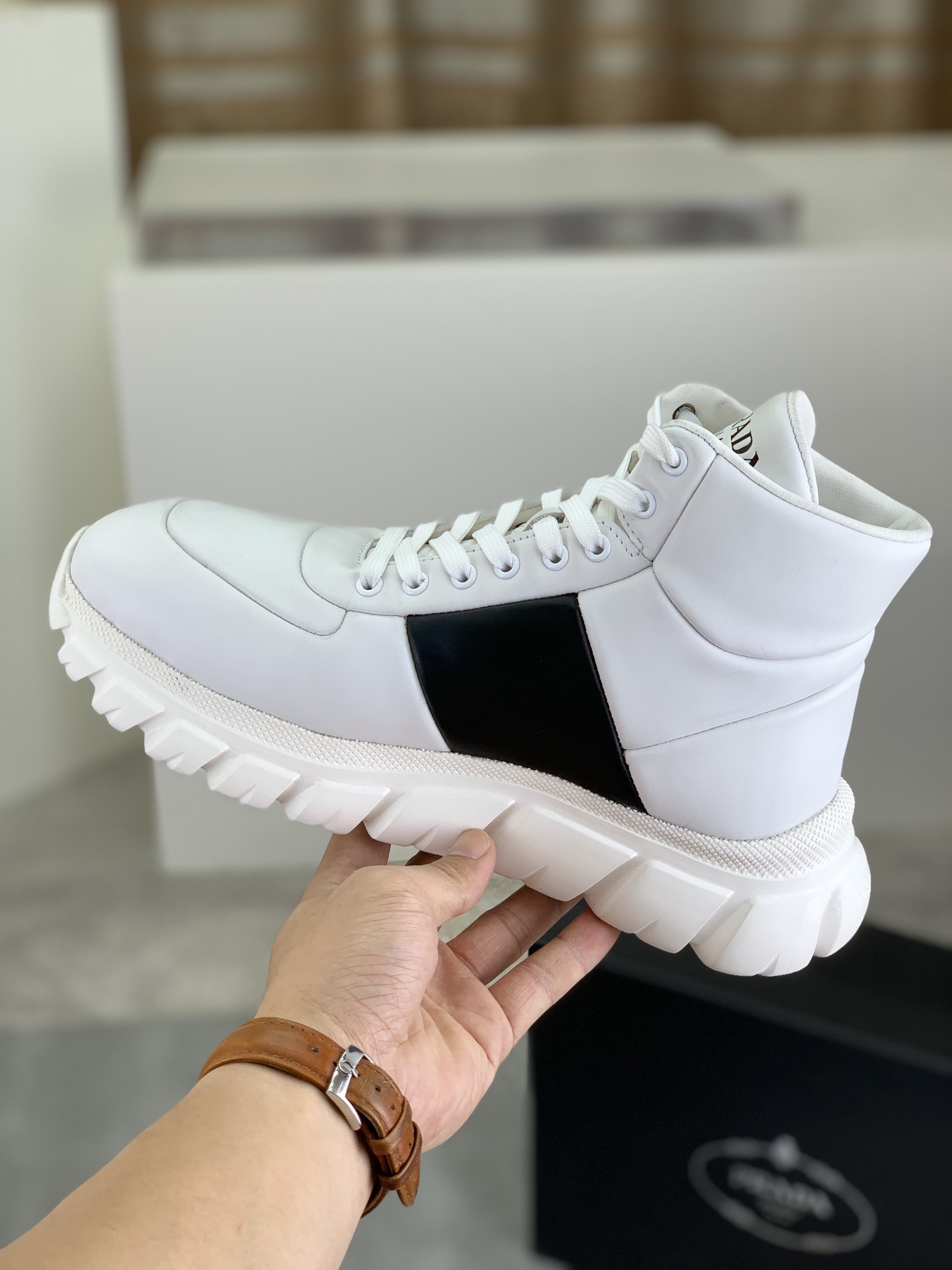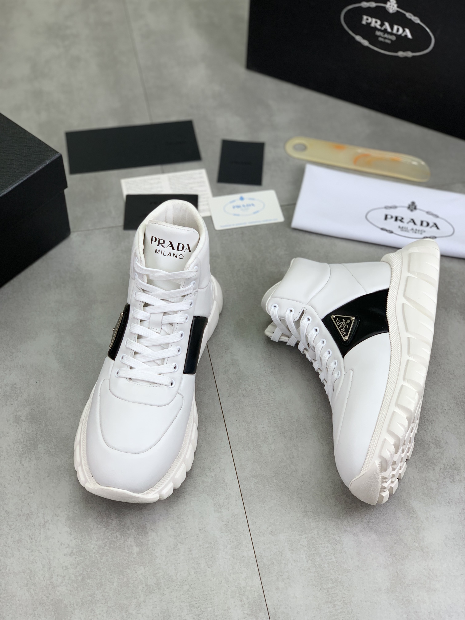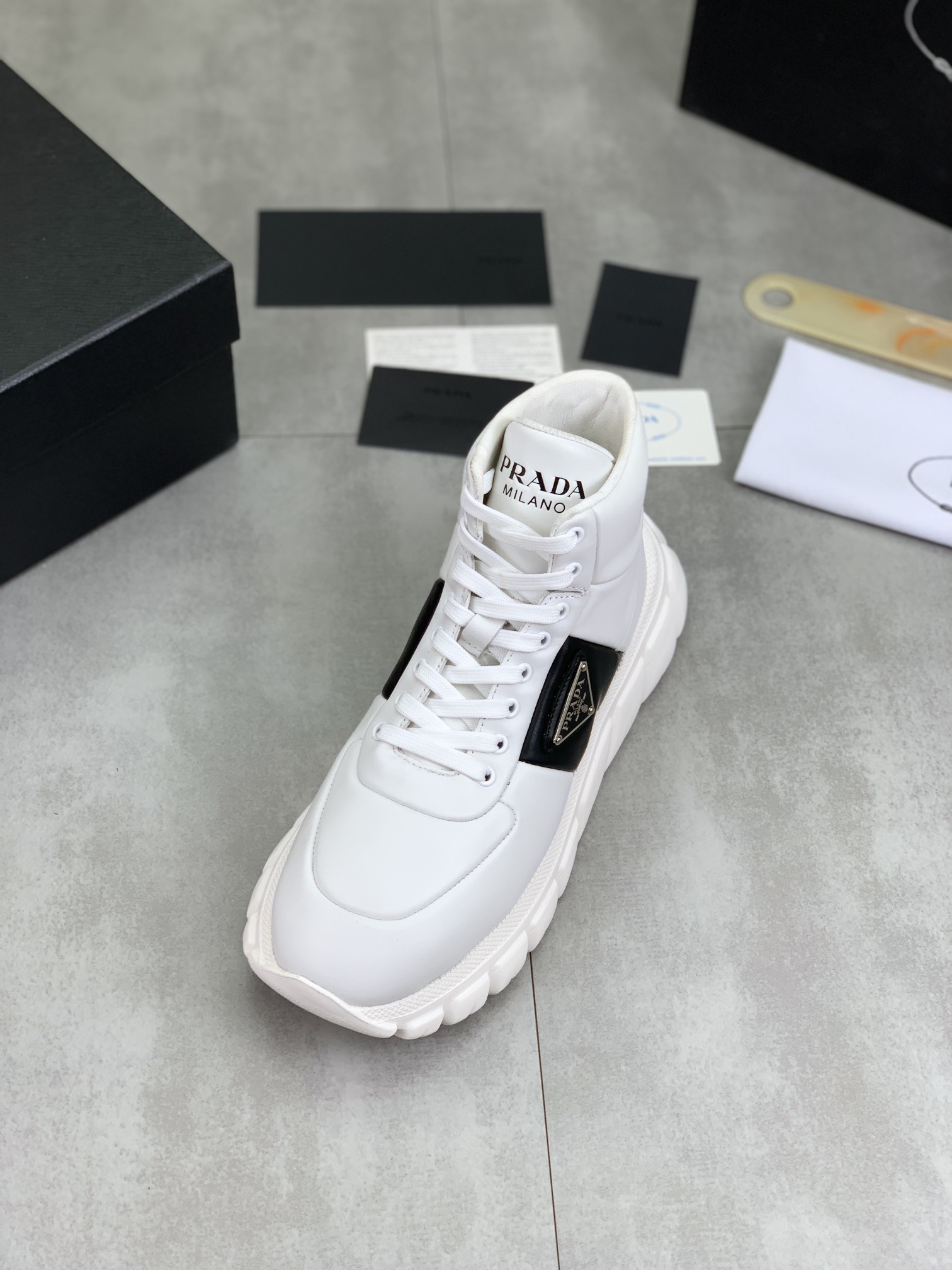 This shoes is AAAAA 1:1 quality (superb). Materials used are identical to the original ones. Prada trademark marks are indistinguishable to the authentic. Photos take by actual shoes, what you receive will be 100% same with our photos.