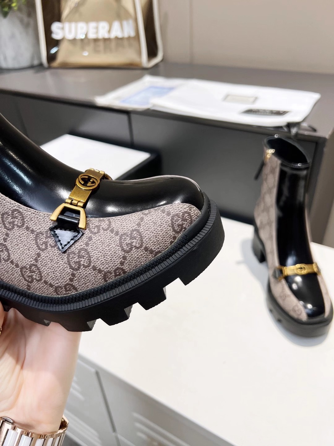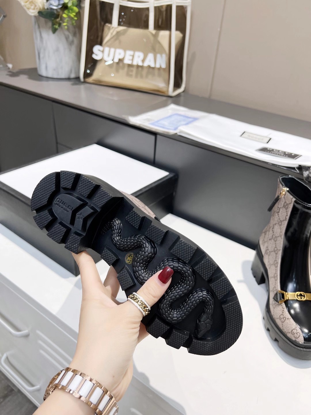 This shoes is AAAAA 1:1 quality (superb). Materials used are identical to the original ones. Gucci trademark marks are indistinguishable to the authentic. Photos take by actual shoes, what you receive will be 100% same with our photos.