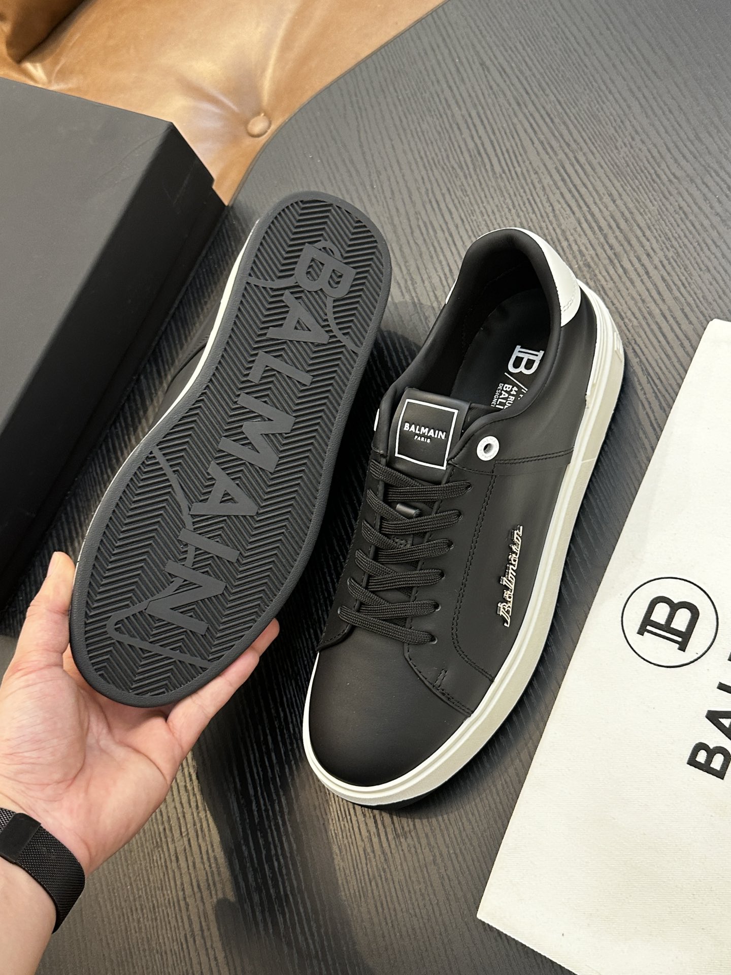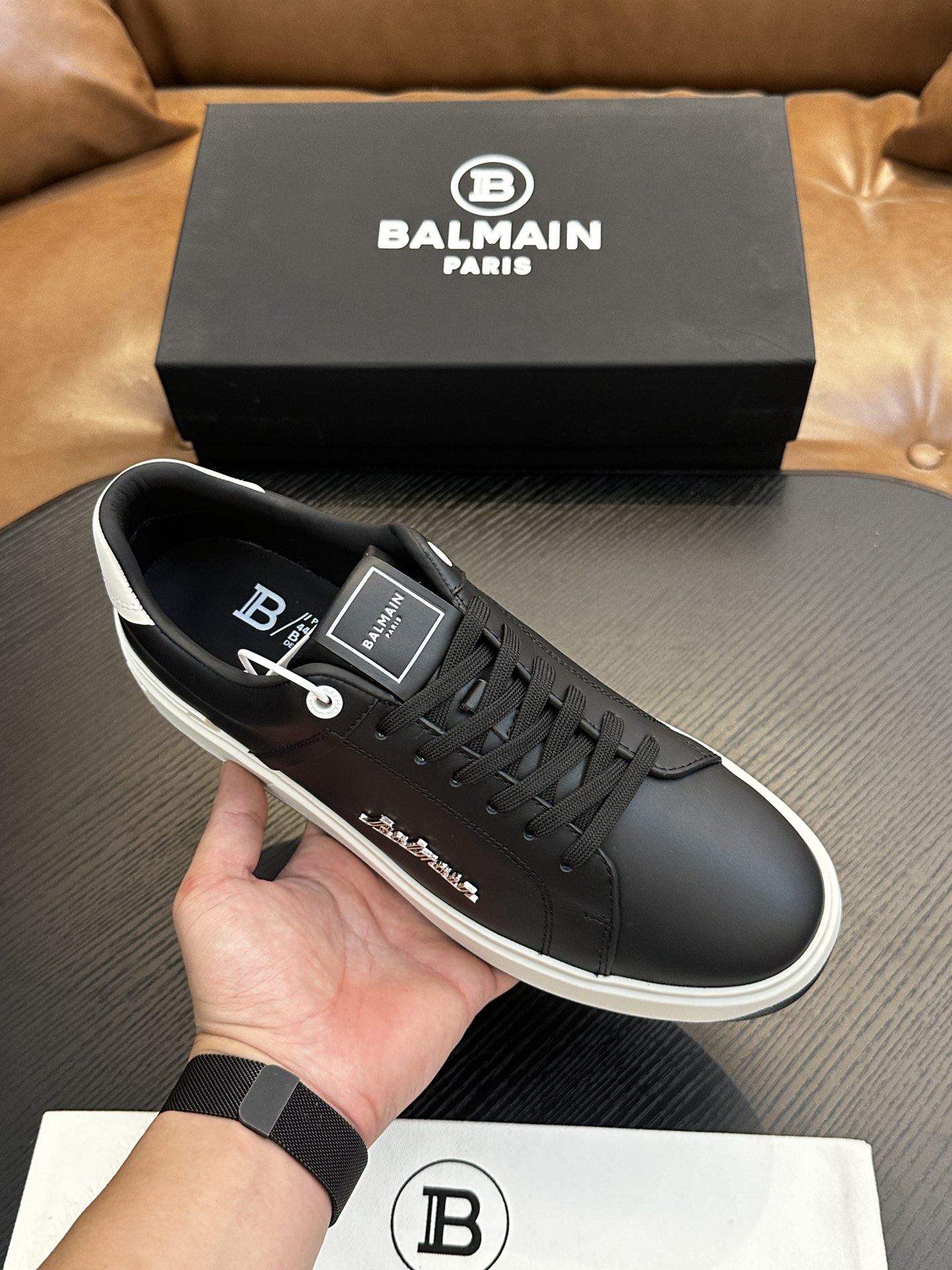 This shoes is AAAAA 1:1 quality (superb). Materials used are identical to the original ones. Balmain trademark marks are indistinguishable to the authentic. Photos take by actual shoes, what you receive will be 100% same with our photos.