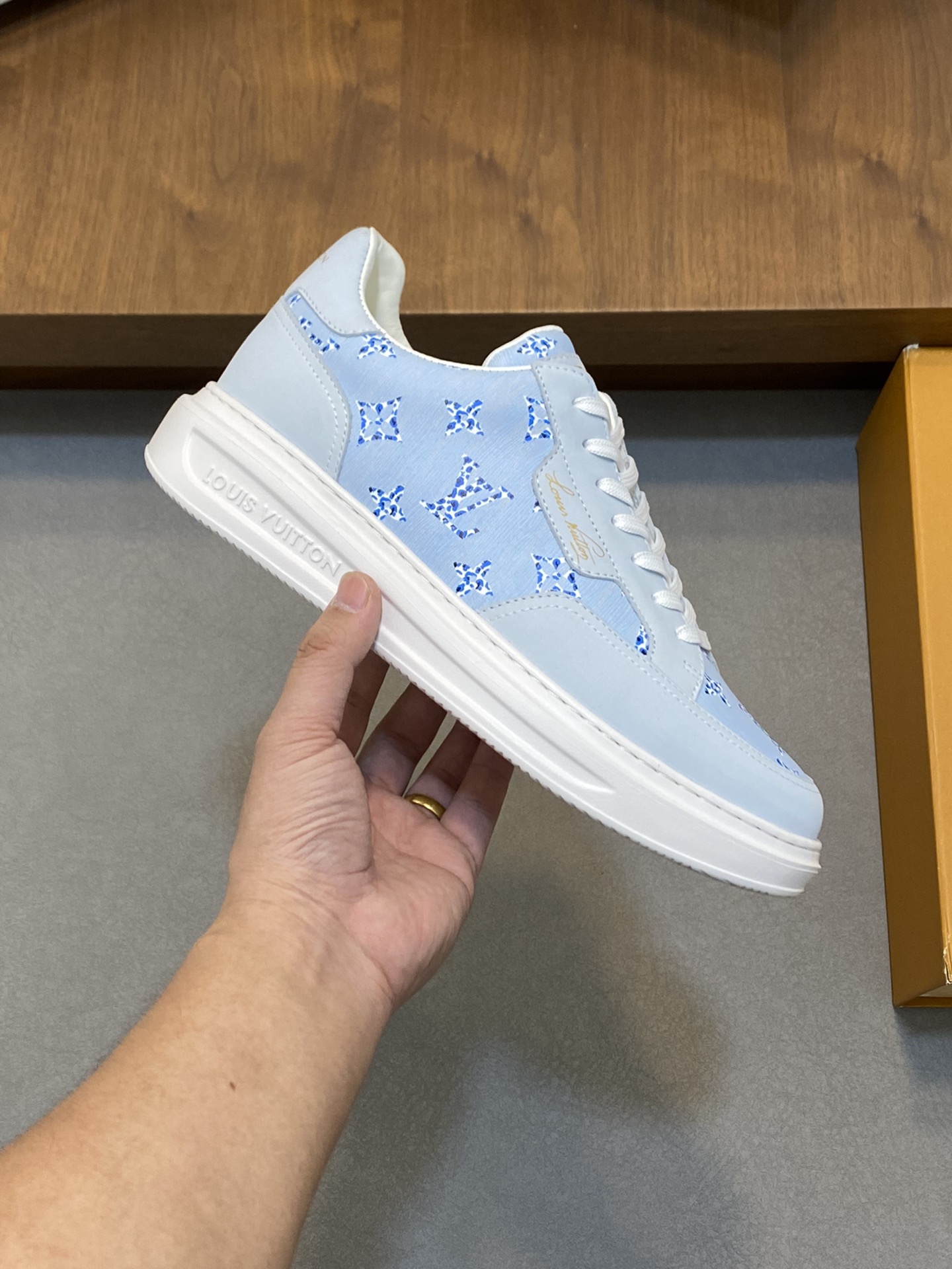This shoes is AAAAA 1:1 quality (superb). Materials used are identical to the original ones. Louis Vuitton trademark marks are indistinguishable to the authentic. Photos take by actual shoes, what you receive will be 100% same with our photos.