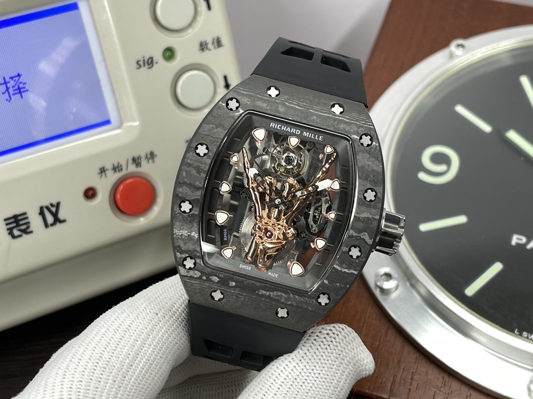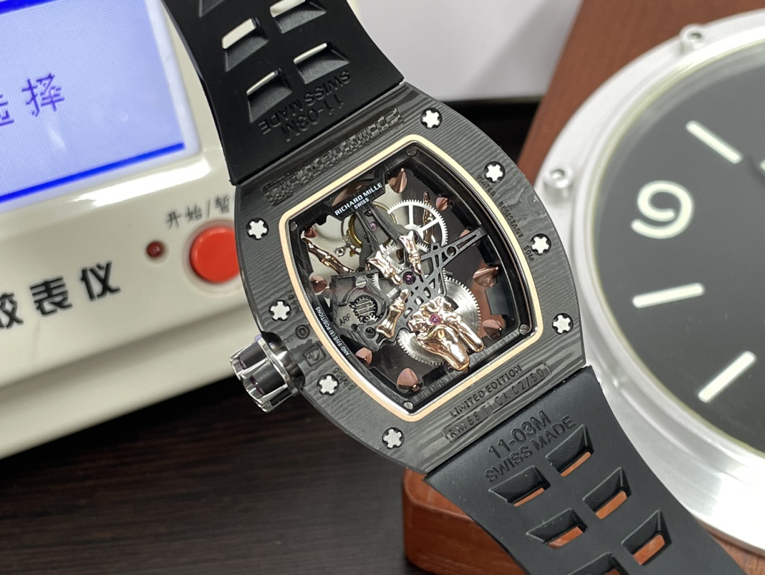 This watches is AAAAA 1:1 quality (superb). Materials used are identical to the original ones. Richard Mille trademark marks are indistinguishable to the authentic. Photos take by actual watches, what you receive will be 100% same with our photos.