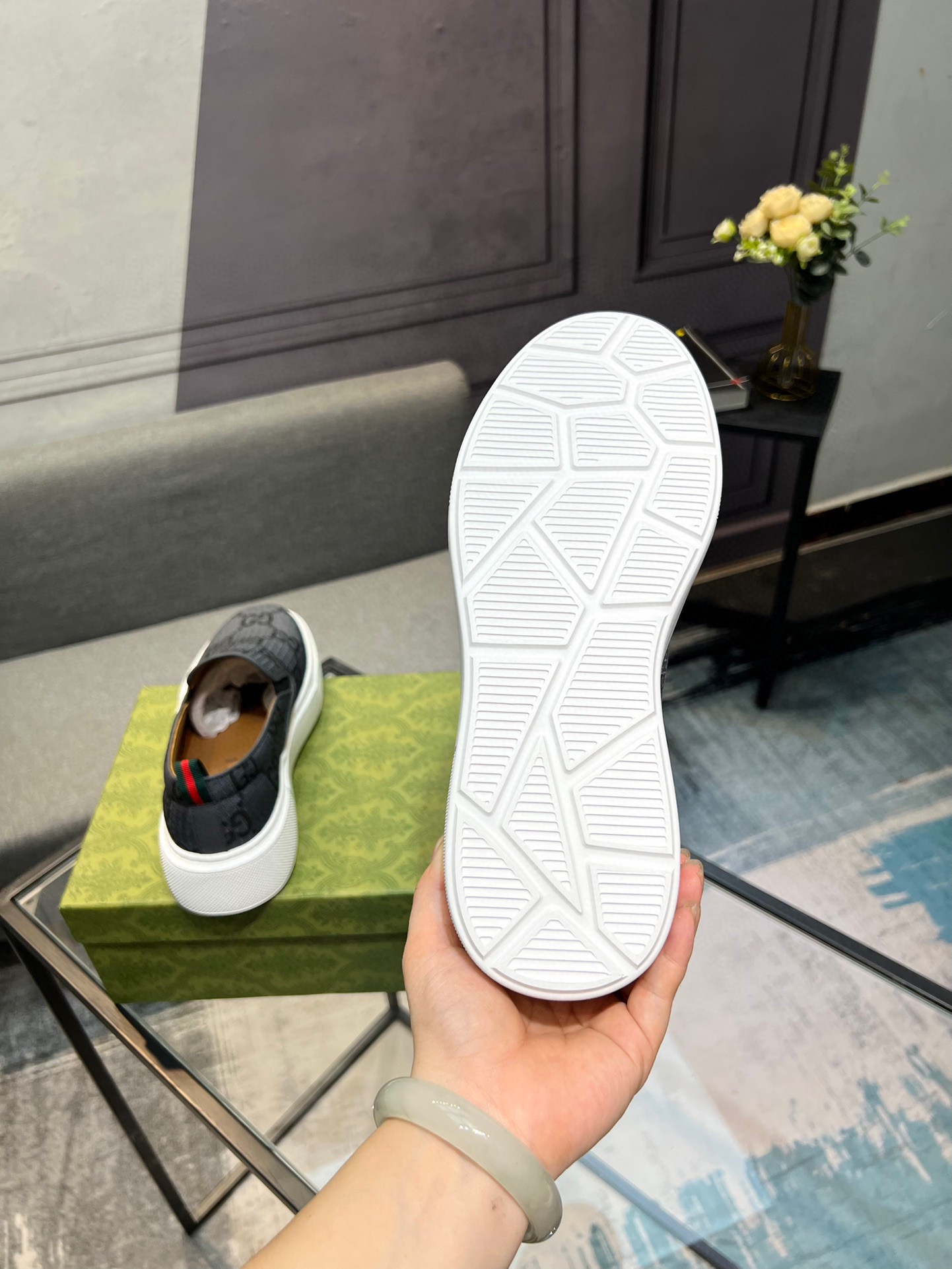 This shoes is AAAAA 1:1 quality (superb). Materials used are identical to the original ones. Gucci trademark marks are indistinguishable to the authentic. Photos take by actual shoes, what you receive will be 100% same with our photos.