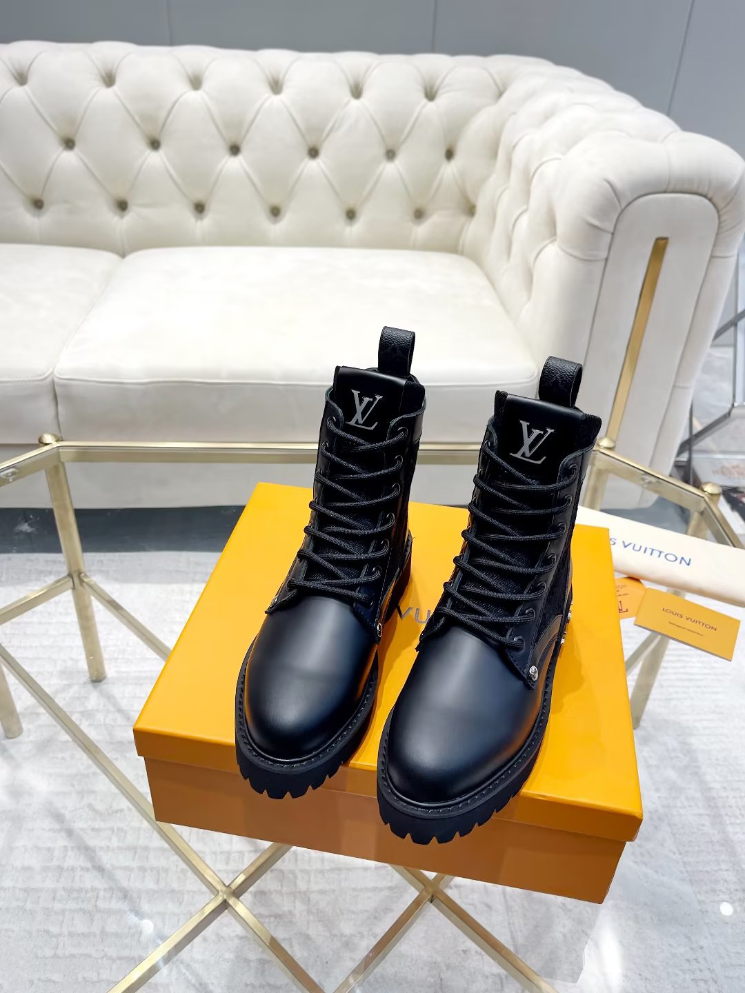 This shoes is AAAAA 1:1 quality (superb). Materials used are identical to the original ones. Louis Vuitton trademark marks are indistinguishable to the authentic. Photos take by actual shoes, what you receive will be 100% same with our photos.