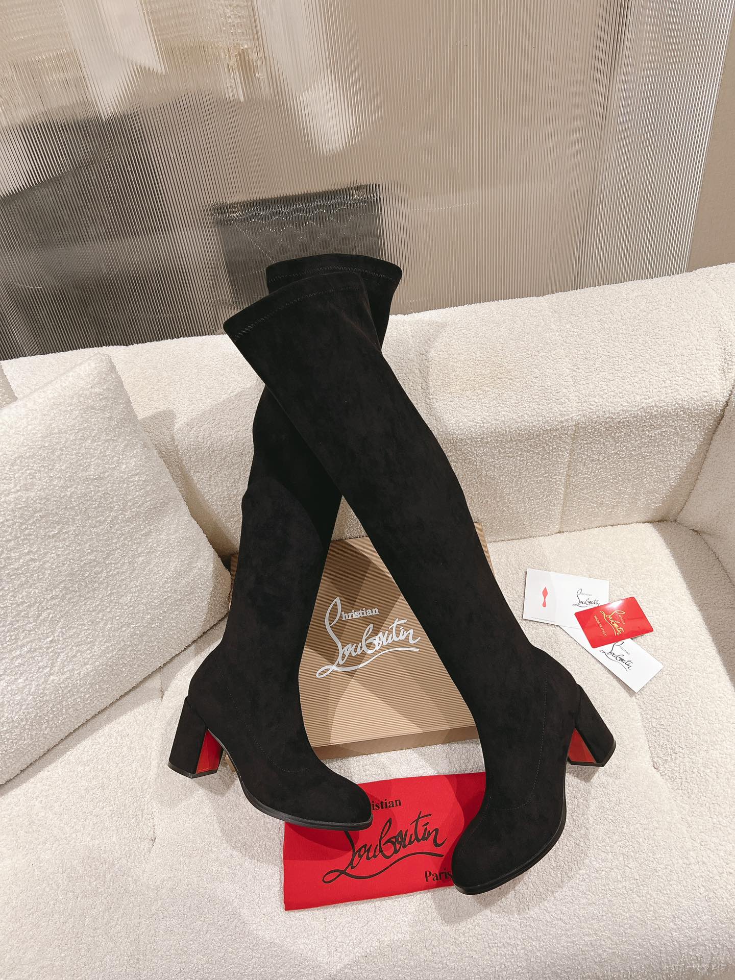 This shoes is AAAAA 1:1 quality (superb). Materials used are identical to the original ones. Christian Louboutin trademark marks are indistinguishable to the authentic. Photos take by actual shoes, what you receive will be 100% same with our photos.